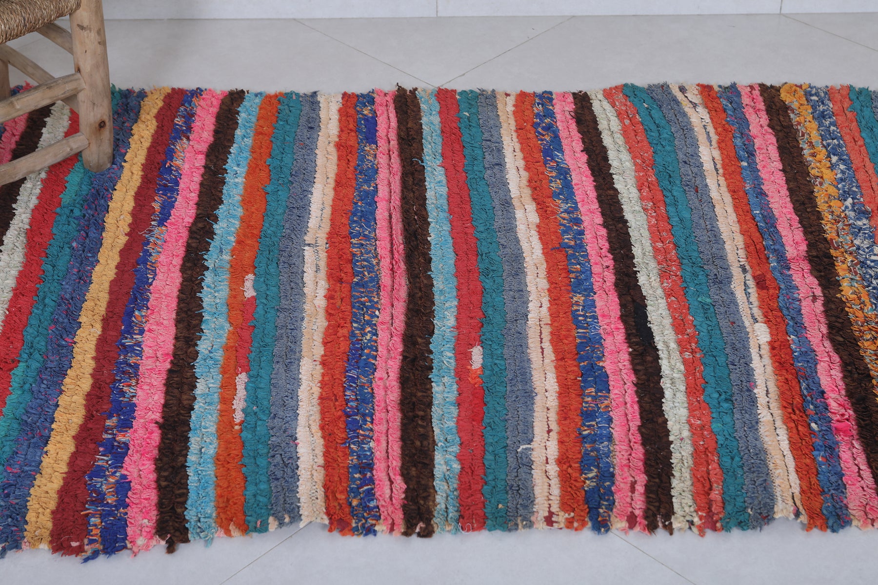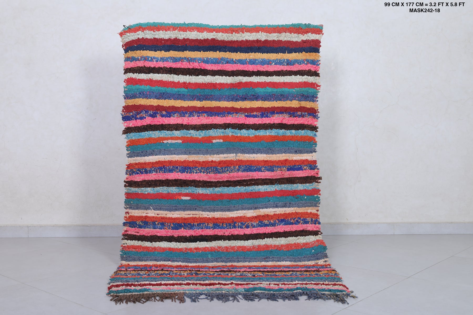 Colorful Striped Moroccan Rug - 3.2 X 5.8 Feet - Boucherouite Rugs