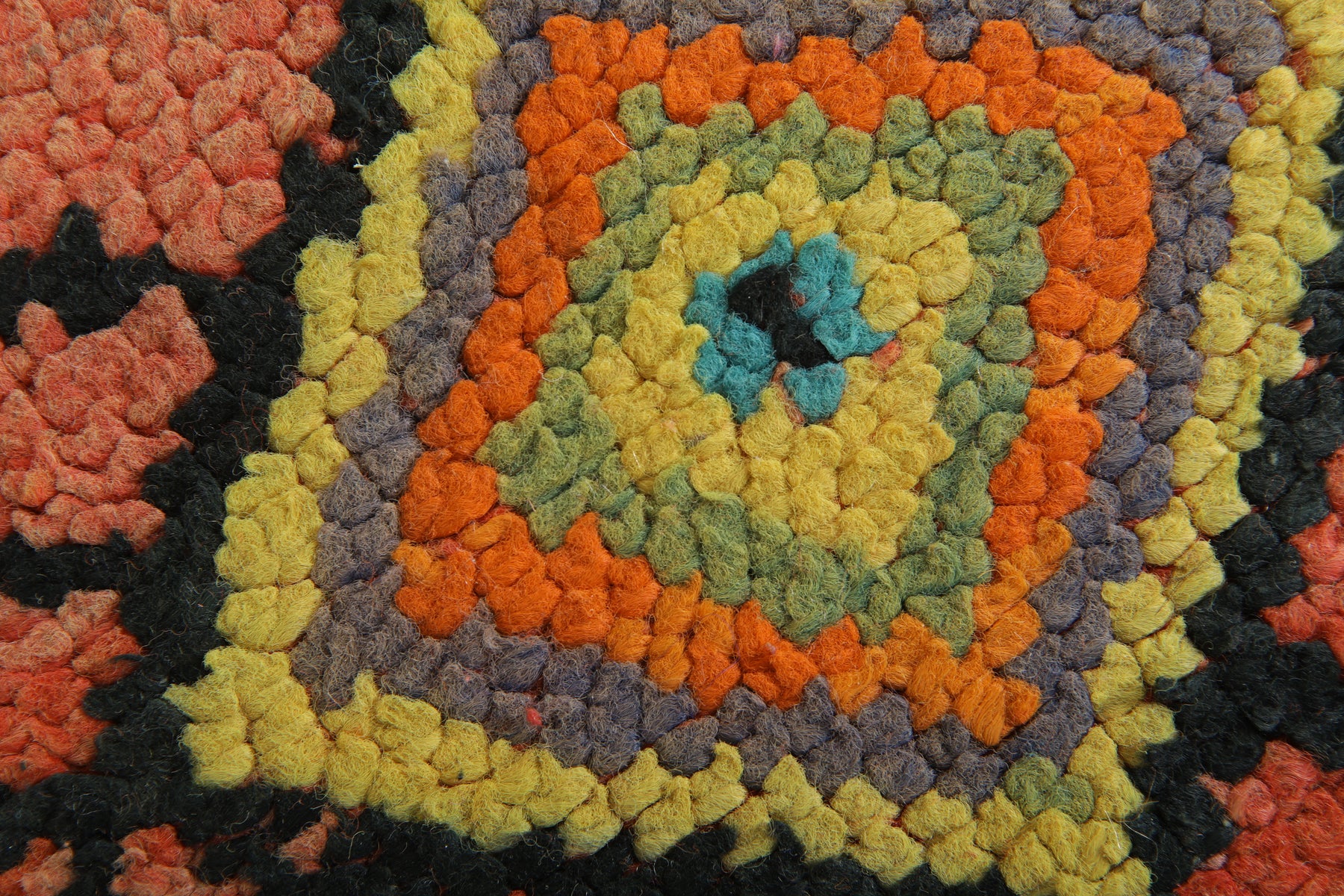 Crafted from natural wool, this rug is both durable and soft underfoot, making it ideal for living rooms, bedrooms, or creative spaces. Its vivid palette and unique design bring warmth and personality into any interior, from modern bohemian to eclectic styles.