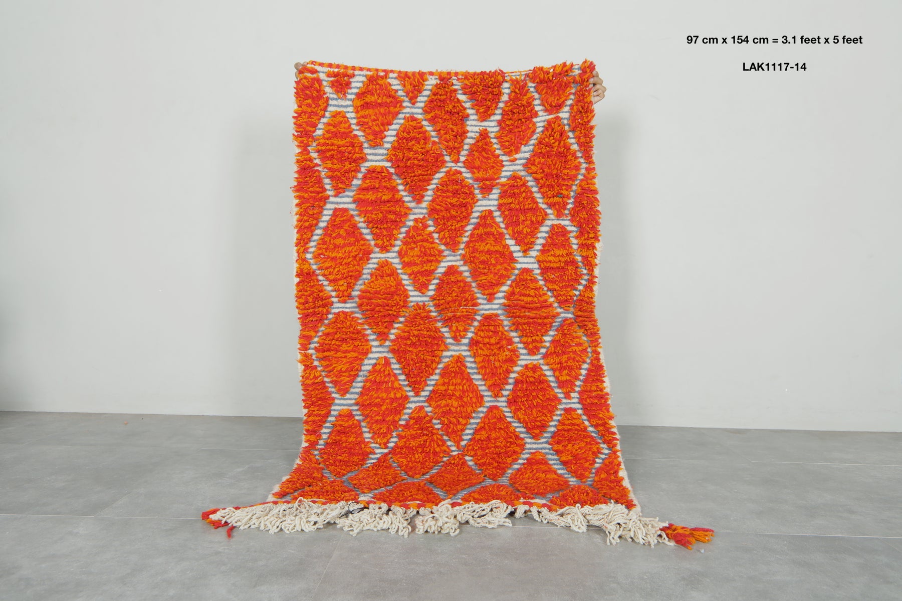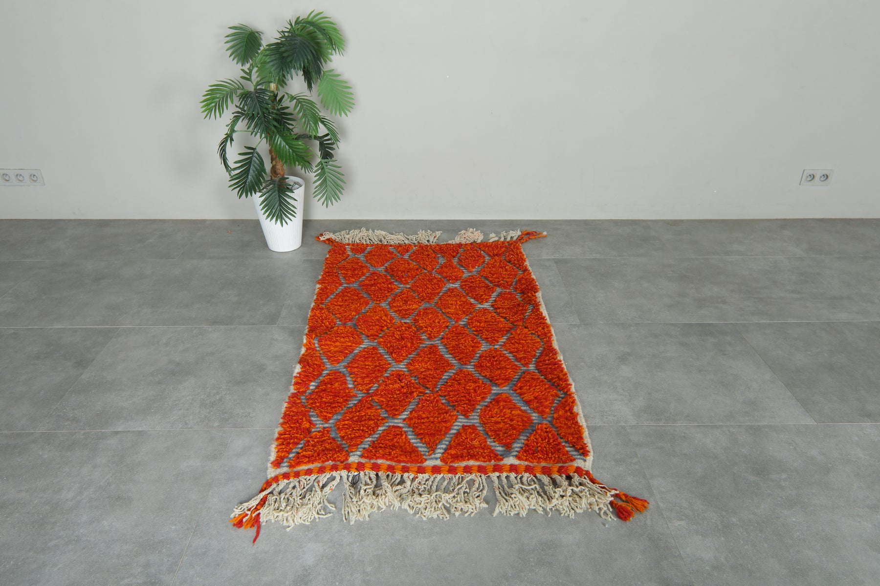 Orange Moroccan rug with geometric diamond design - 3.1 ft x 5 ft
