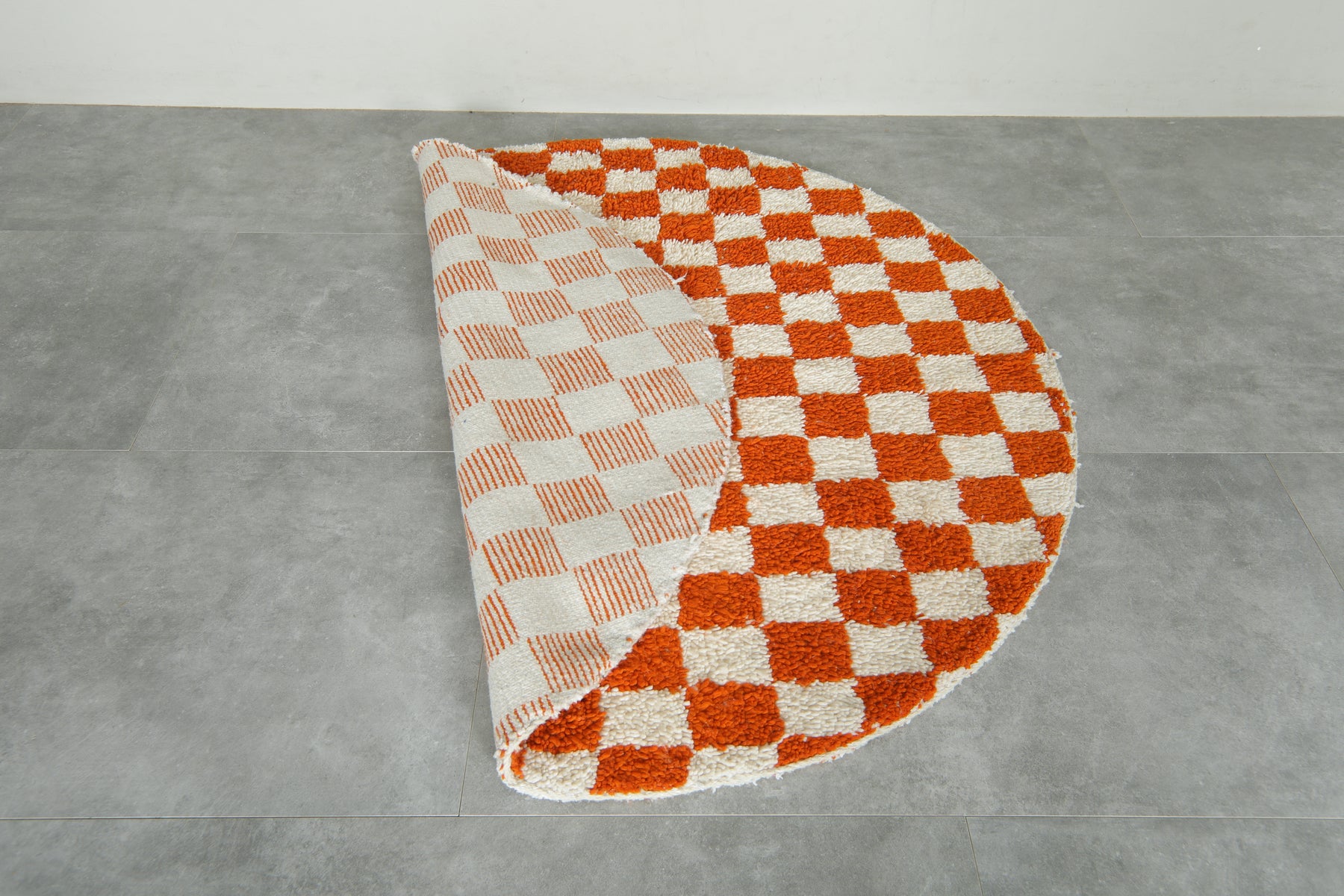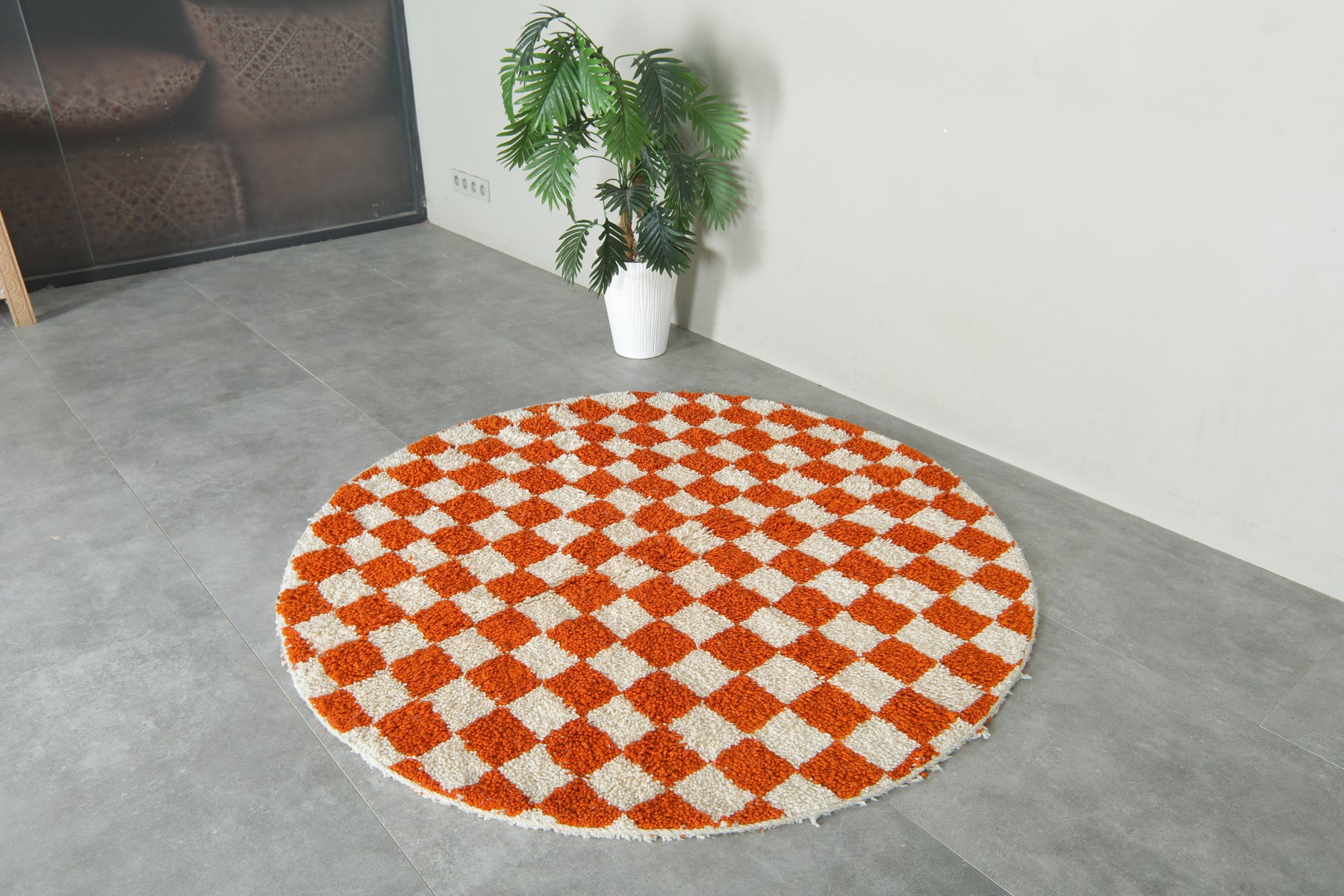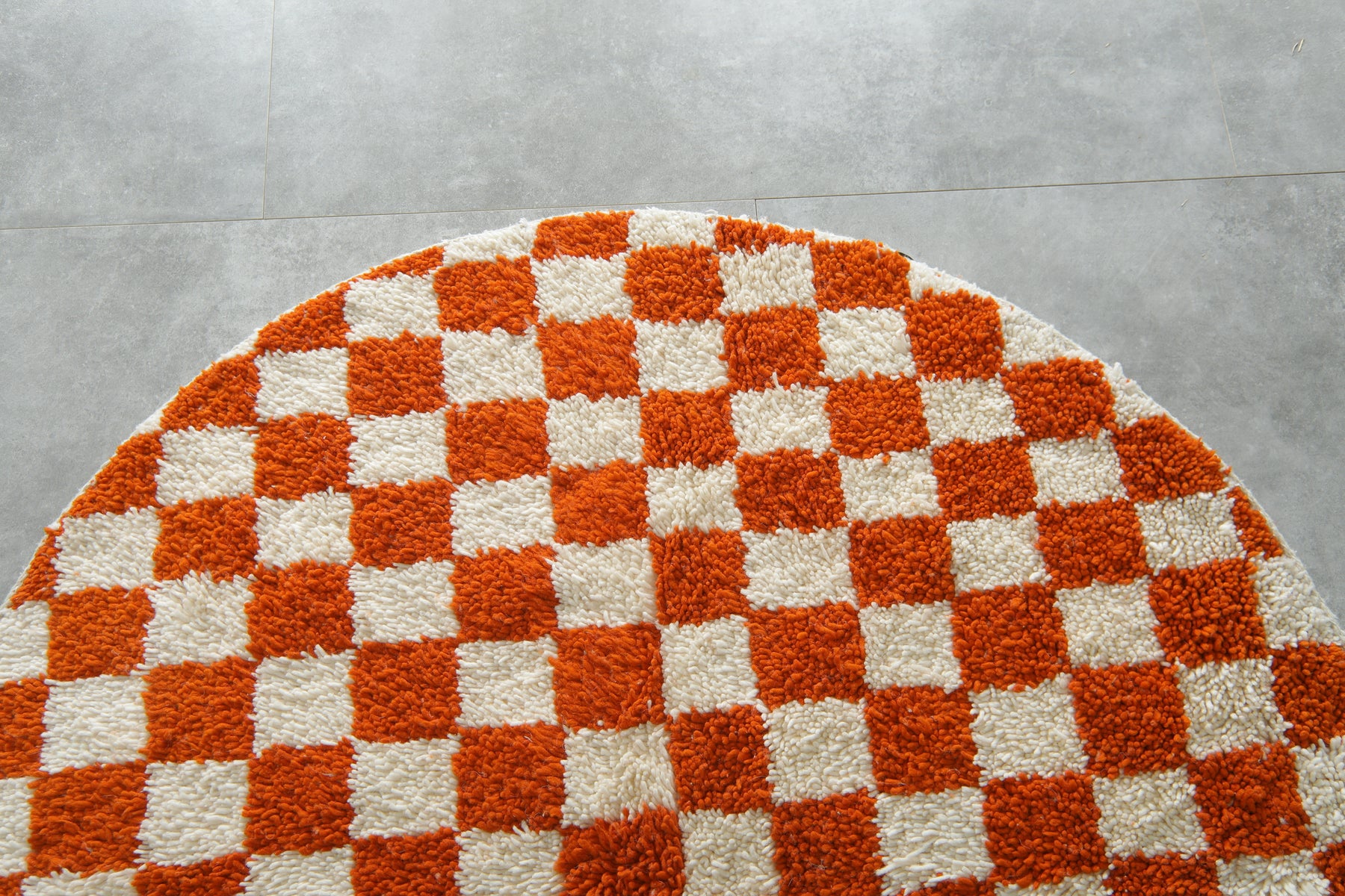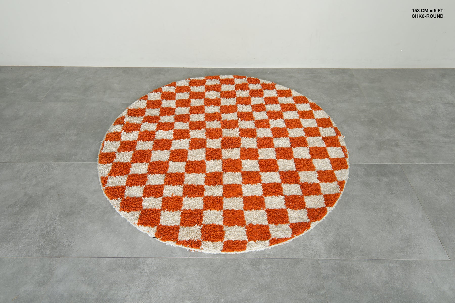 Round Moroccan Wool Rug - 5ft Orange Checkerboard