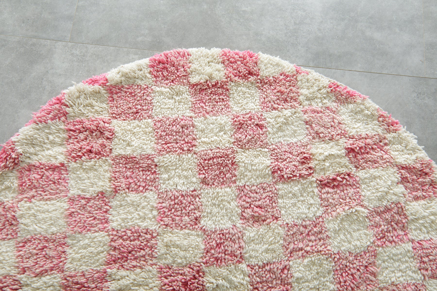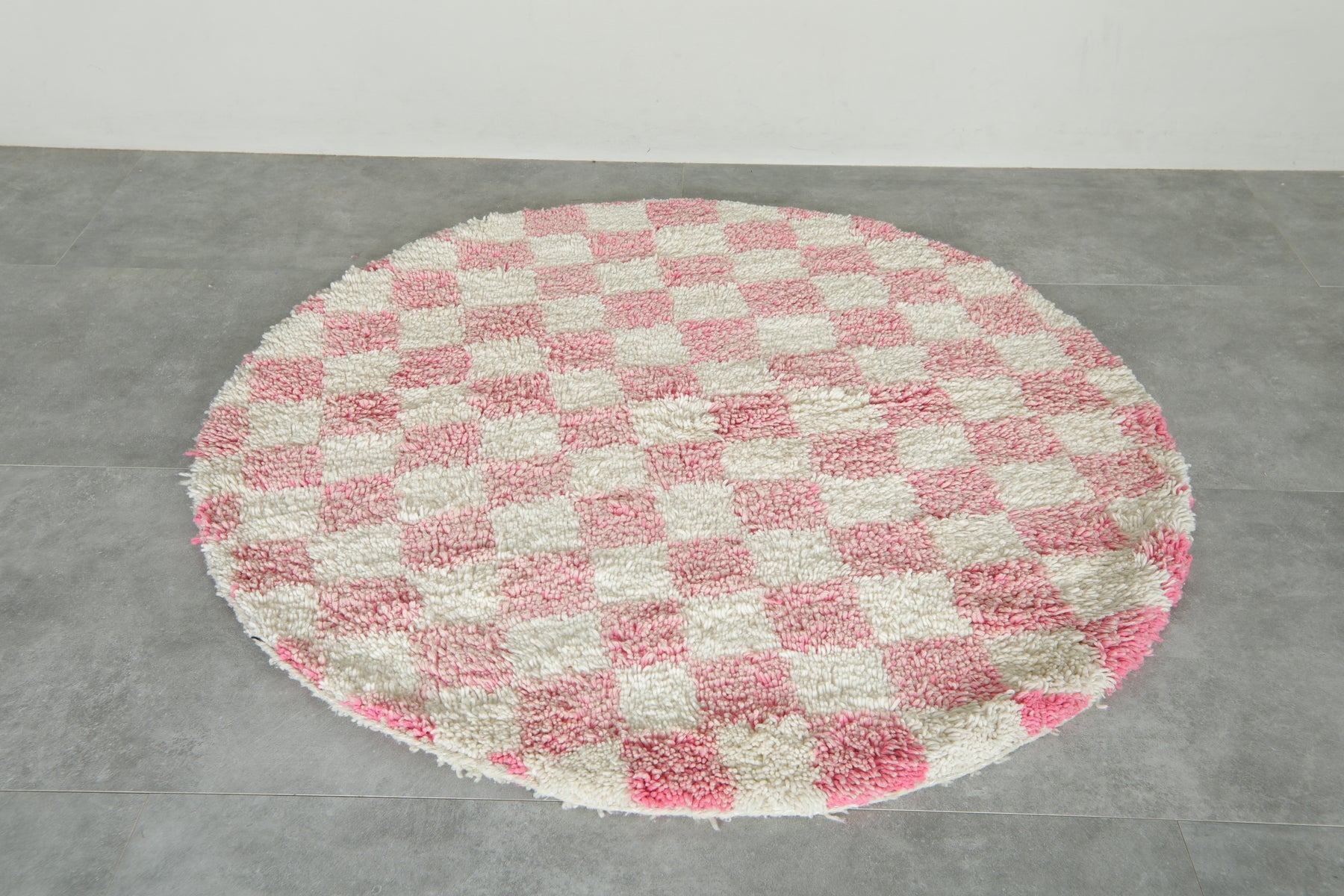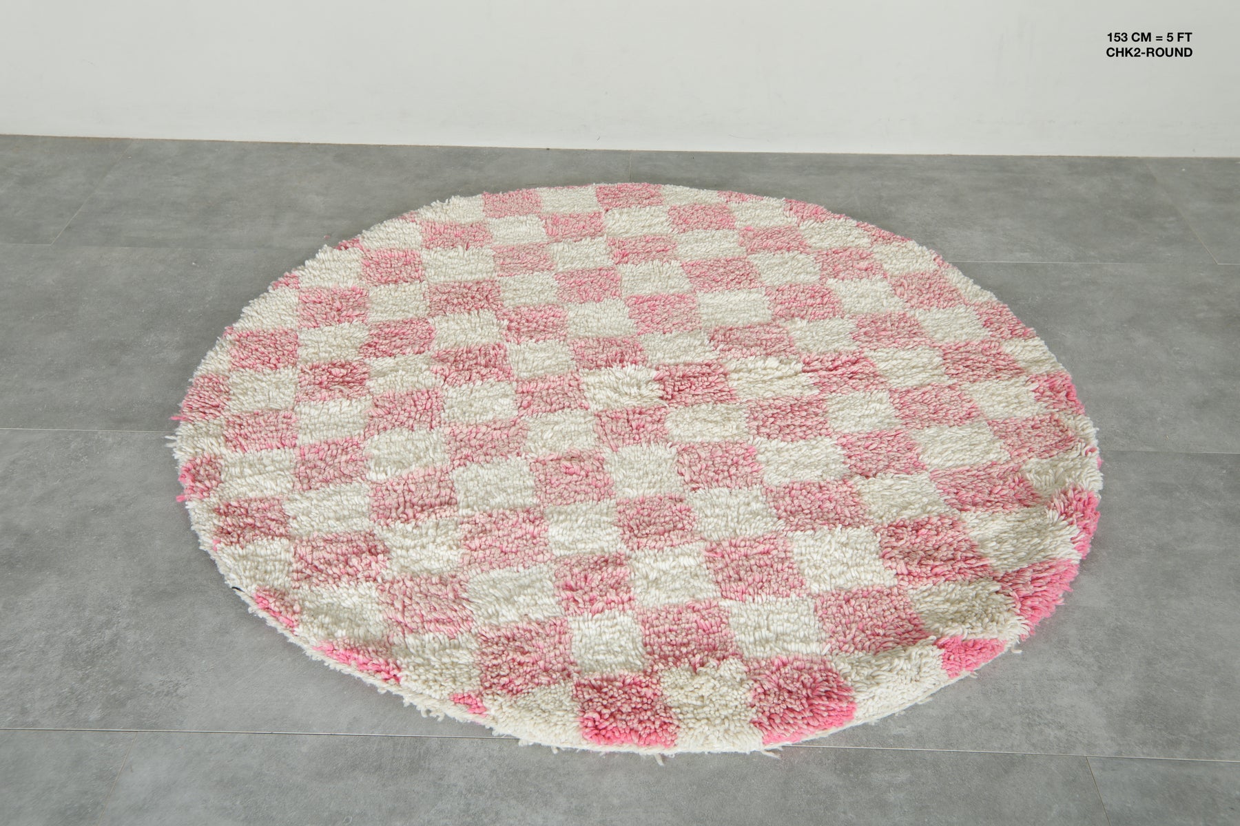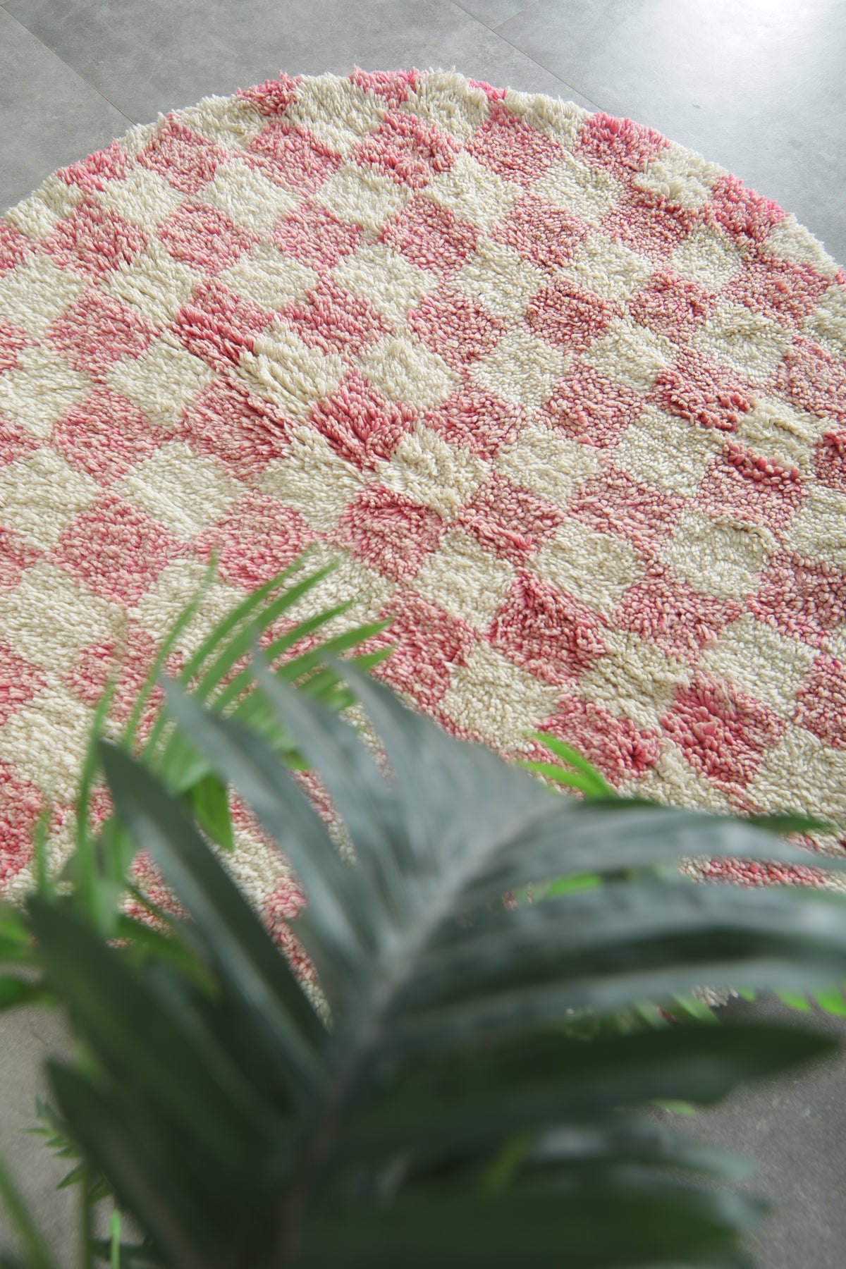 Round Moroccan Wool Rug - 5ft Pink Checkerboard