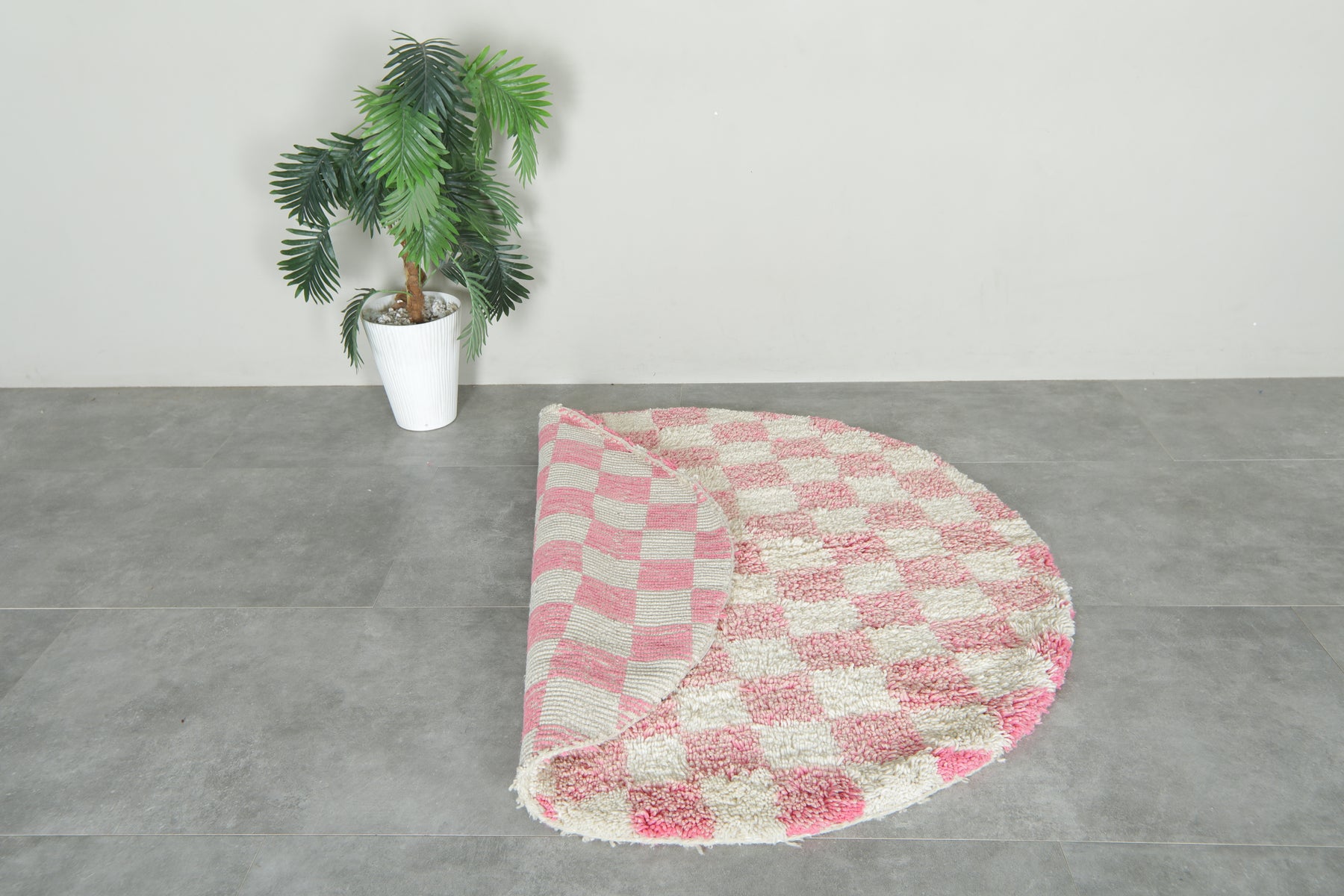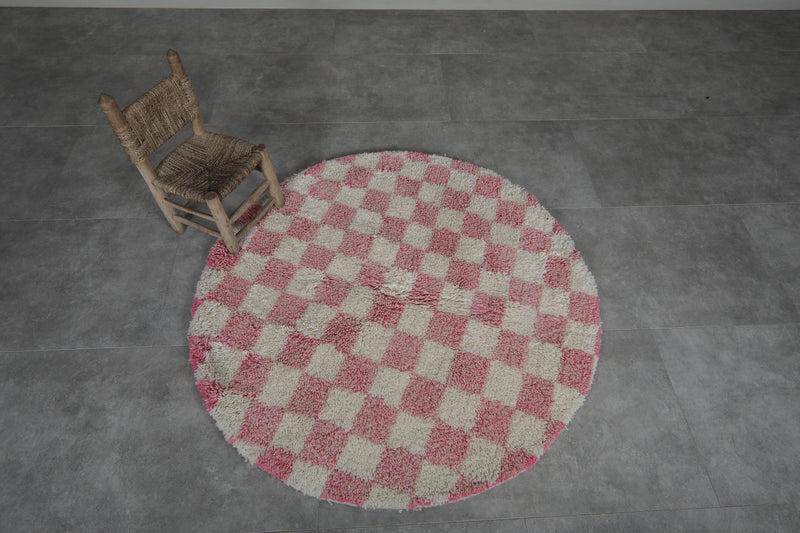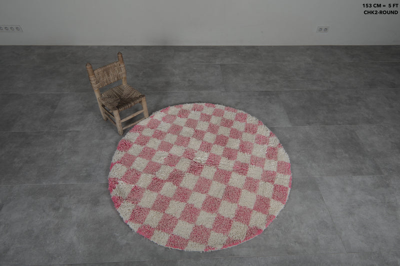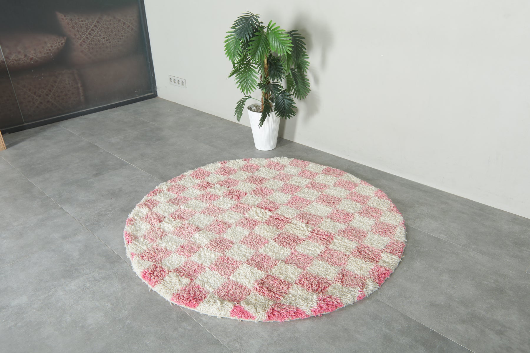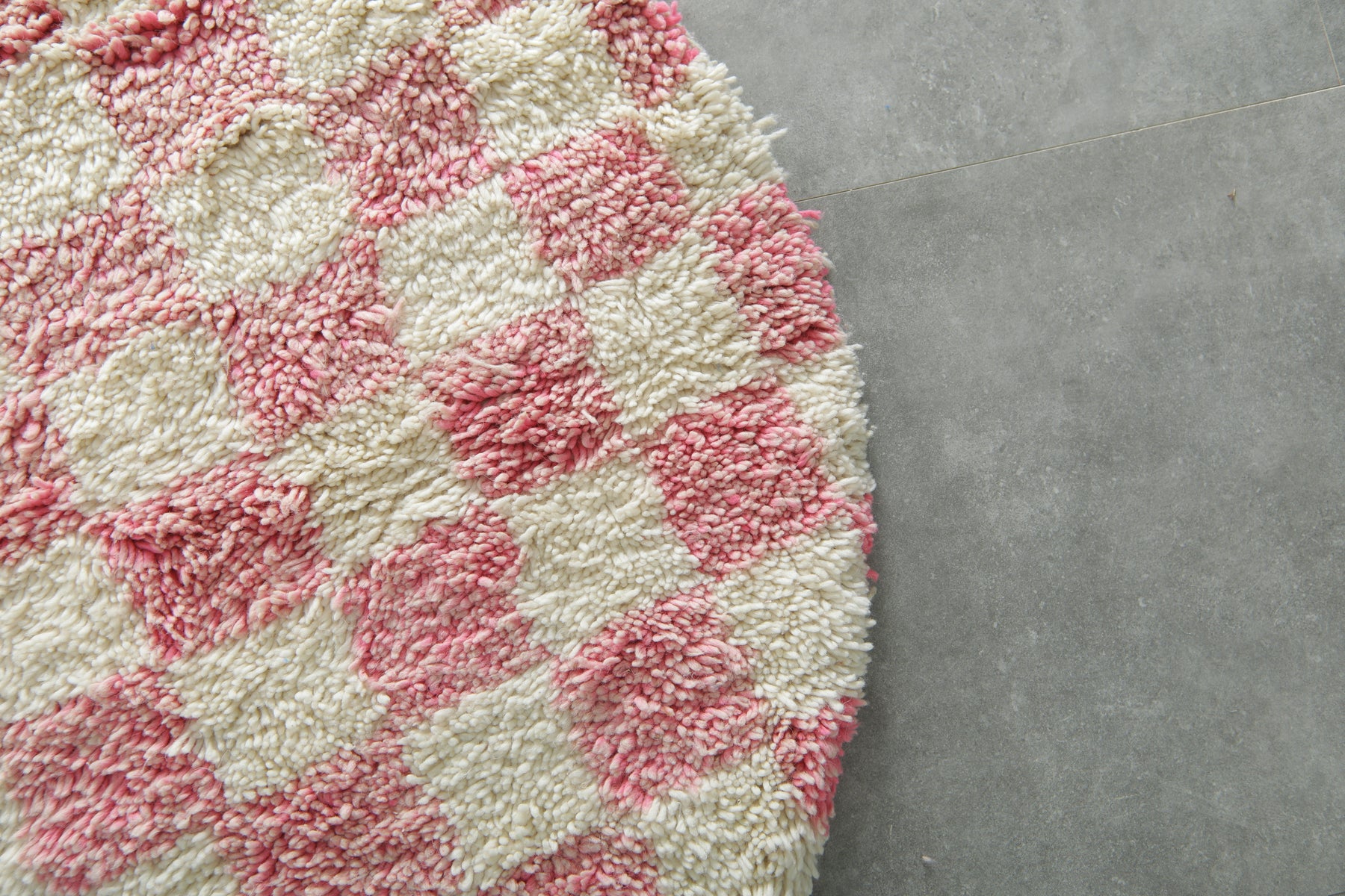 Round Moroccan Wool Rug - 5ft Pink Checkerboard