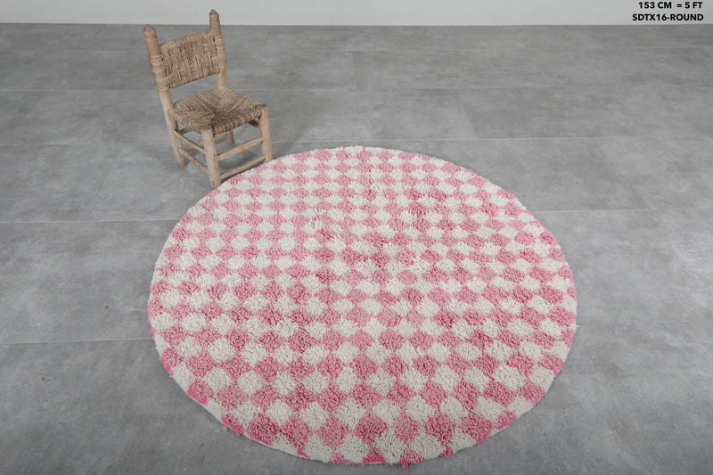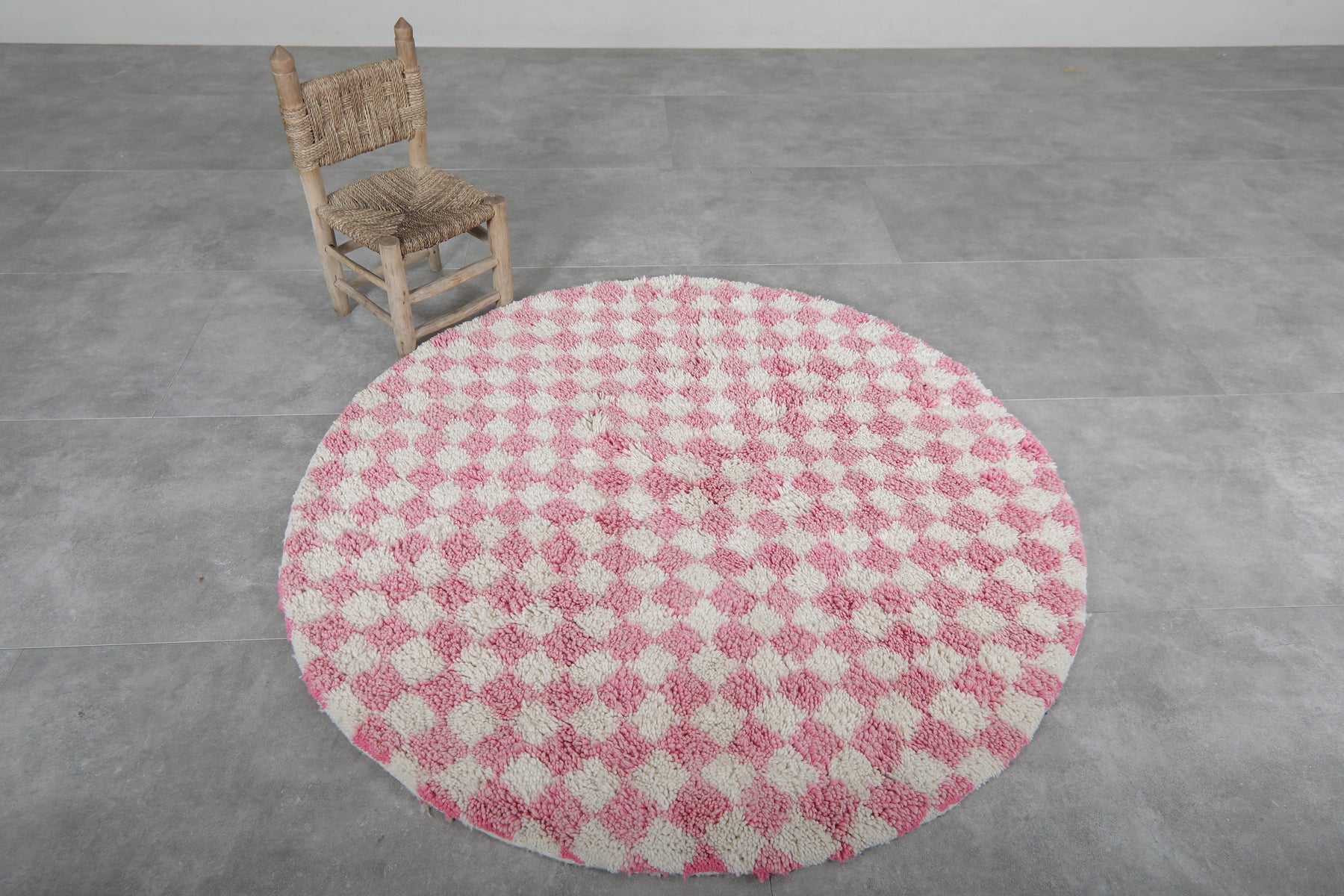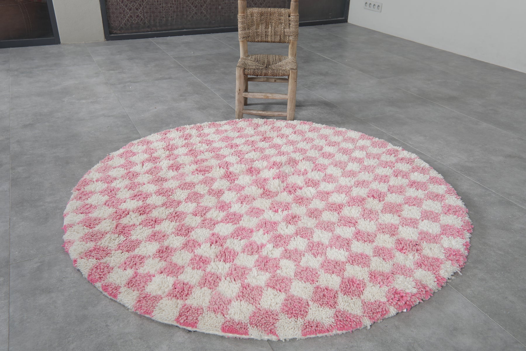 Round Moroccan Wool Rug - 5ft Pink & Cream Checkerboard