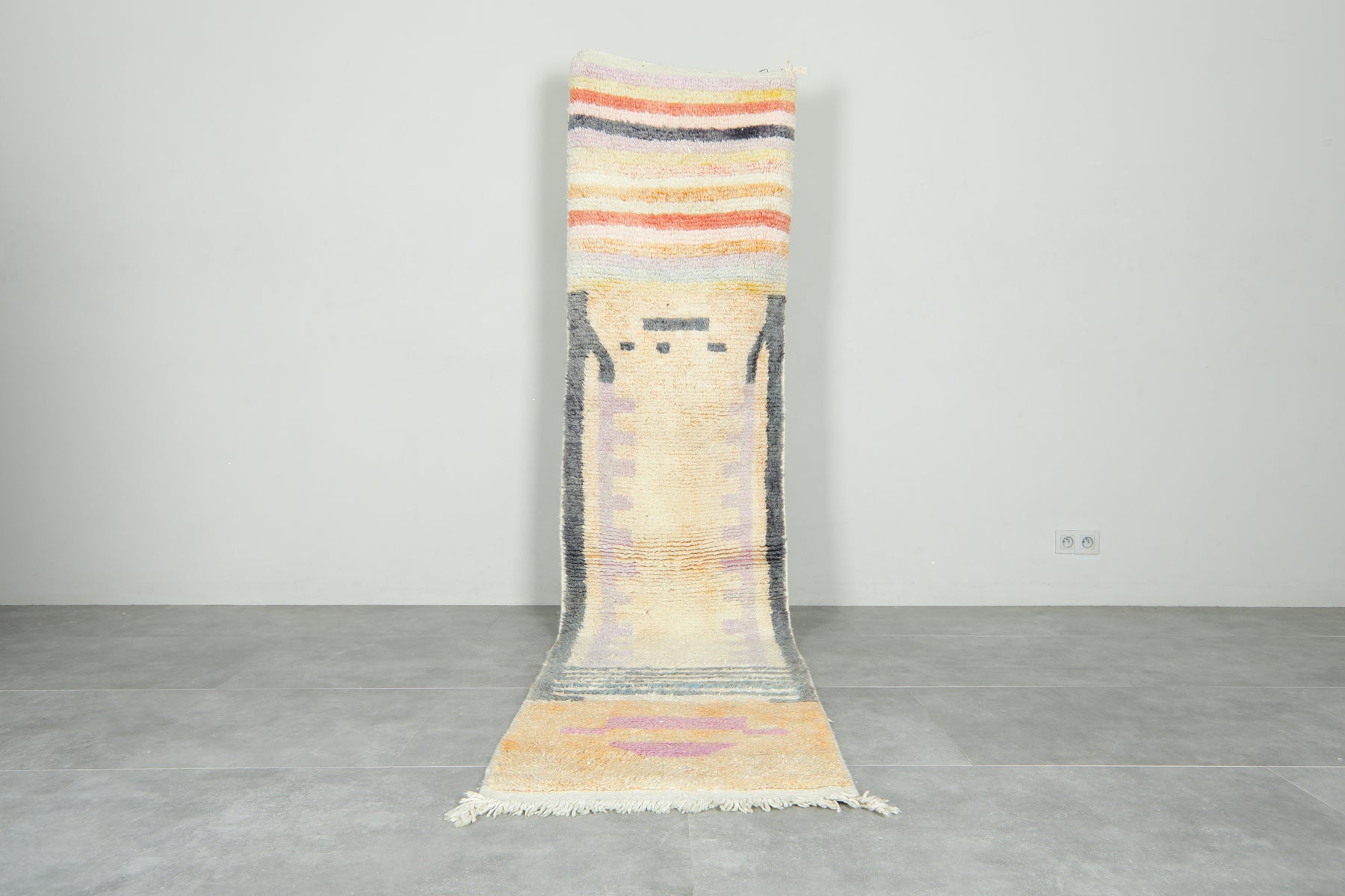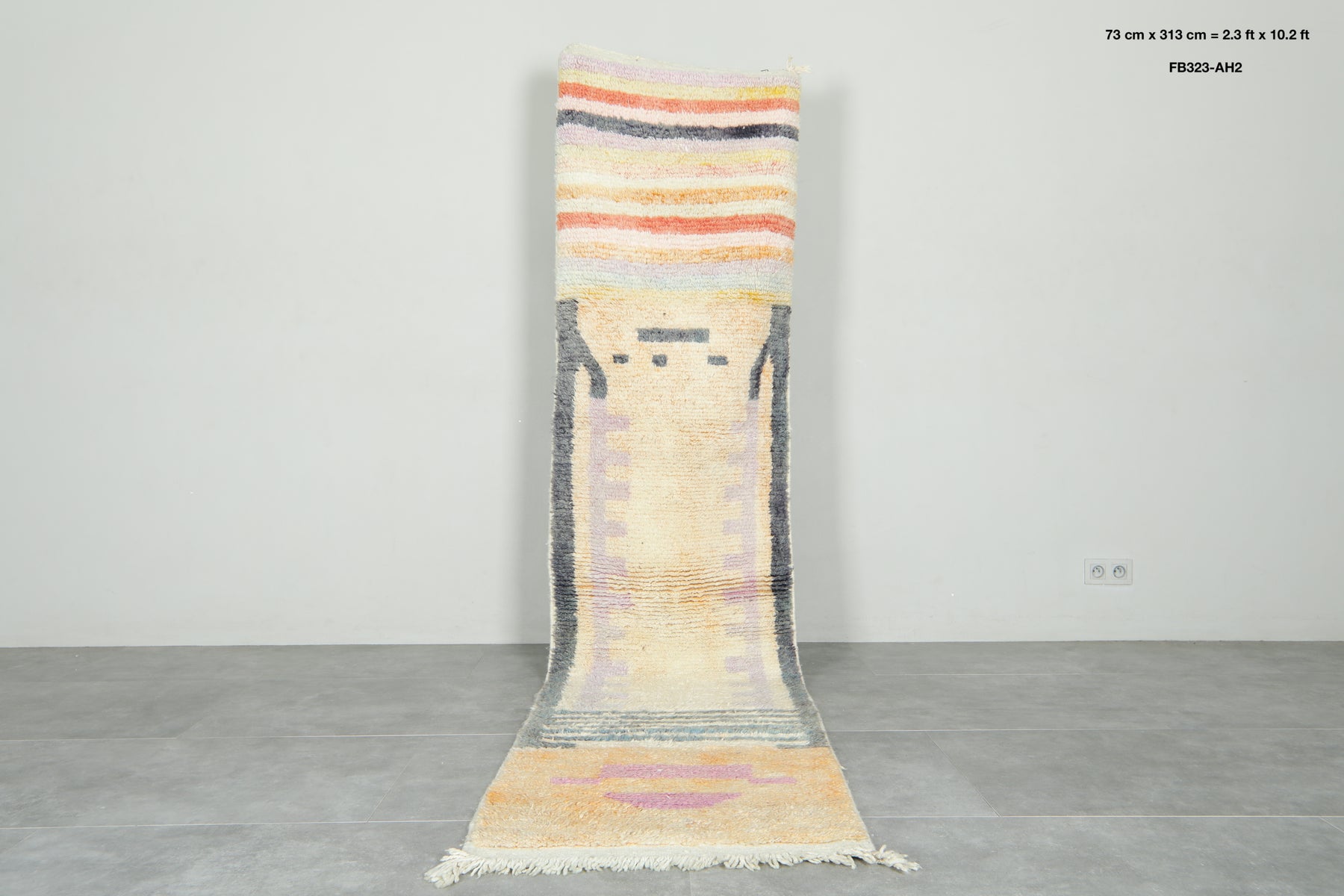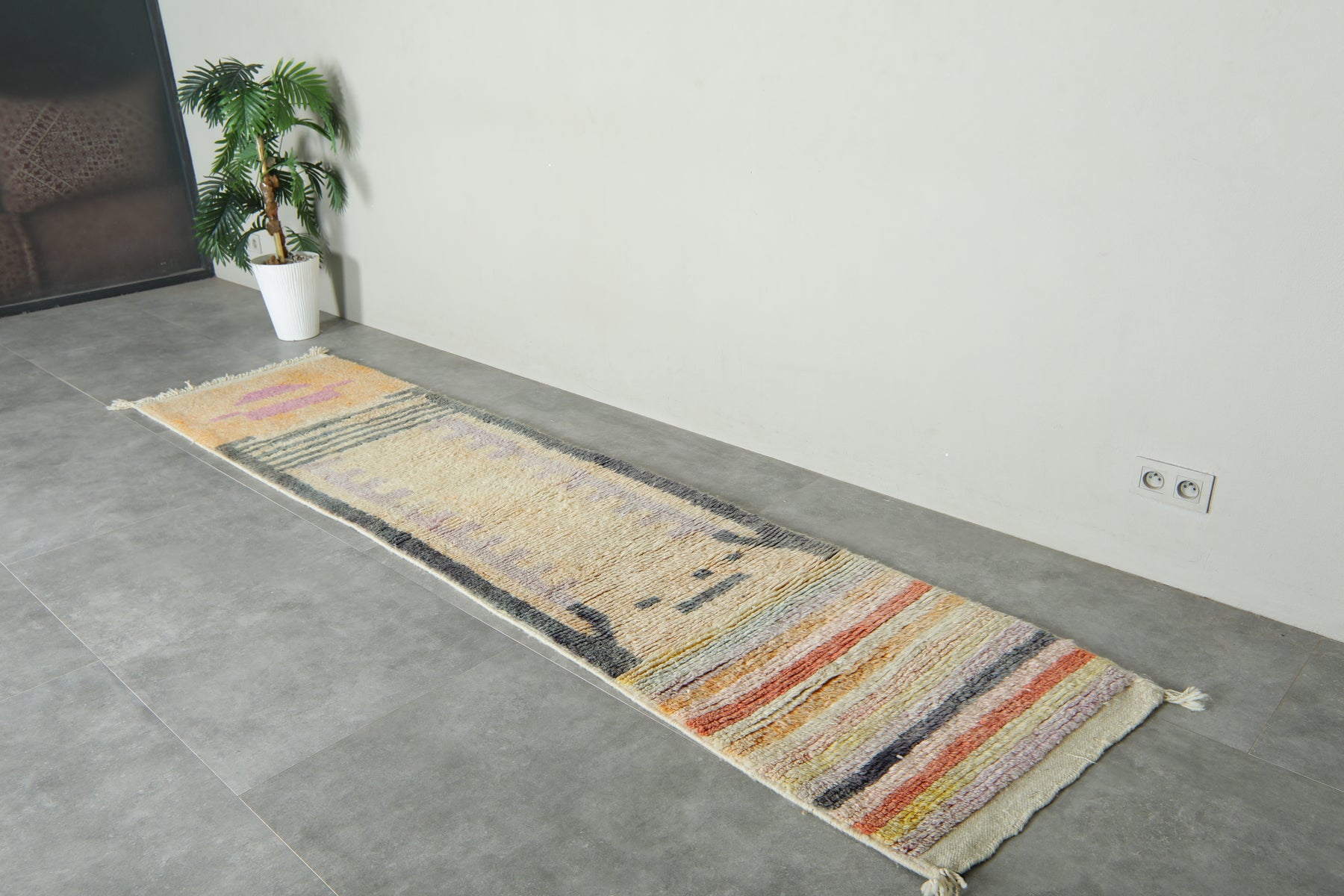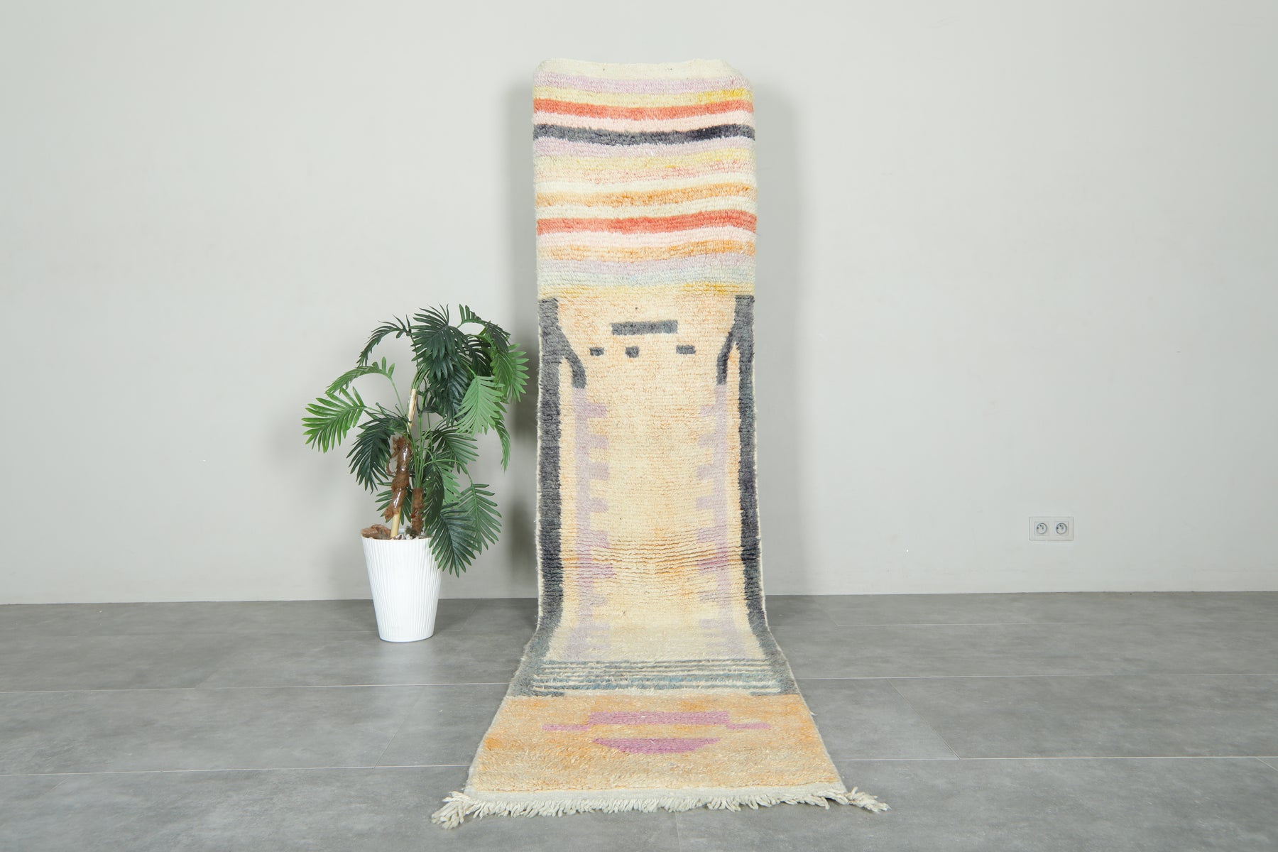 Beige Moroccan runner rug - 2.3 ft x 10.2 ft - Handwoven wool carpet