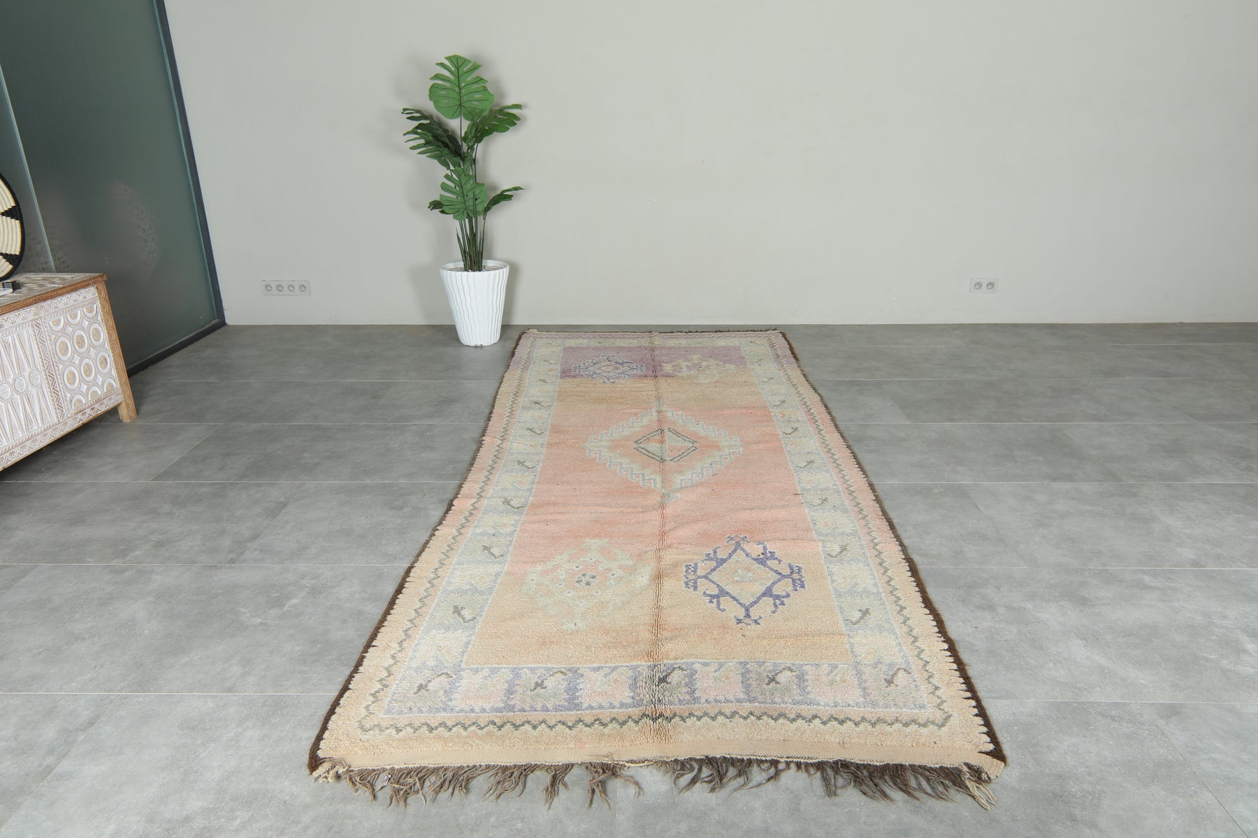 Beige runner Moroccan rug - 4.9 ft x 11.4 ft - Eco-friendly wool carpet - moroccan rug