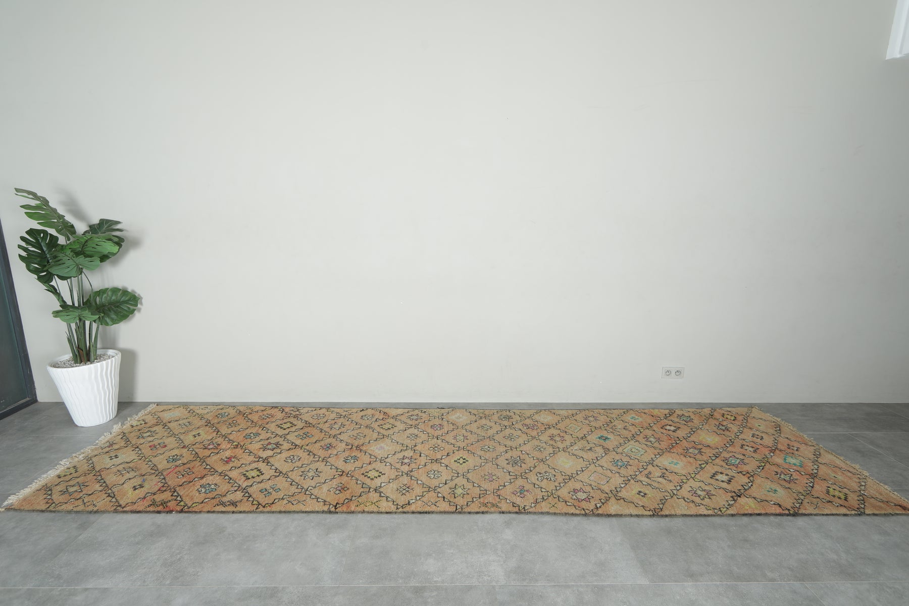 Beige runner Moroccan rug with geometric rug - 3.7 ft x 14.3 ft