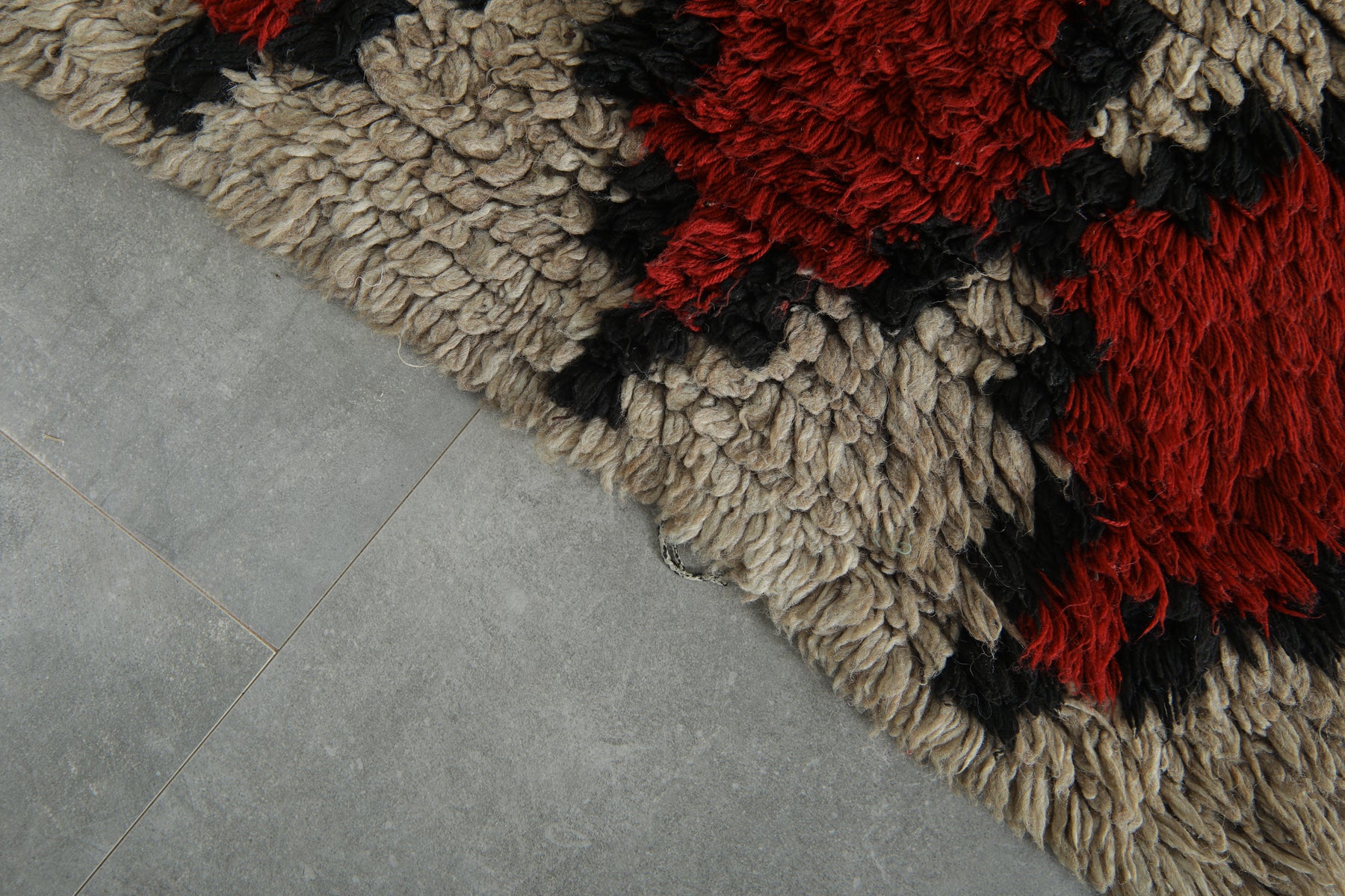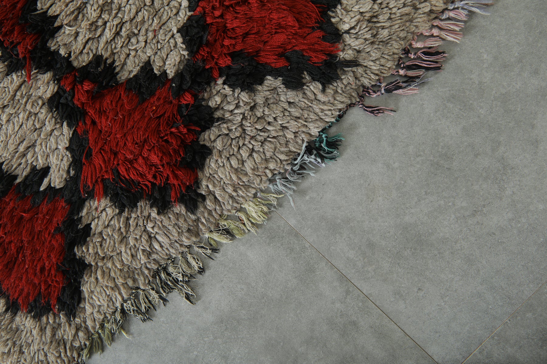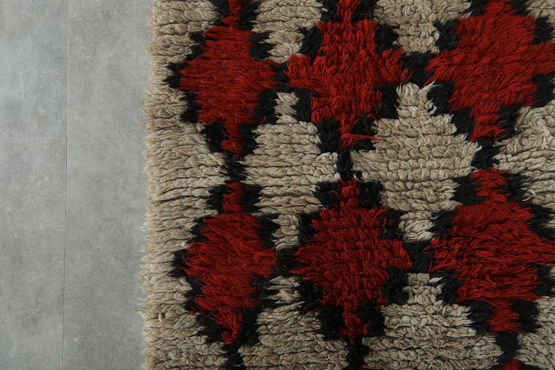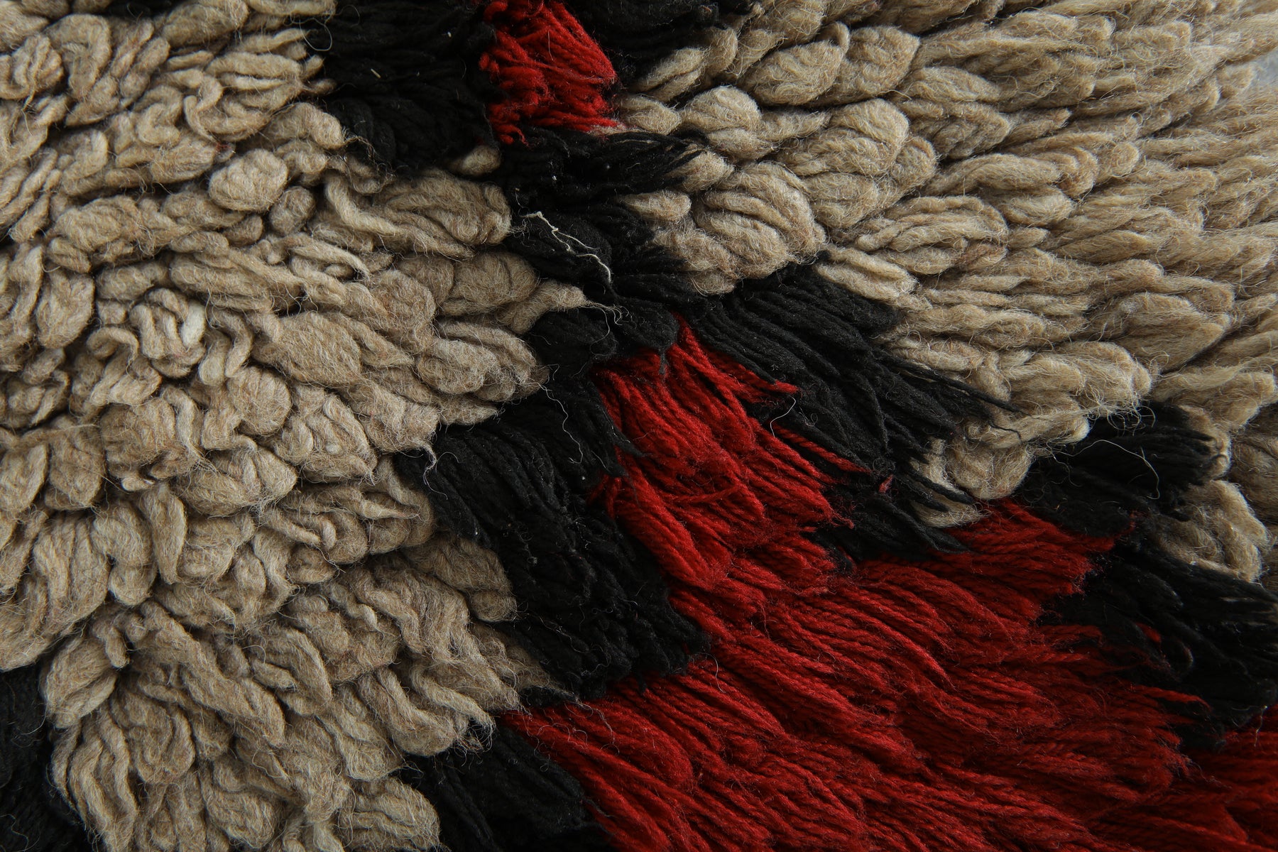 Add flair to your entryway, hallway, or cramped space with this handwoven Moroccan diamond runner rug, featuring a dramatic geometric diamond pattern in rich red and black on natural beige wool. Crafted by skilled weavers using 100% wool, this long vintage-inspired runner showcases the bold, elegant essence of Berber traditional design.