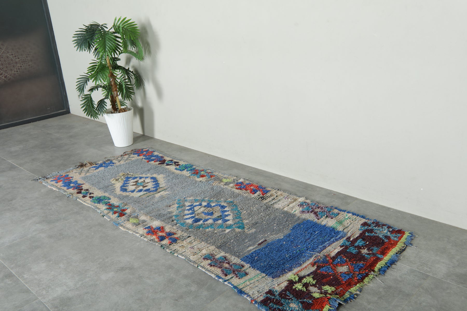 Geometric Moroccan runner rug - 3 ft x 7.7 ft - Handwoven wool carpet - Runner moroccan rugs