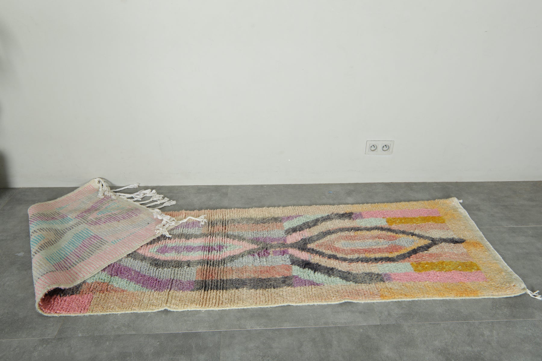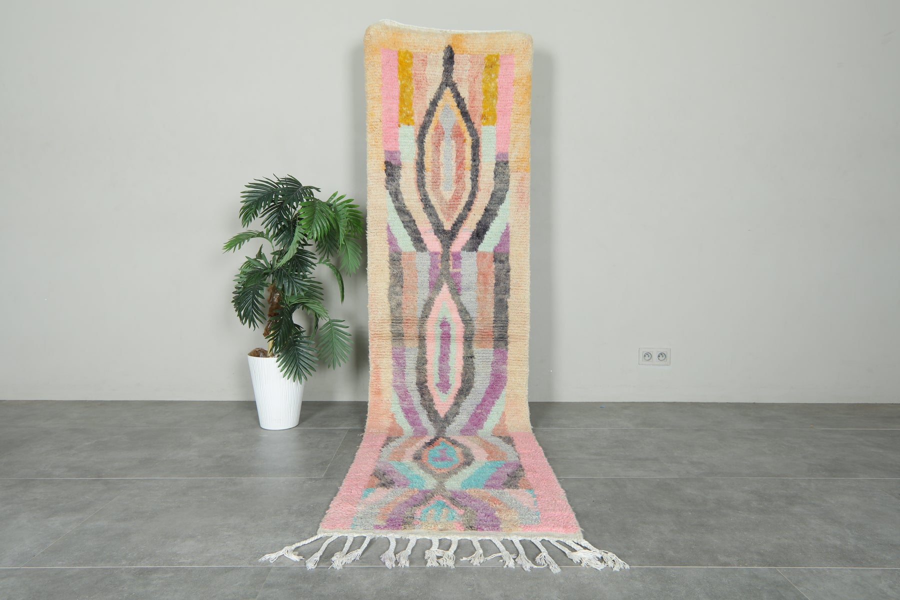 Geometric runner Moroccan rug - 2.2 ft x 8.9 ft - Handmade wool rug