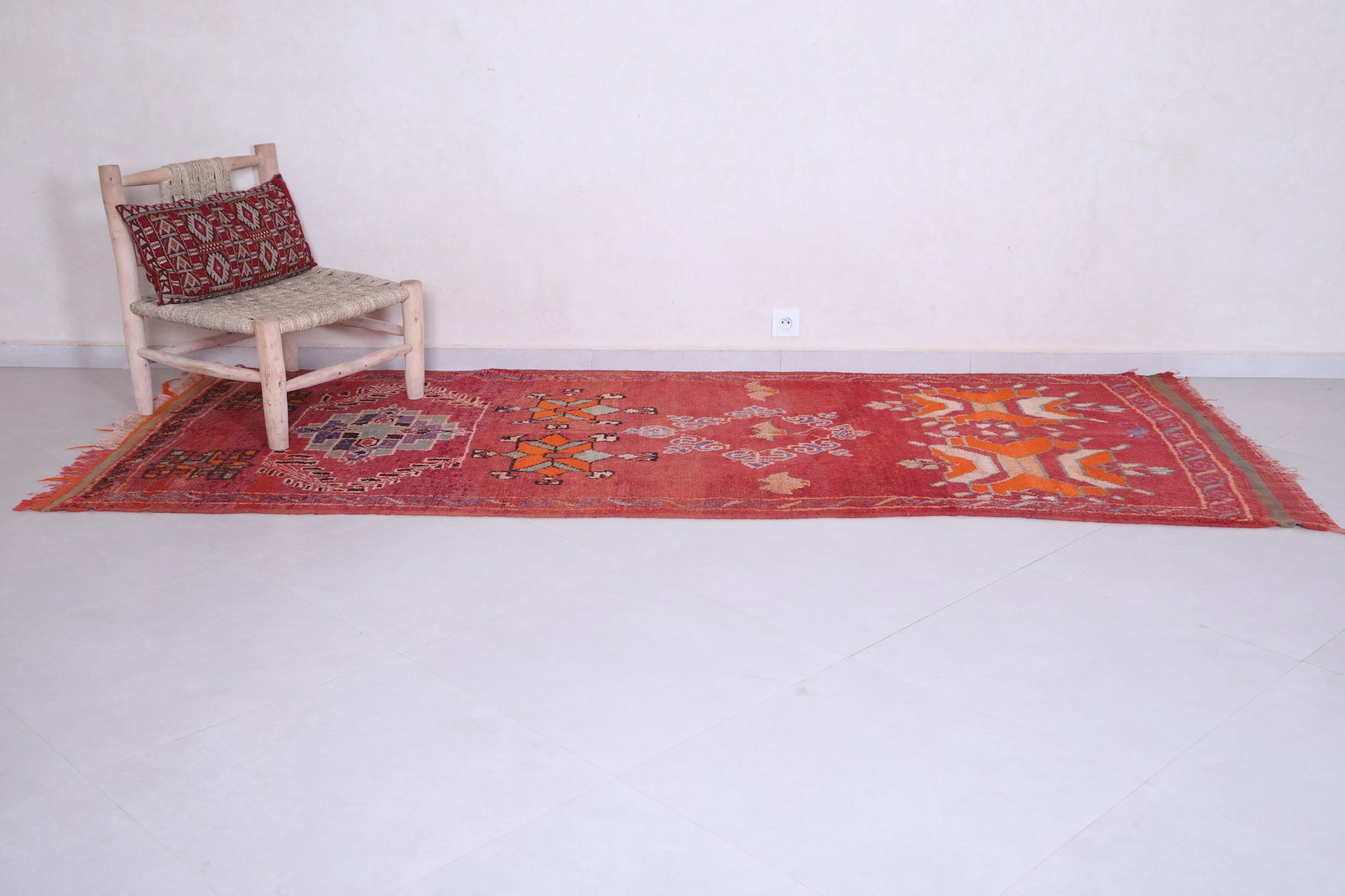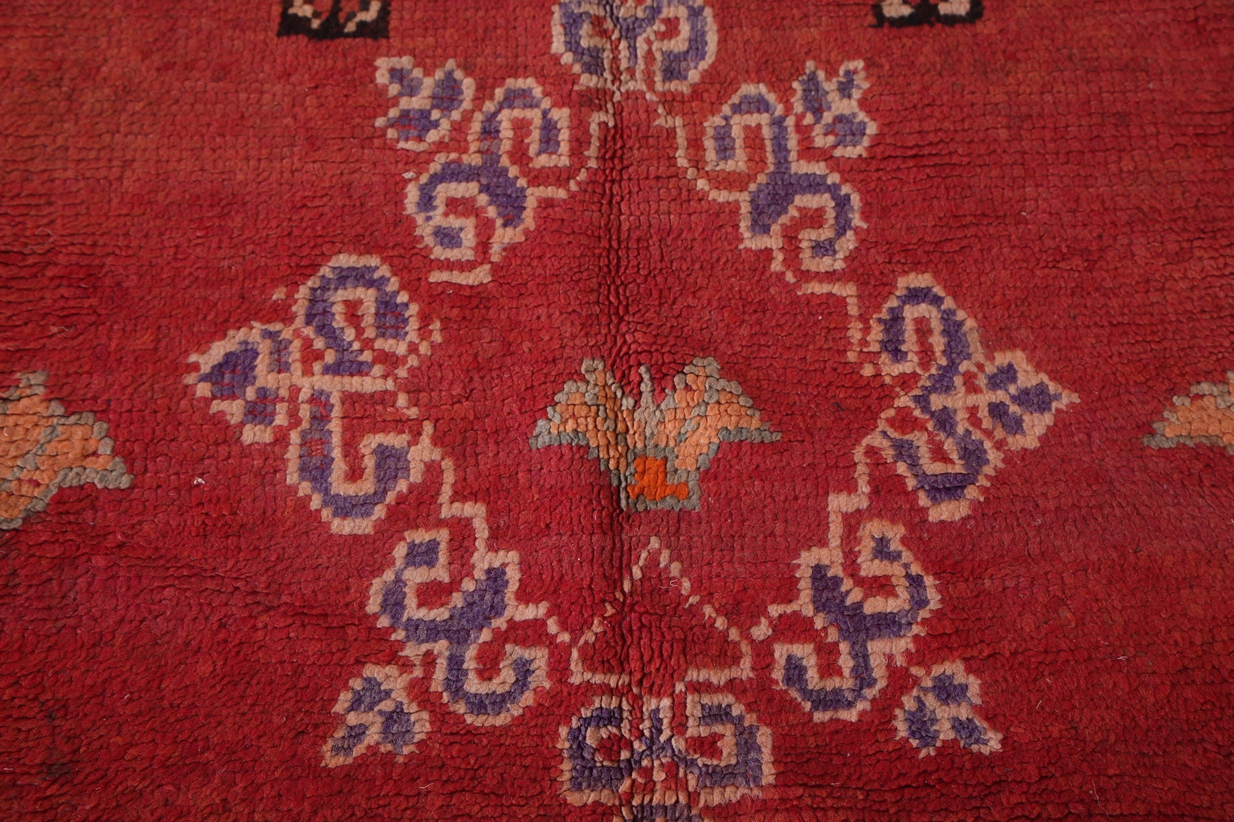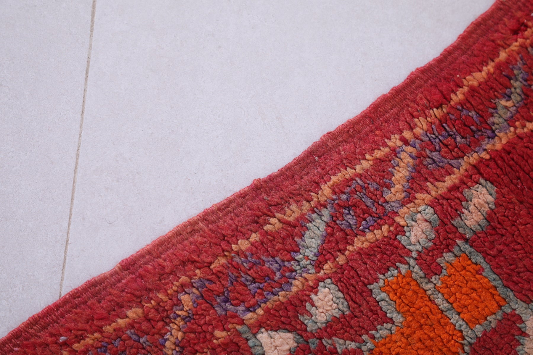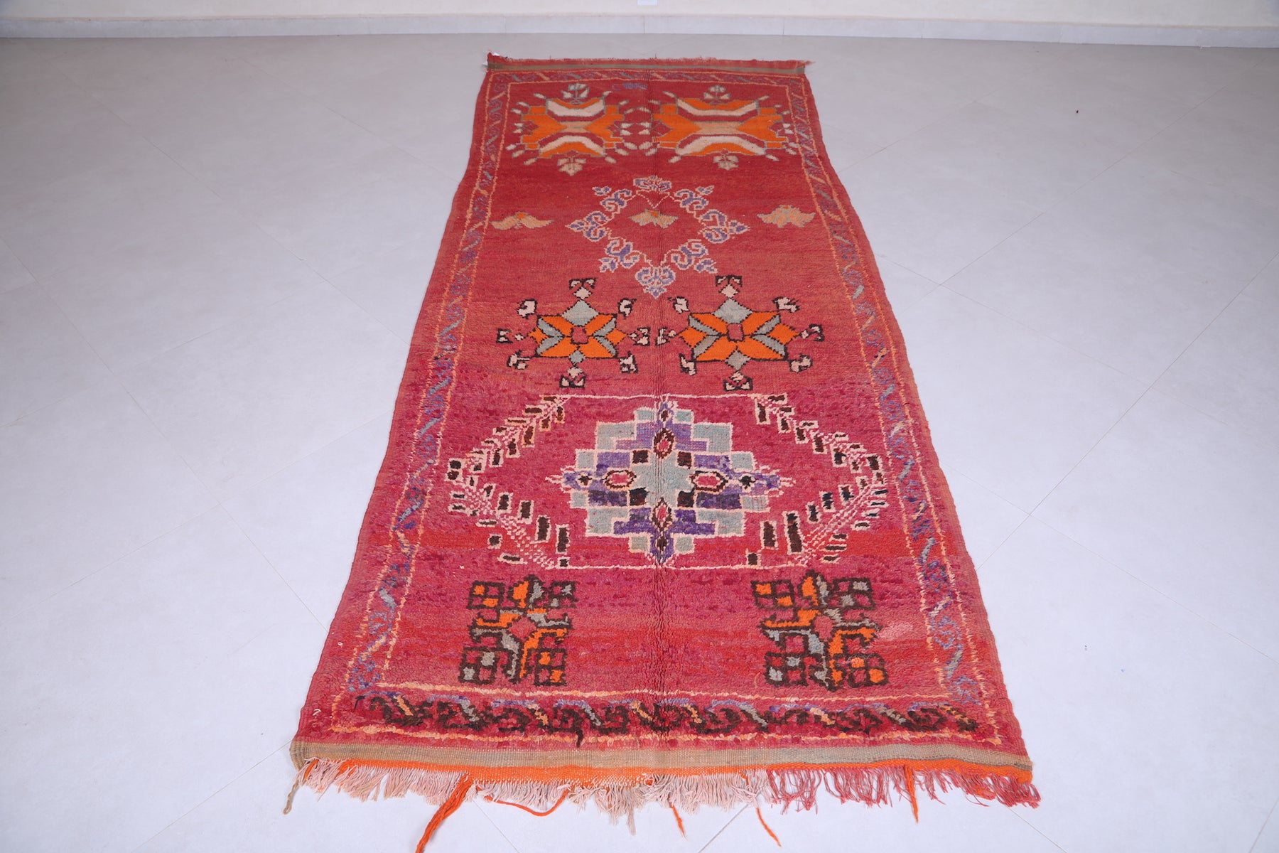Bring vibrant tradition to your home with this Handmade Moroccan Red Rug Runner (4 x 10 FT), a striking piece adorned with symbolic motifs and rich sunset tones that exude cultural charm.