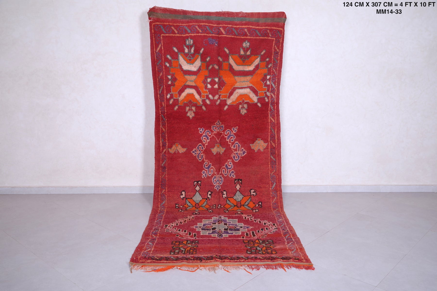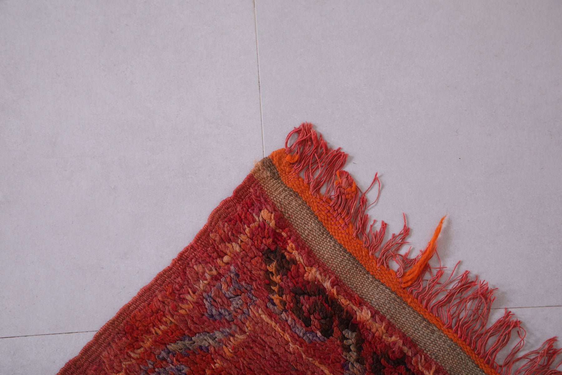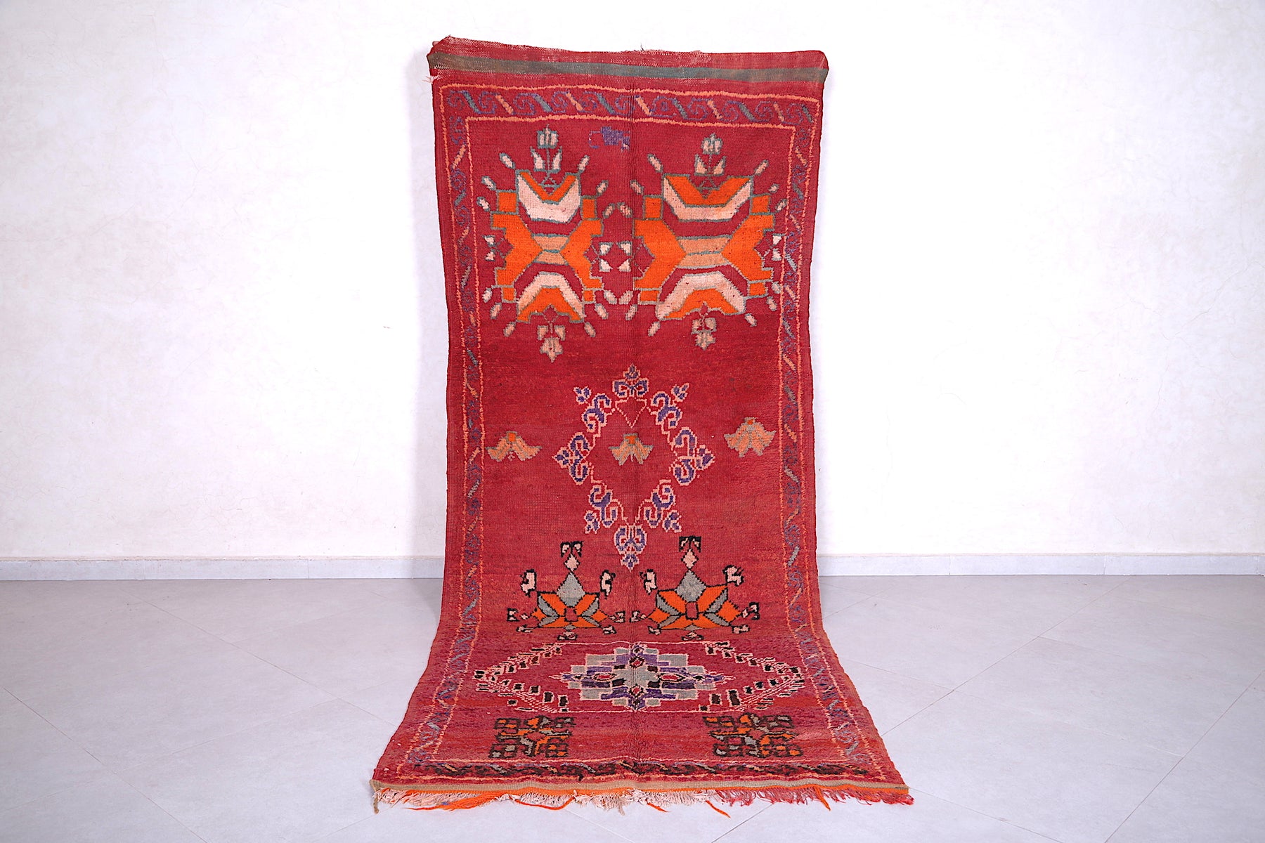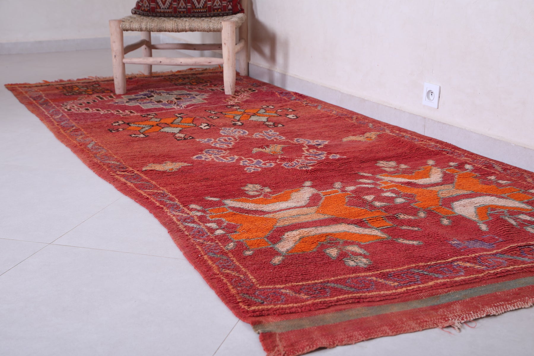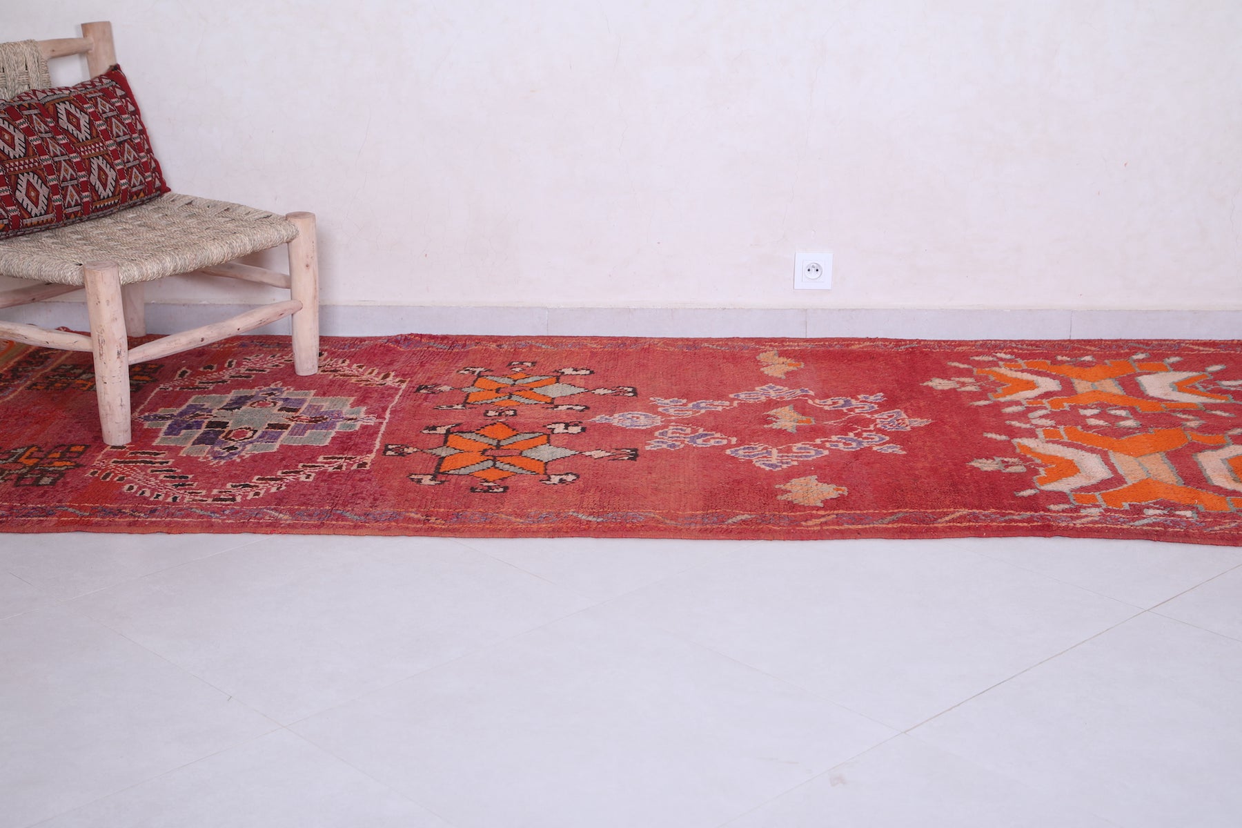 Bring vibrant tradition to your home with this Handmade Moroccan Red Rug Runner (4 x 10 FT), a striking piece adorned with symbolic motifs and rich sunset tones that exude cultural charm.