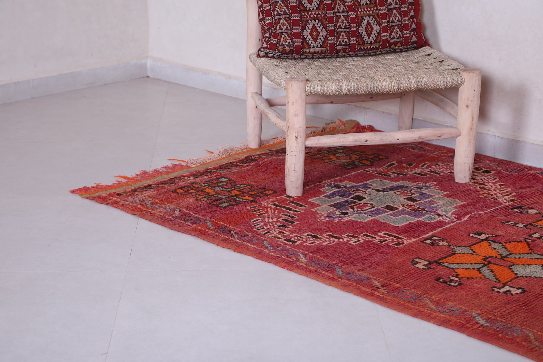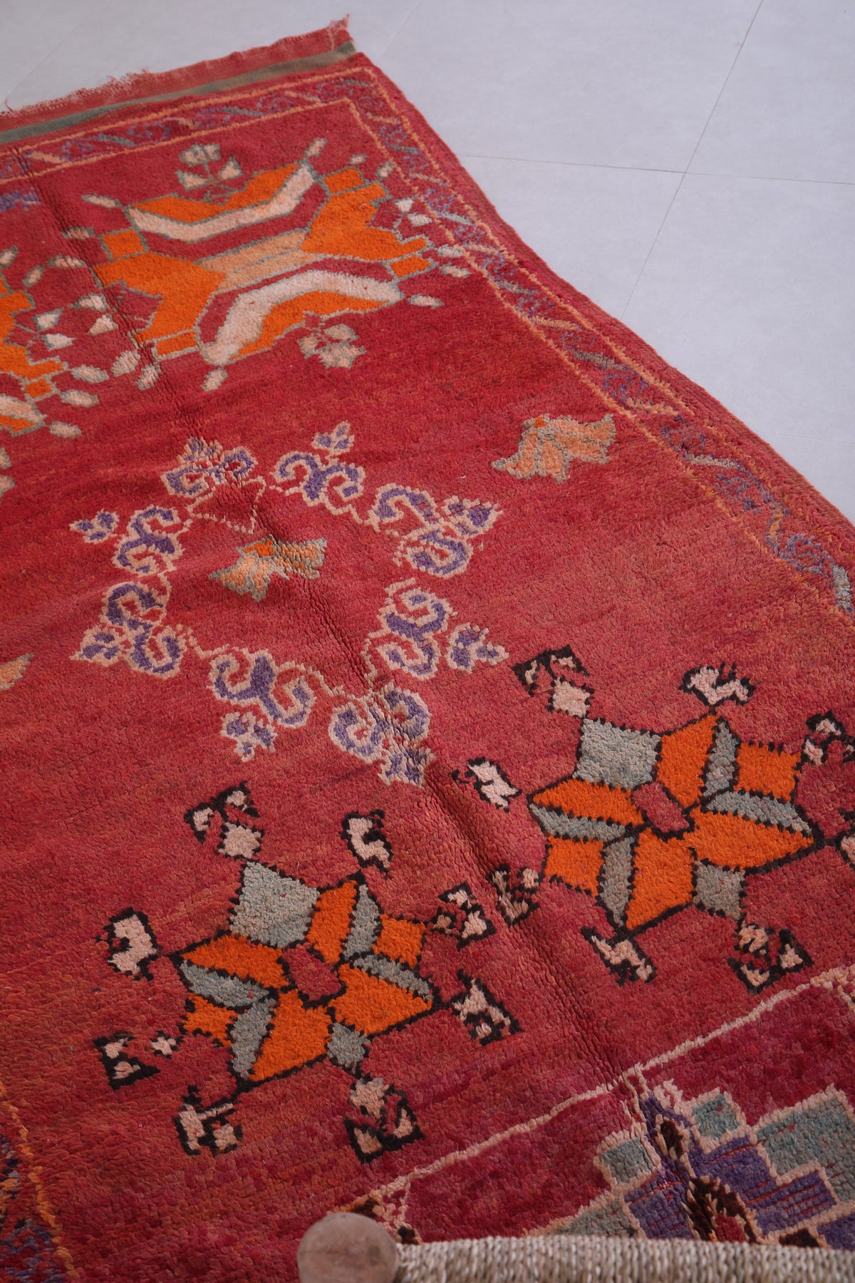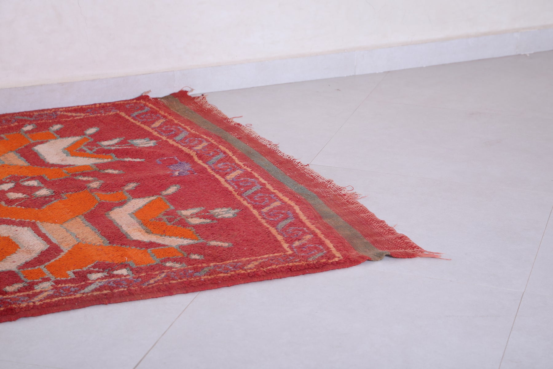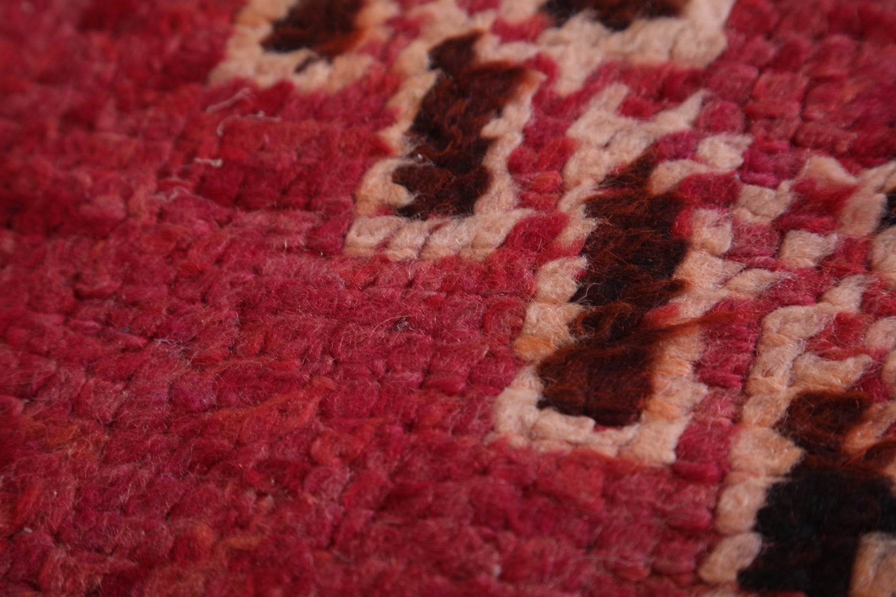 Bring vibrant tradition to your home with this Handmade Moroccan Red Rug Runner (4 x 10 FT), a striking piece adorned with symbolic motifs and rich sunset tones that exude cultural charm.