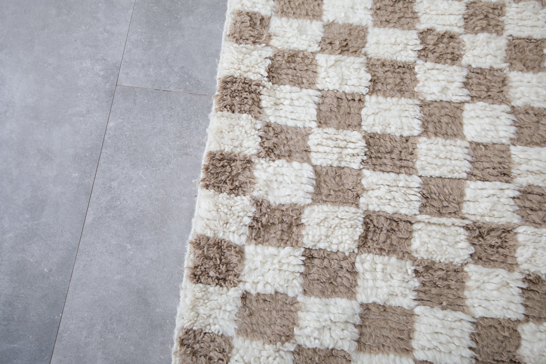 This 2.7 FT x 13 FT Moroccan Checkered Runner Rug adds modern charm with a timeless twist. Its neutral palette and bold checkered pattern create a clean, structured look perfect for long, narrow spaces.