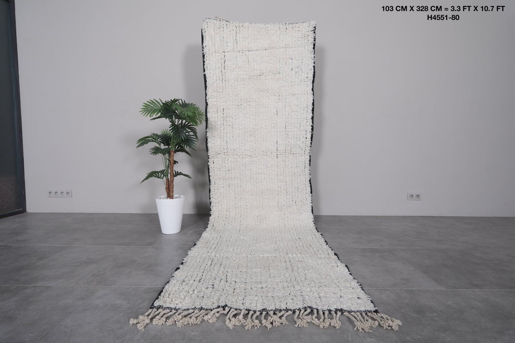 Moroccan runner rug - 3.3 x 10.7 ft | White with black border