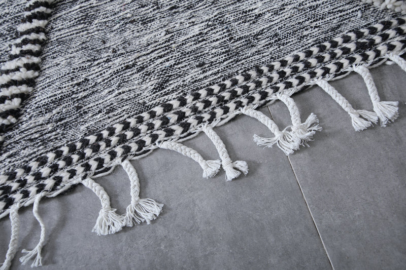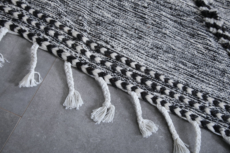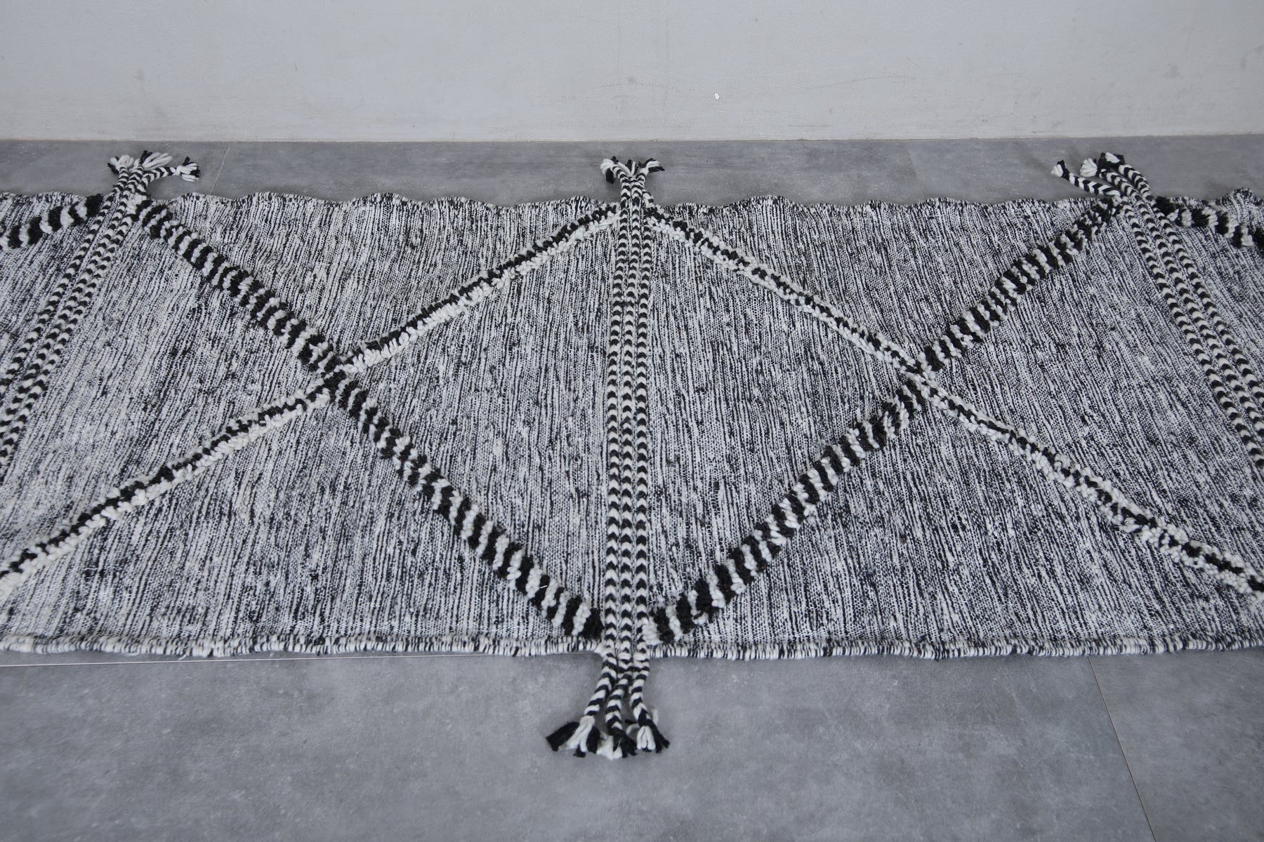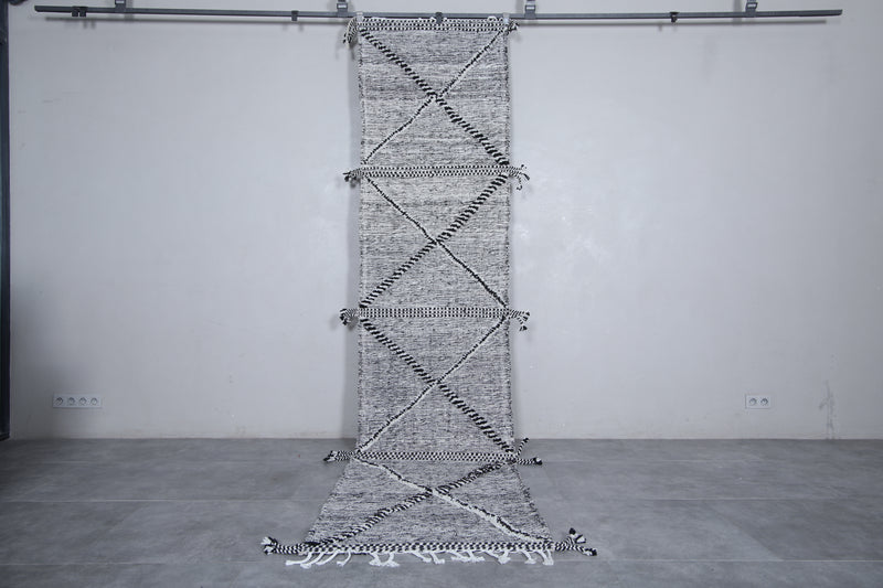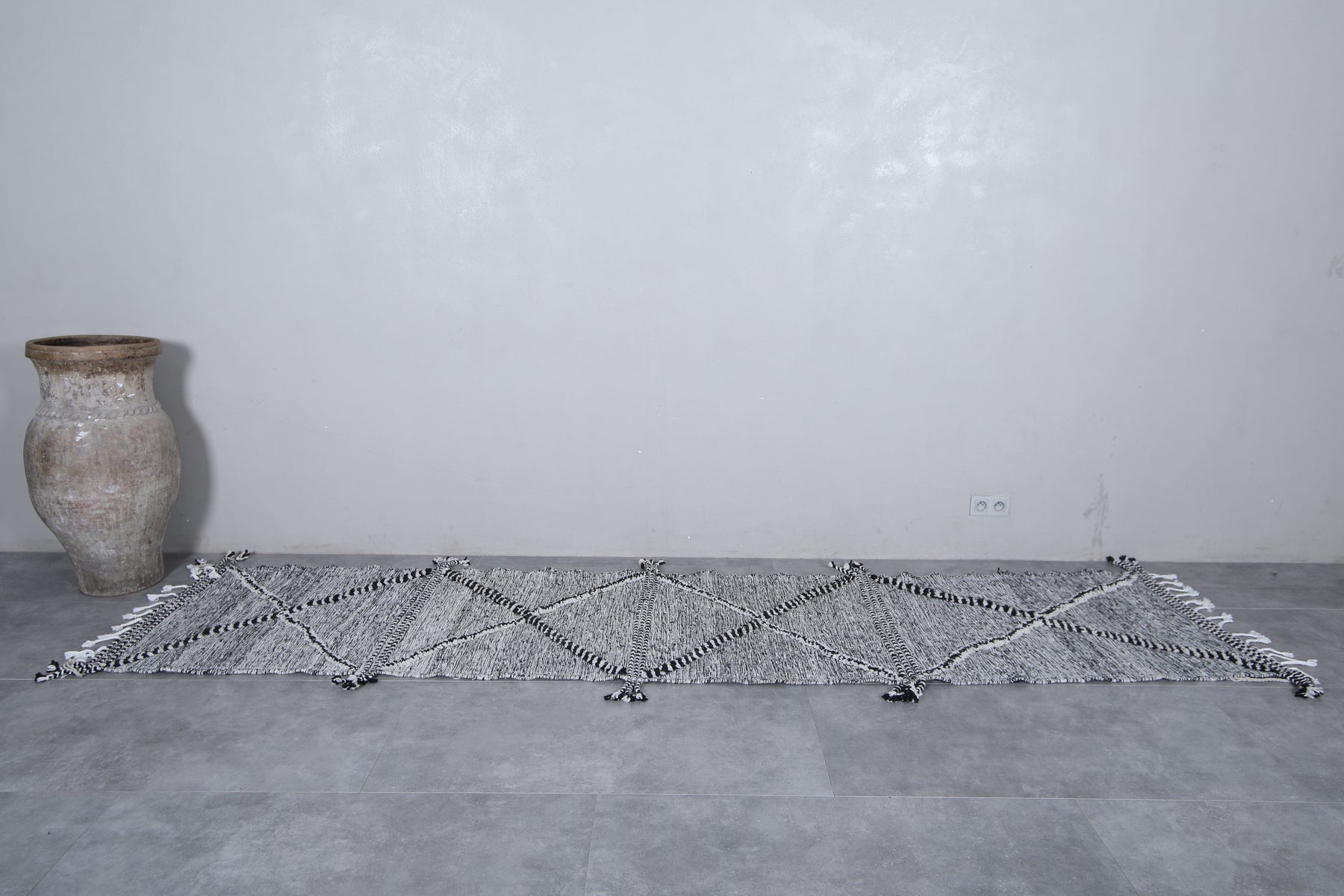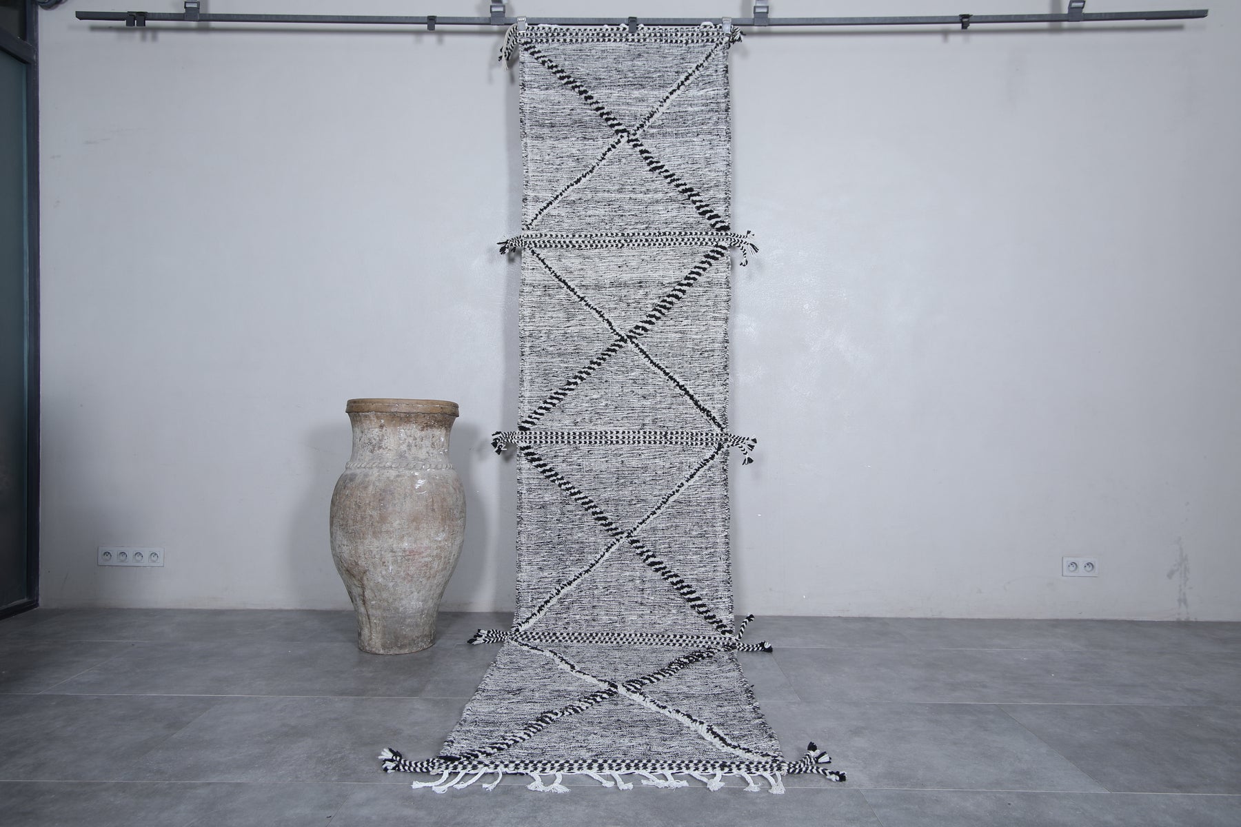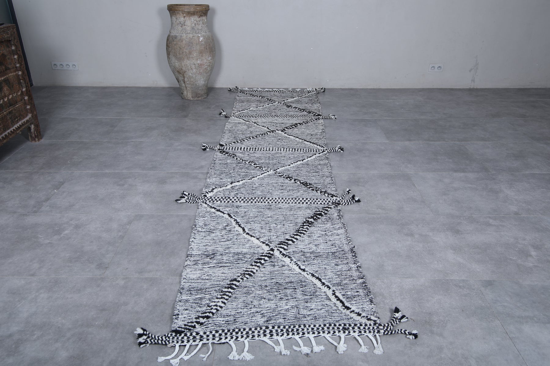 Moroccan Runner Rug - 2.9x12.3 FT | Flat-Woven Black and White Design