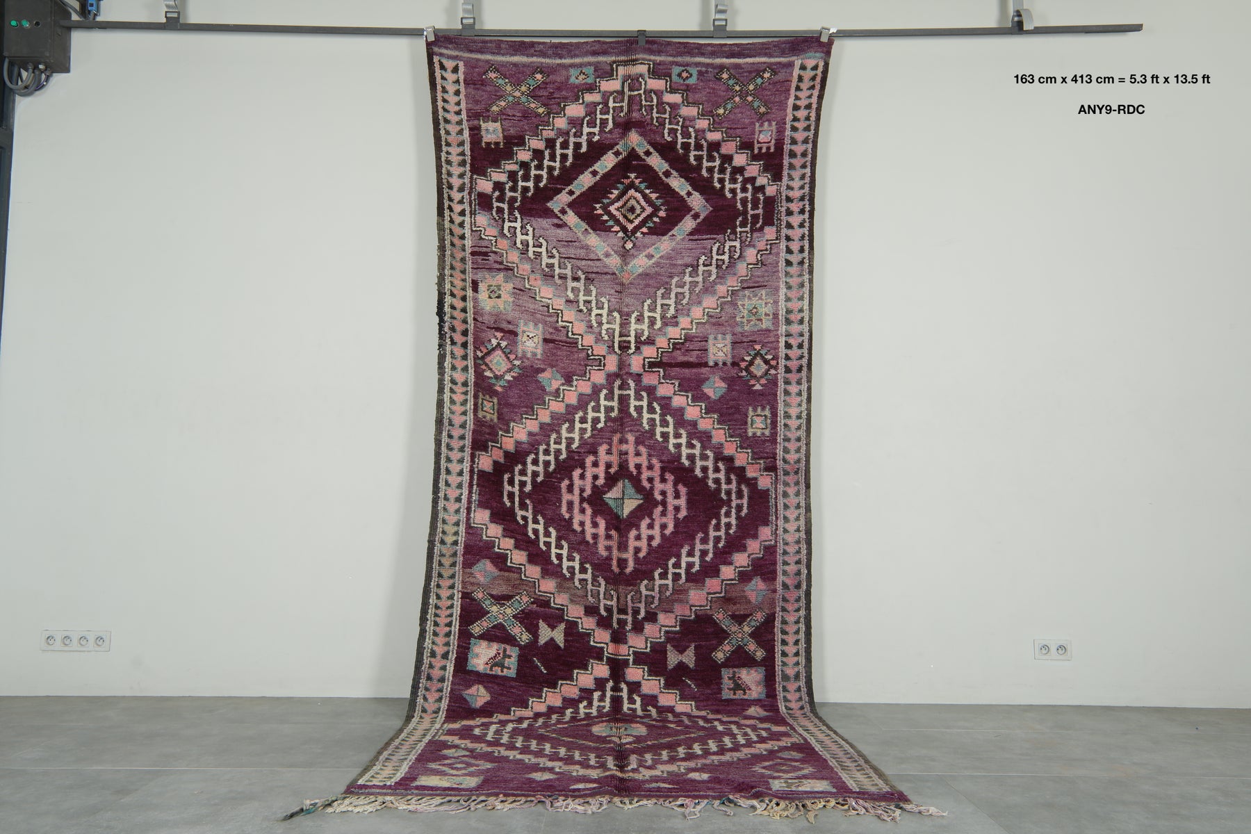 Purple Moroccan azilal rug - 5.3 ft x 13.5 ft - Handwoven runner berber rug