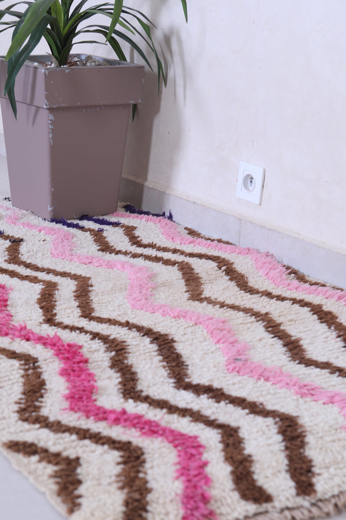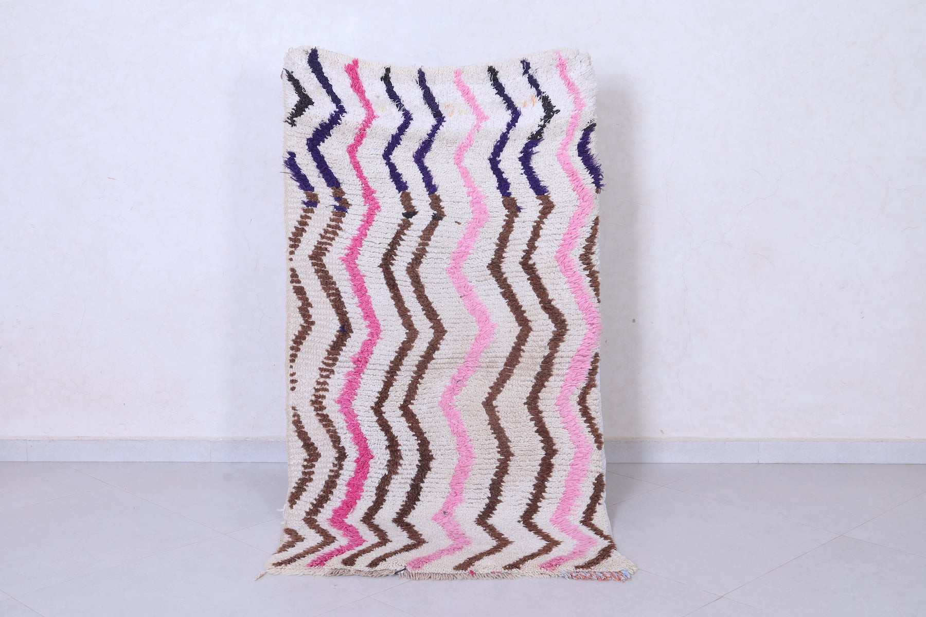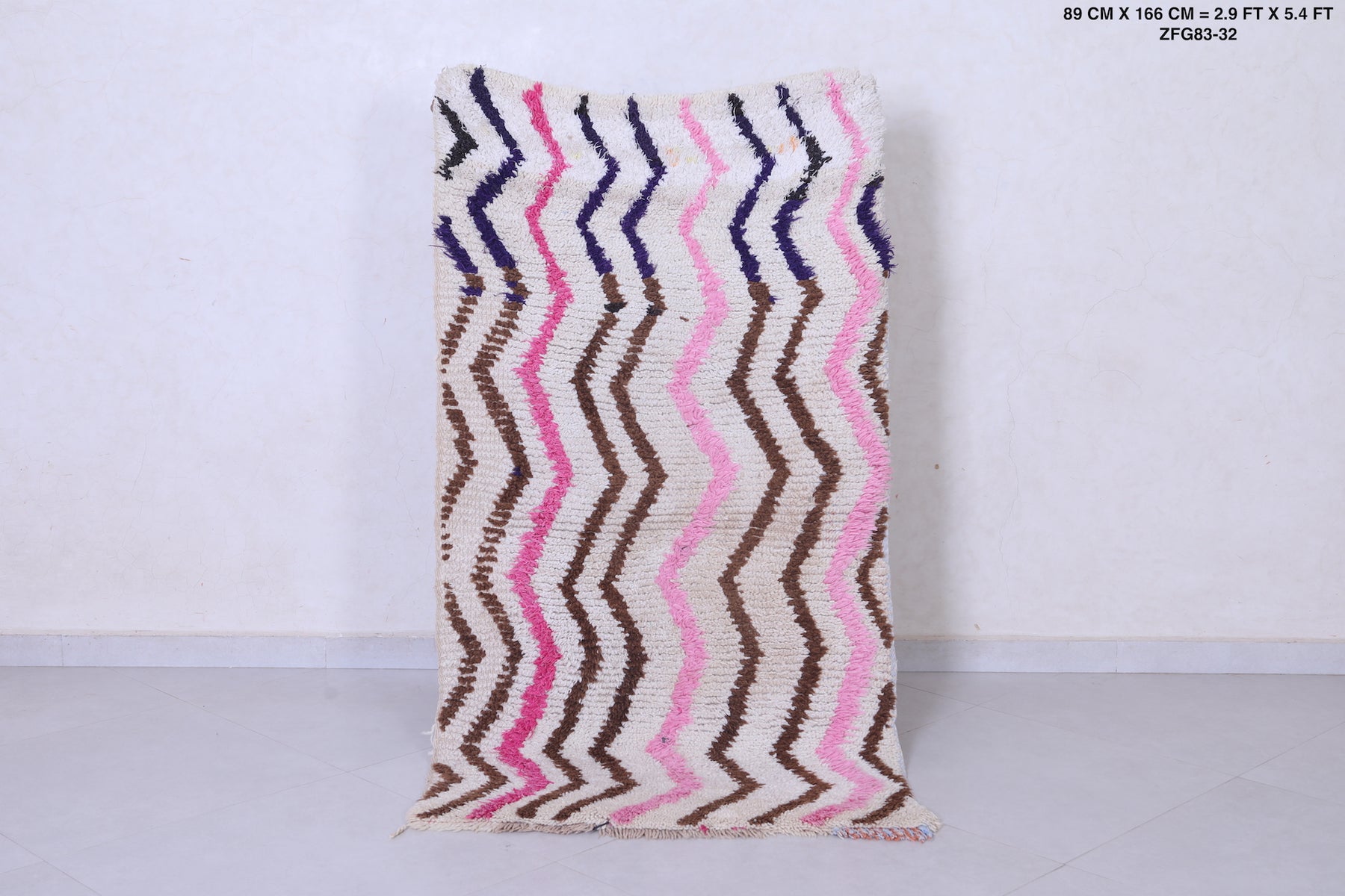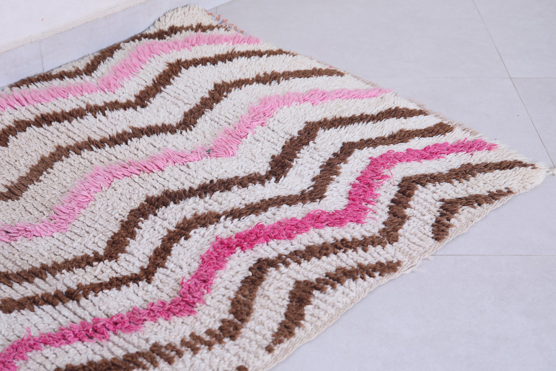 Bring playful movement to your home with this Shaggy Handmade Moroccan Rug (2.9 x 5.4 FT), featuring vibrant wavy stripes for a fun and artistic touch.