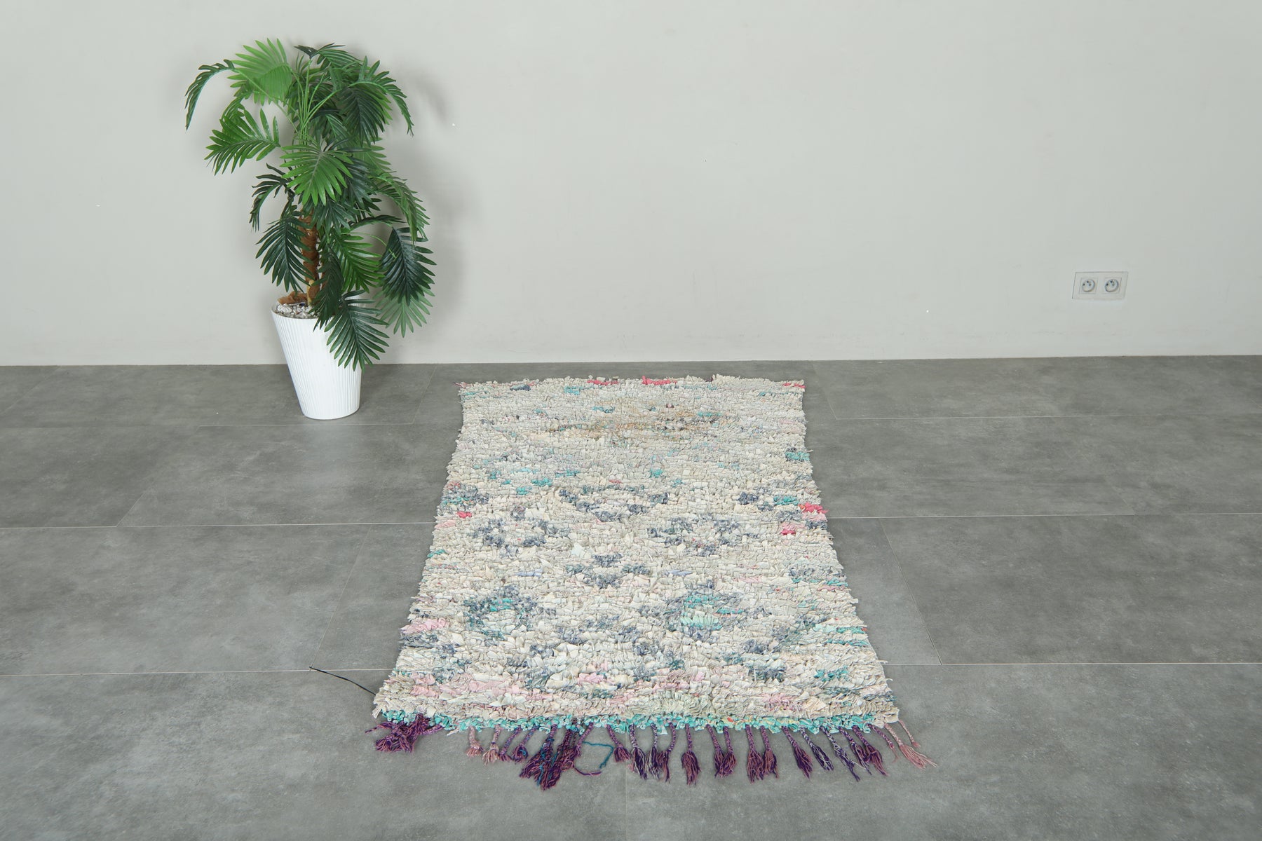 White Moroccan rug - 2.9 ft x 5.5 ft - Handwoven wool rug