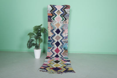 Checkered runne rug 2.4 ft x 8 ft - Handmade