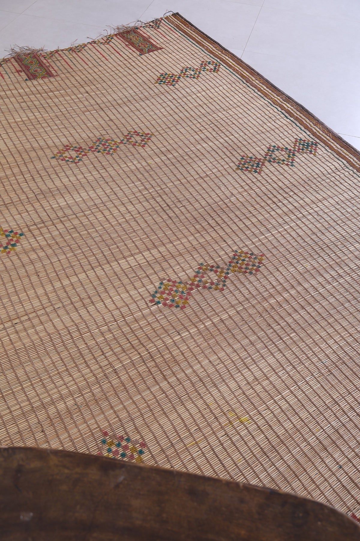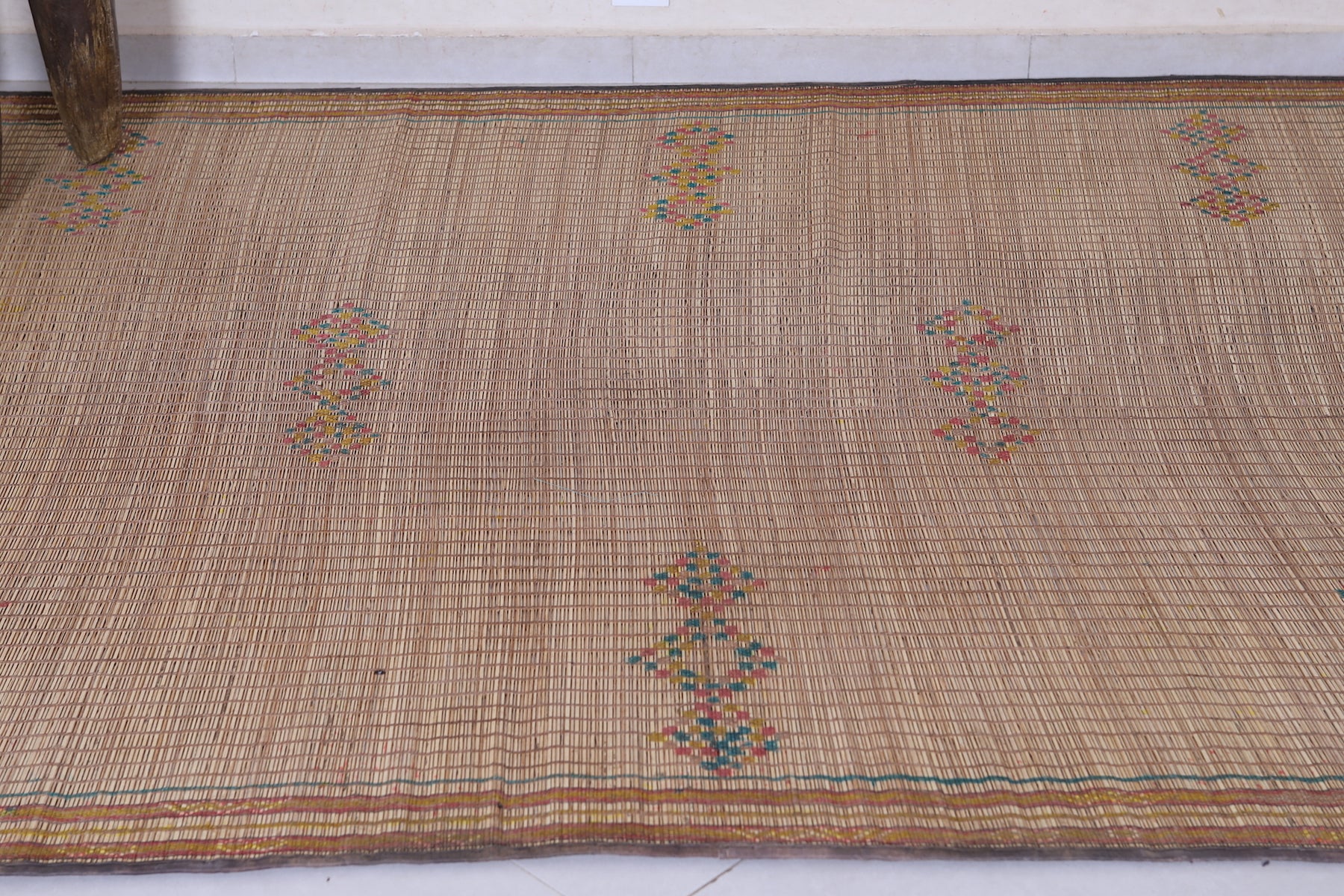 Elevate your space with the authentic beauty of this handcrafted Tuareg Rug. Skillfully woven by artisans using natural reed fibers, this piece blends traditional craftsmanship with timeless style. Its intricate geometric designs and earthy tones add warmth, texture, and cultural character to any room, making it a stunning focal point for your home décor.