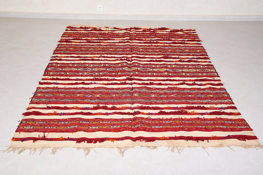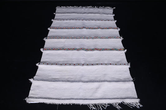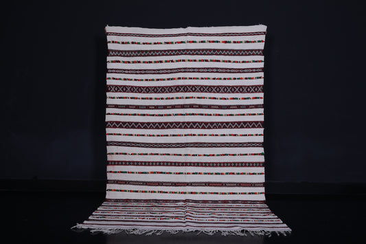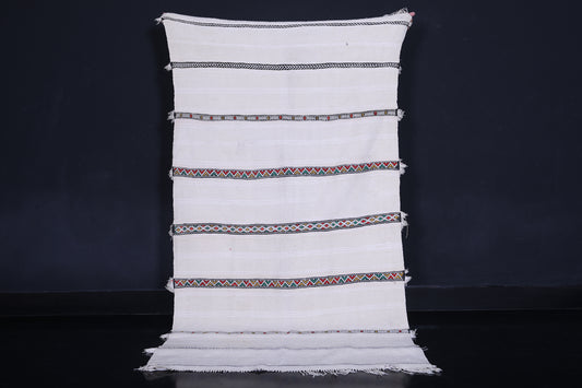 Enjoy this stunningly lovely, tribal, and sublime Moroccan wedding blanket, or handira. Berber wedding blankets were woven with the aid of the bride's female loved ones. After the wedding ceremony, the bride wore the blanket tied round her neck as a cape. A combination of its contrasting darkish stripes combined with the white background makes it suitable for use as mattress throws, couch blankets, rugs or wall art