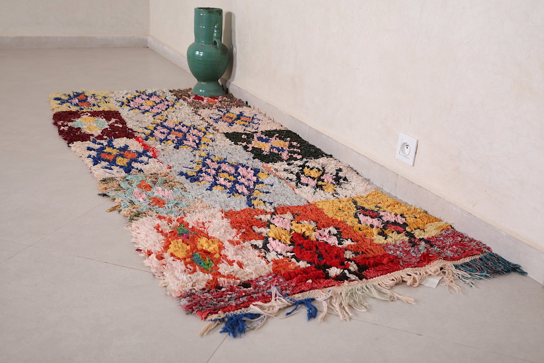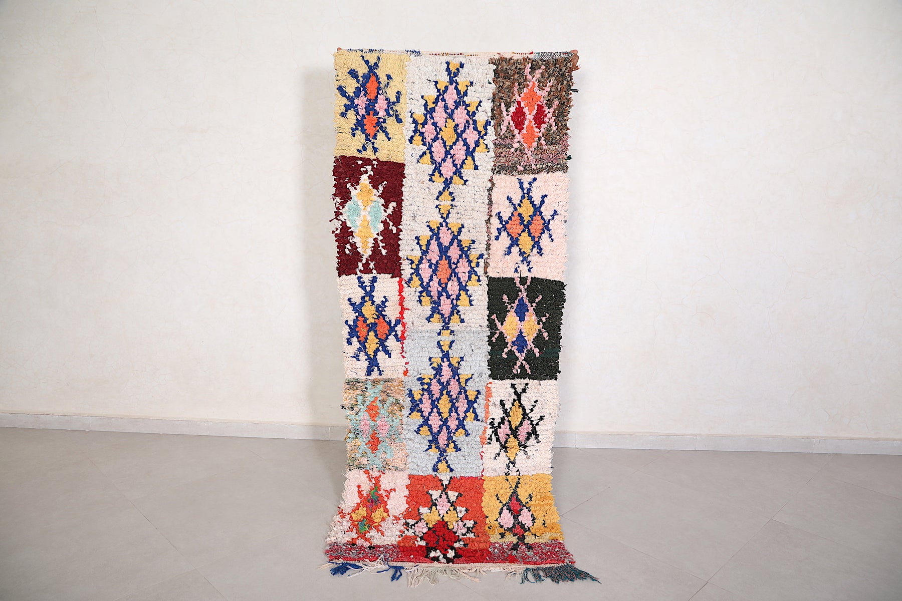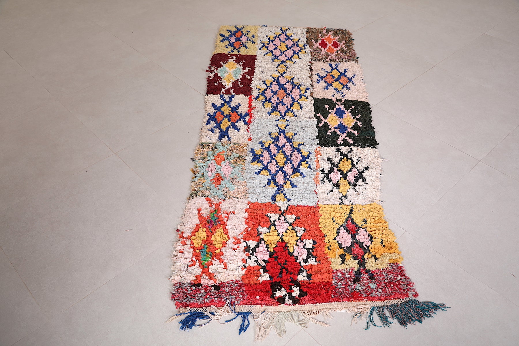 Colorful Patchwork Moroccan Rug 2.6 x 6.7 FT - Unique Handwoven Design