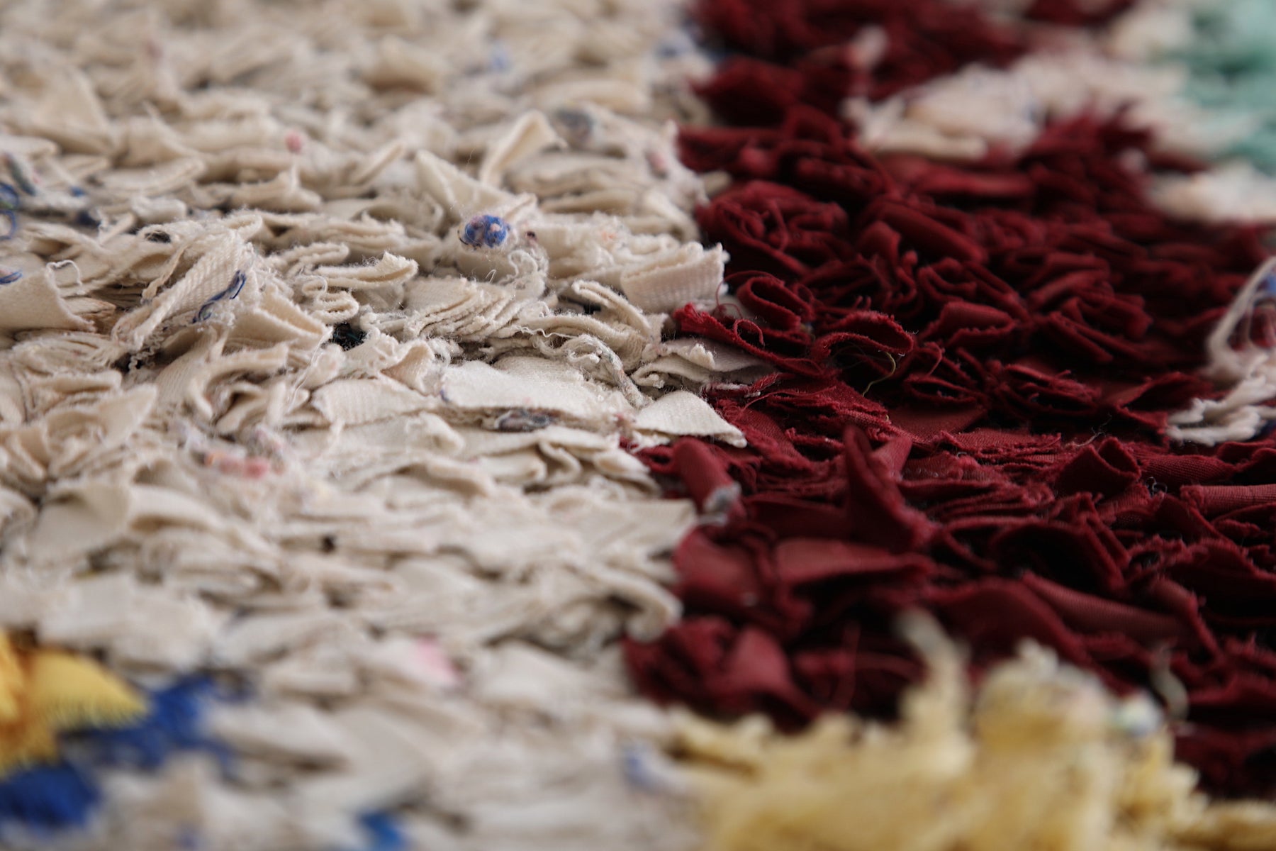 • Handwoven from premium wool and recycled textiles for a rich texture.