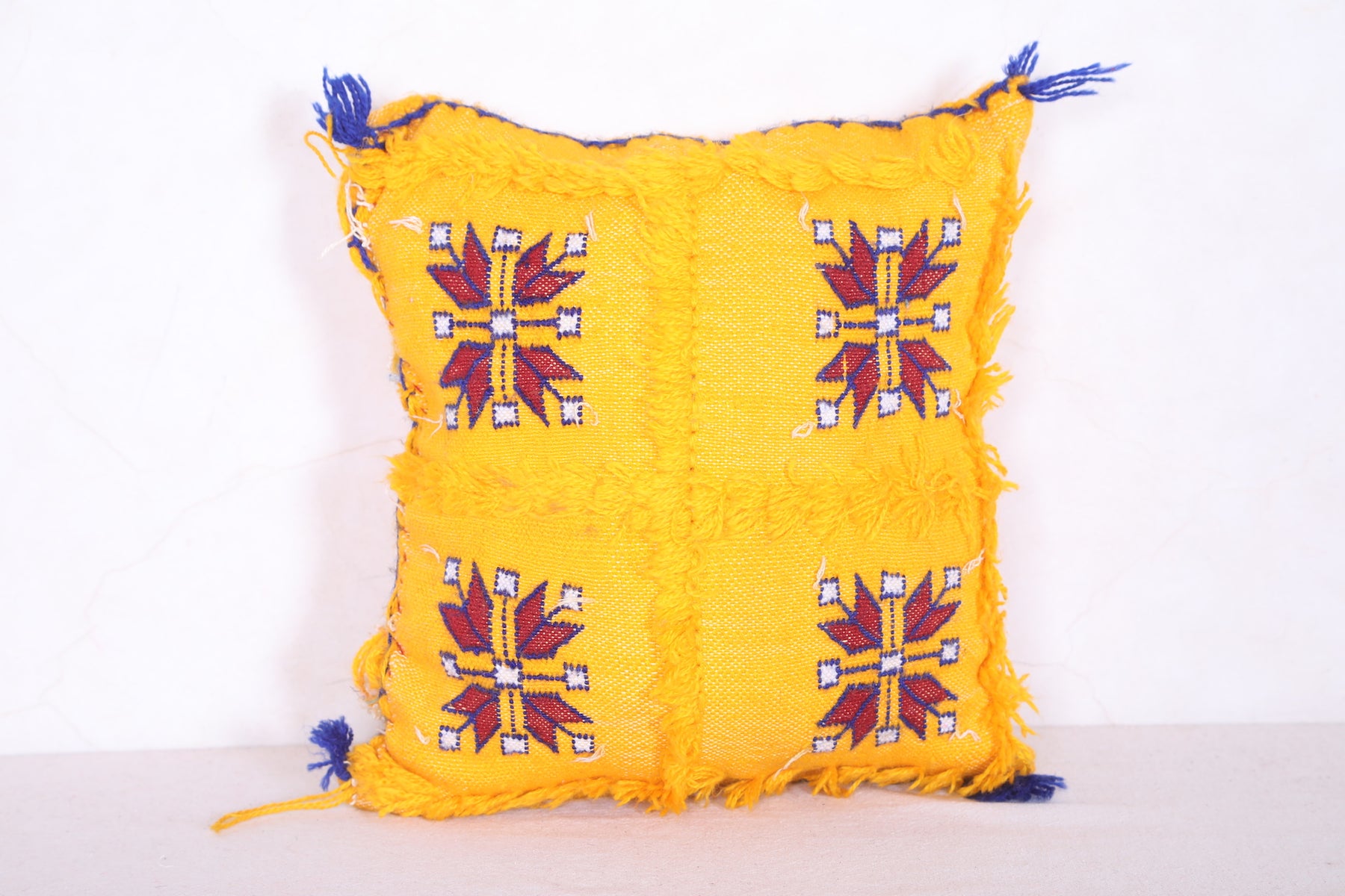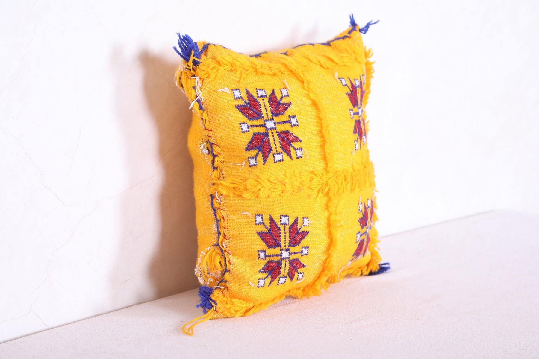 A Moroccan handmade kilim pillow of this size can be used as a decorative accent on sofas, chairs, beds, or any seating area. It adds a touch of cultural authenticity and visual interest to your home decor, showcasing the craftsmanship and heritage of Moroccan textiles.