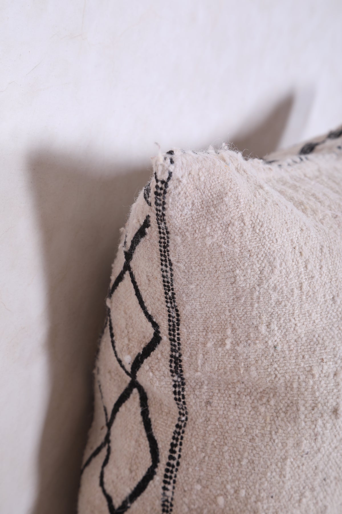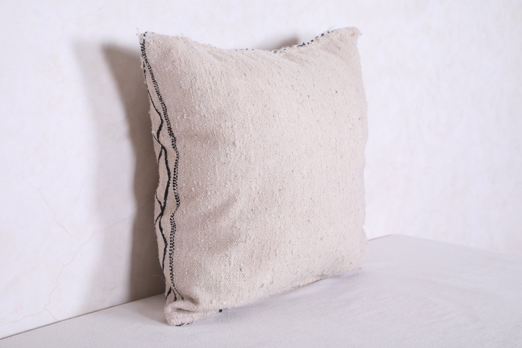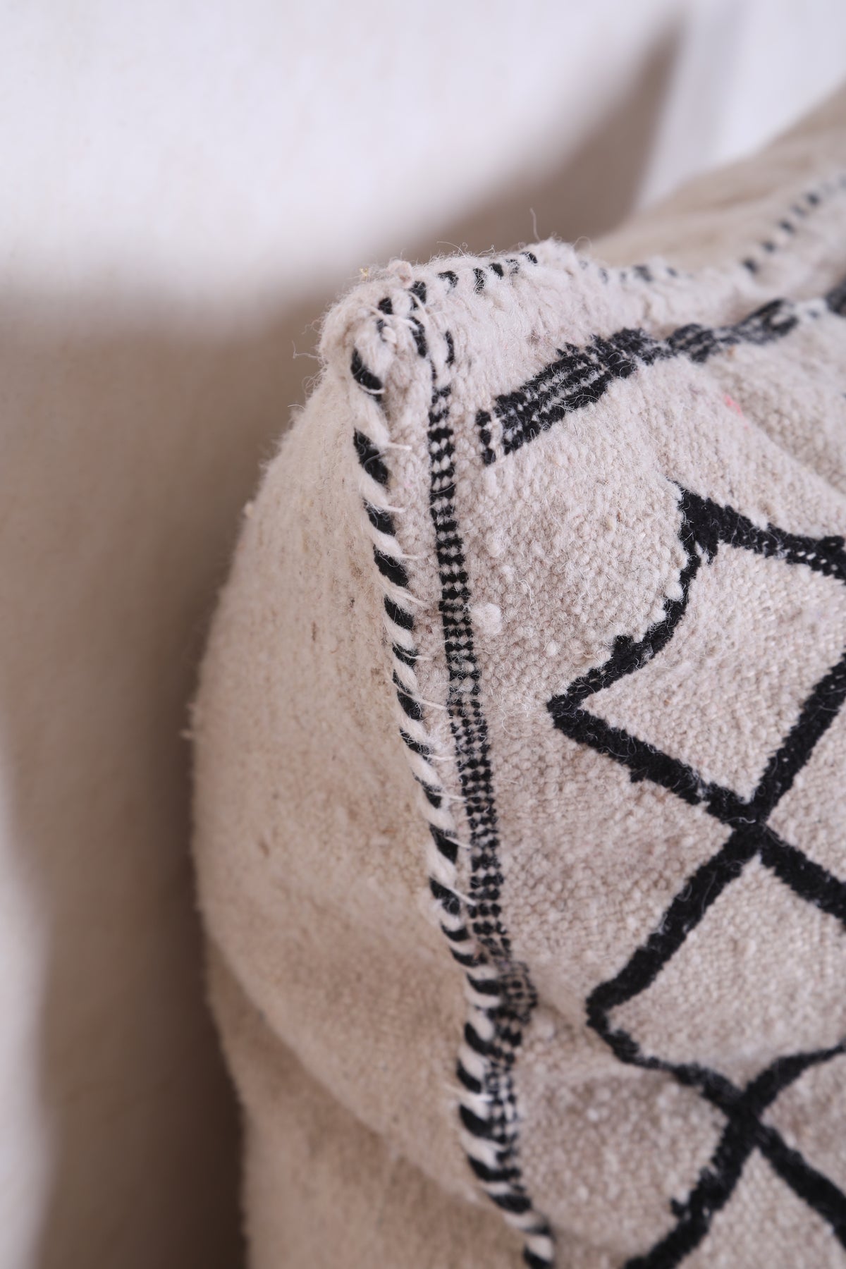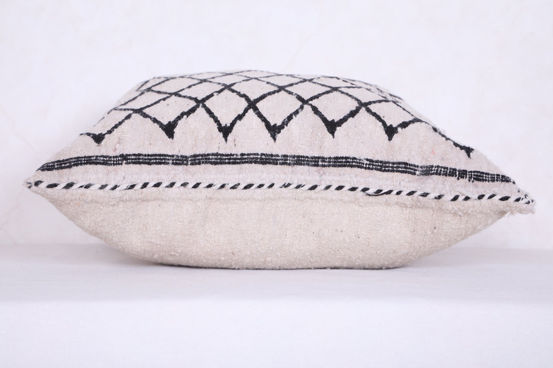 This 20 inch by 20.4 inch Moroccan kilim pillow cover is handmade with quality materials. Its intricate, symmetrical pattern is crafted with wool, making it a durable and stylish piece to add to your home décor.