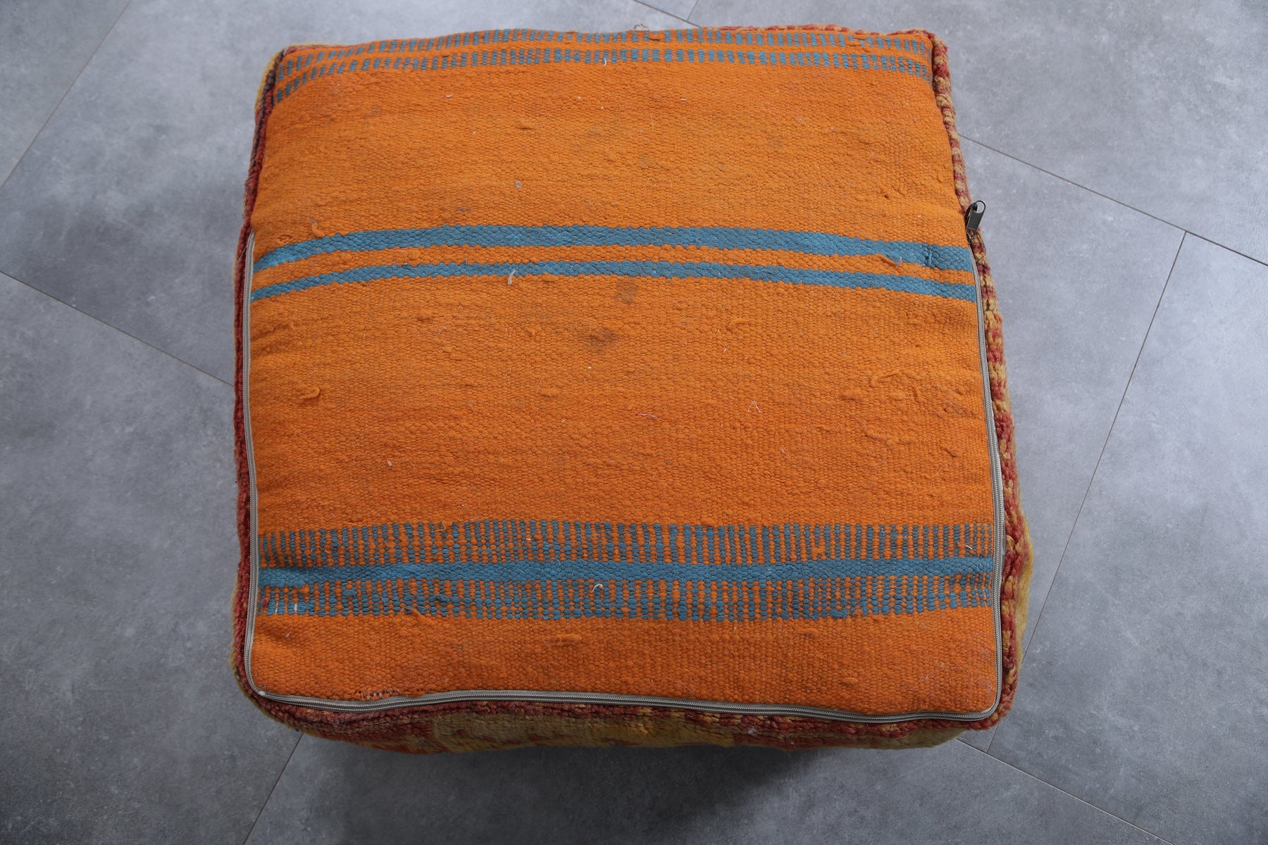 Bring authentic Moroccan style into your home with this vintage ottoman pouf, handwoven with bold tribal patterns. The pouf features intricate geometric motifs, including diamonds and zigzags, in earthy tones of red, cream, and black. Perfect for extra seating, a footrest, or as a decorative accent, this pouf adds texture, warmth, and a touch of cultural elegance to any room. Its versatile design complements modern, bohemian, and eclectic interiors, offering both function and style.