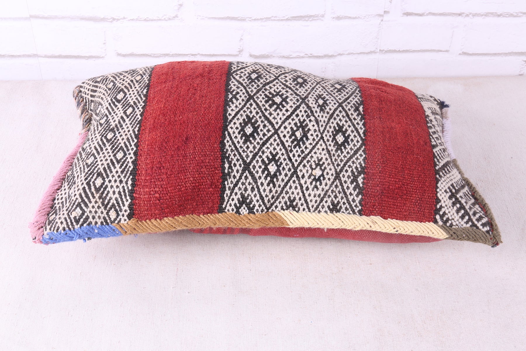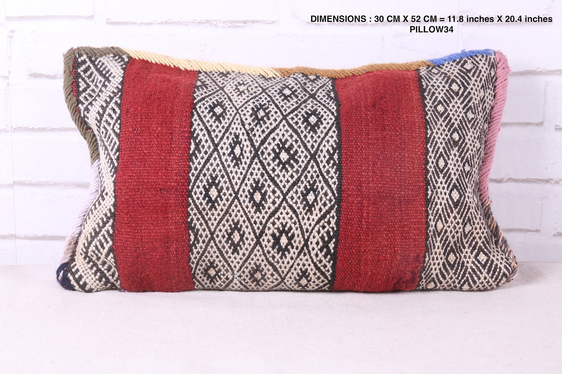 Experience the comfort and charm of Morocco with our handcrafted stuffed pillow. Measuring 11.8 x 20.4 inches, it features a vintage design and is filled with soft, high-quality materials for the ultimate relaxation. Add a touch of luxury to your home decor with our handmade Morocco pillow.