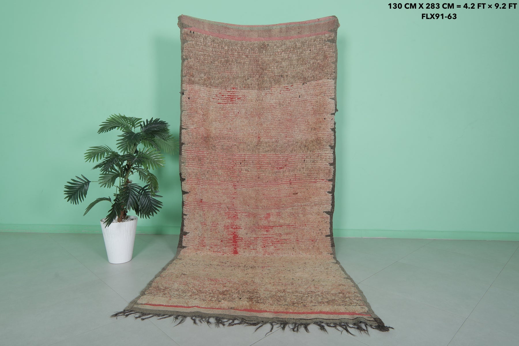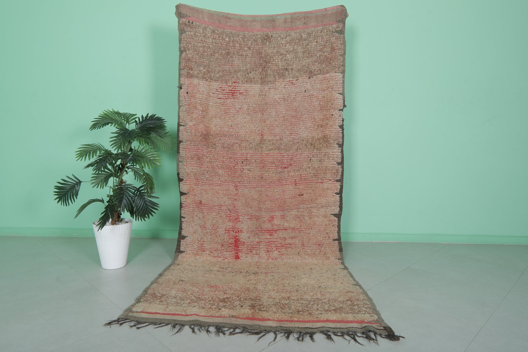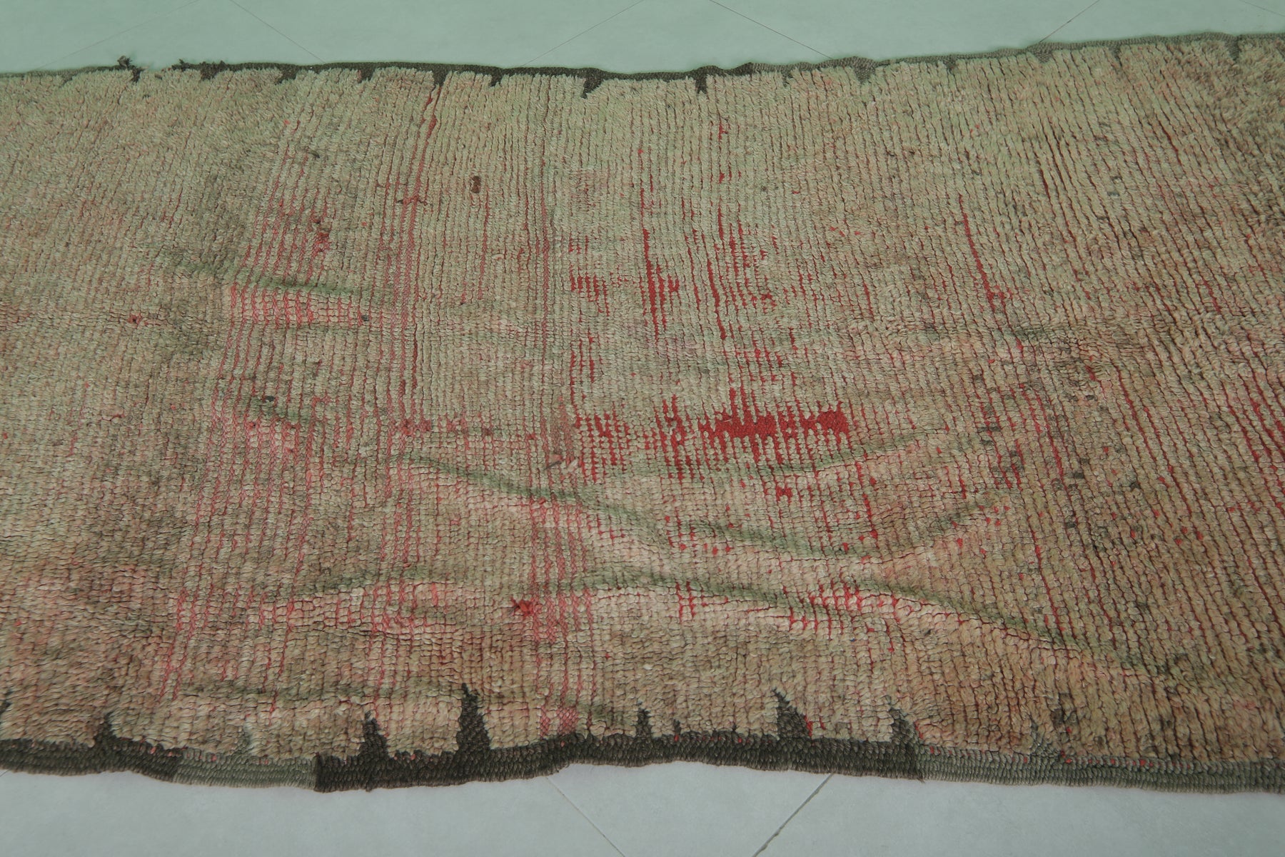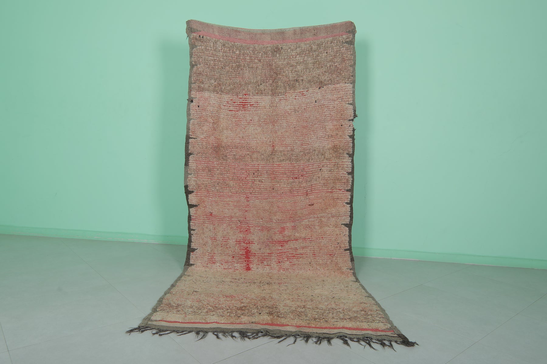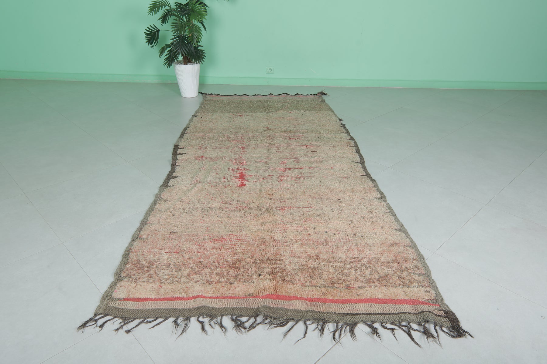 Add character to your home with this vintage-inspired Moroccan Berber rug, featuring warm earthy tones and subtle red accents. Measuring 4.2 x 9.2 ft, this handwoven masterpiece blends timeless tradition with rustic charm, making it ideal for larger living areas or dining spaces.