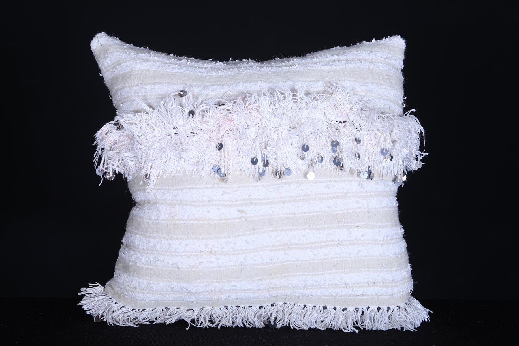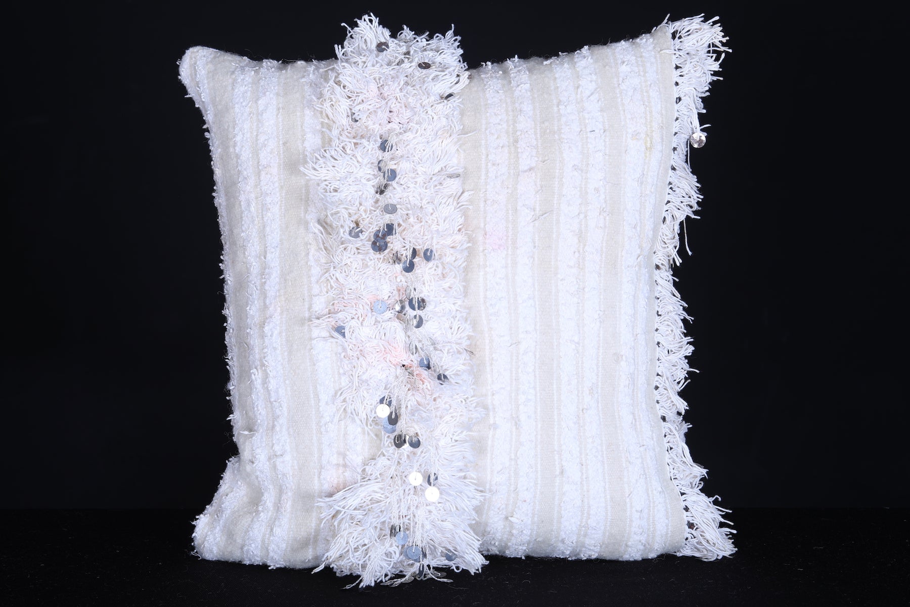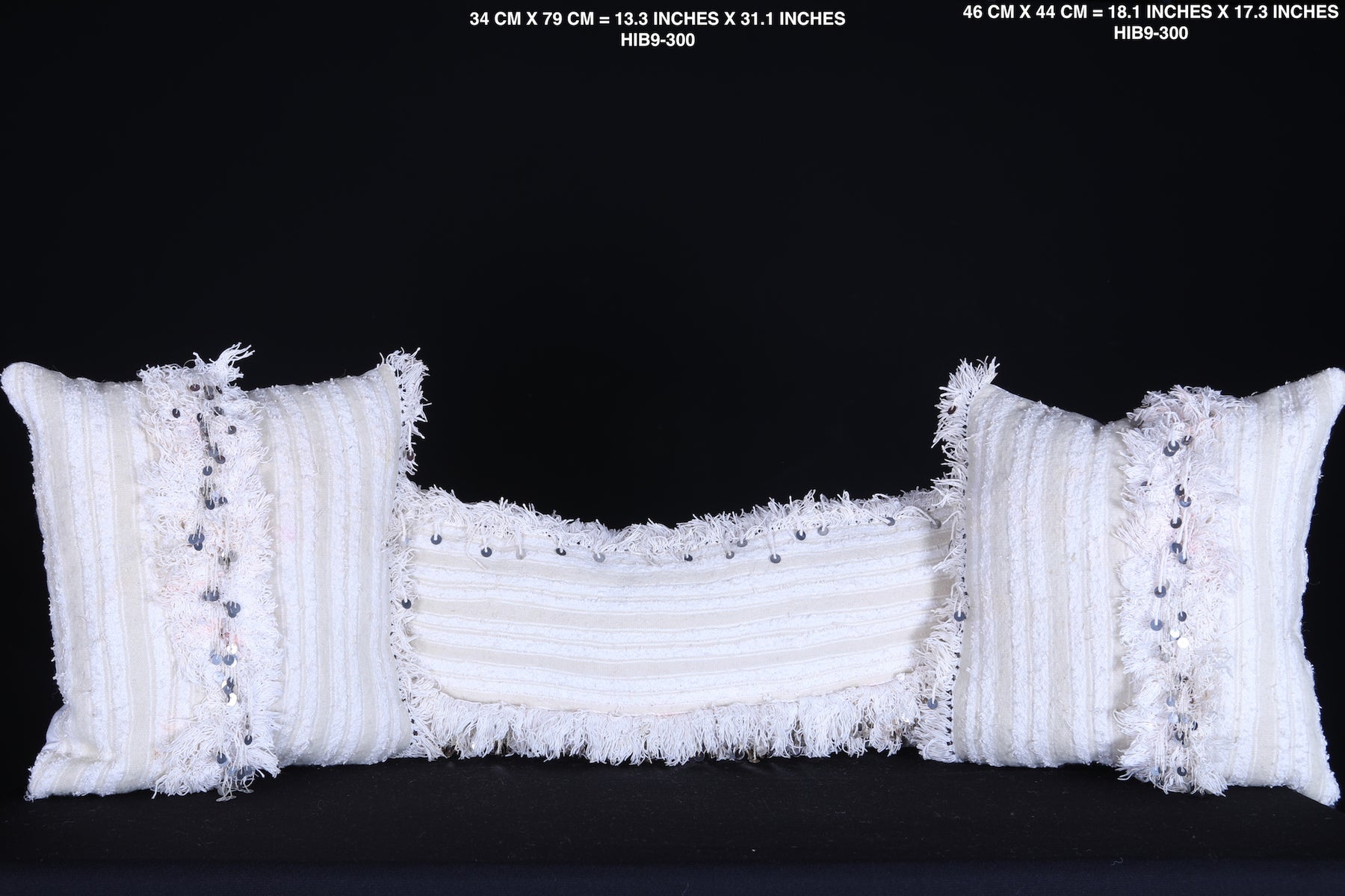 These Vintage Moroccan Berber handwoven kilim pillows are 18.1 inches by 17.3 inches in size and feature detailed handwoven designs that bring unique style and culture to your home decor. The material is tightly woven, ensuring a long-lasting, durable product.