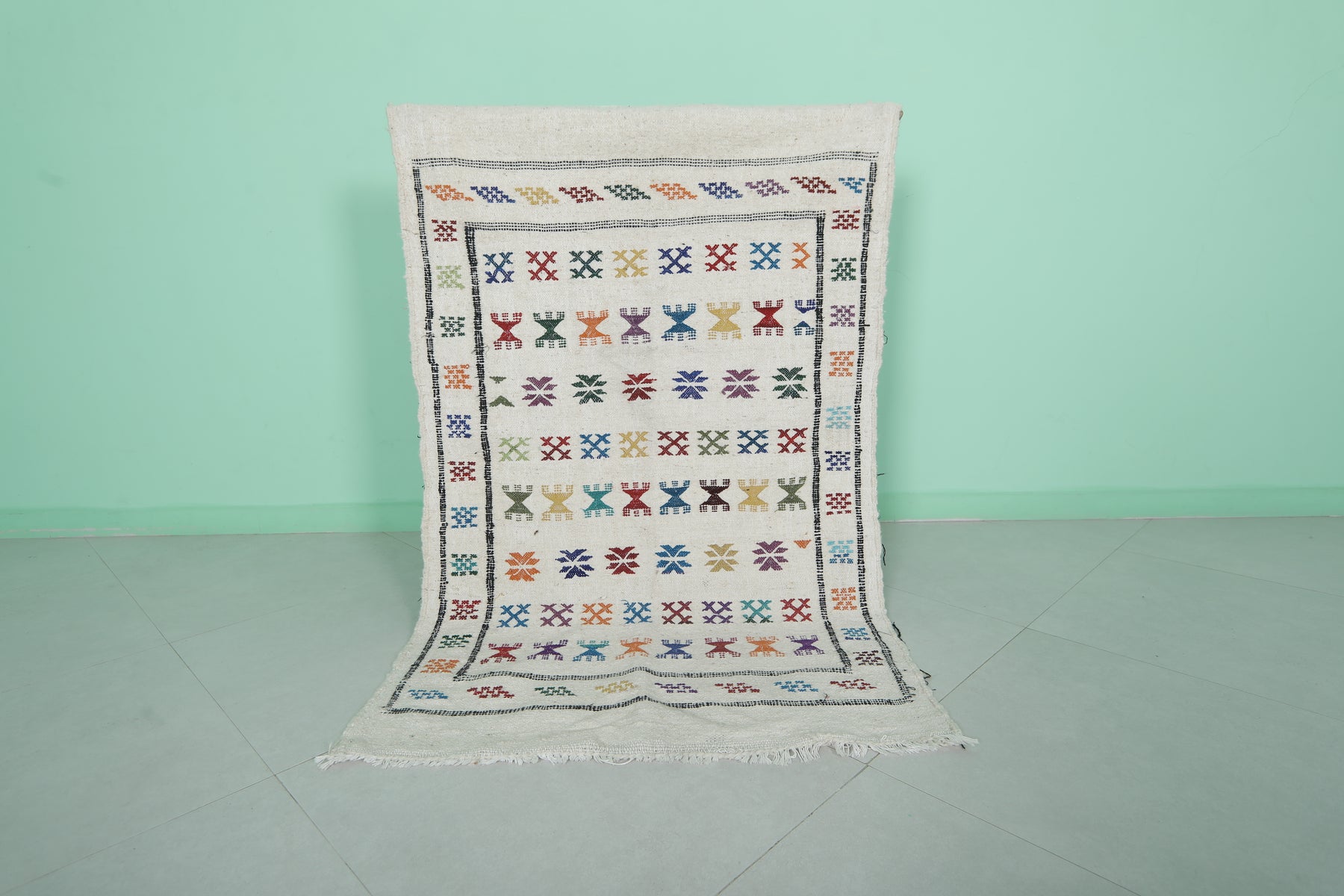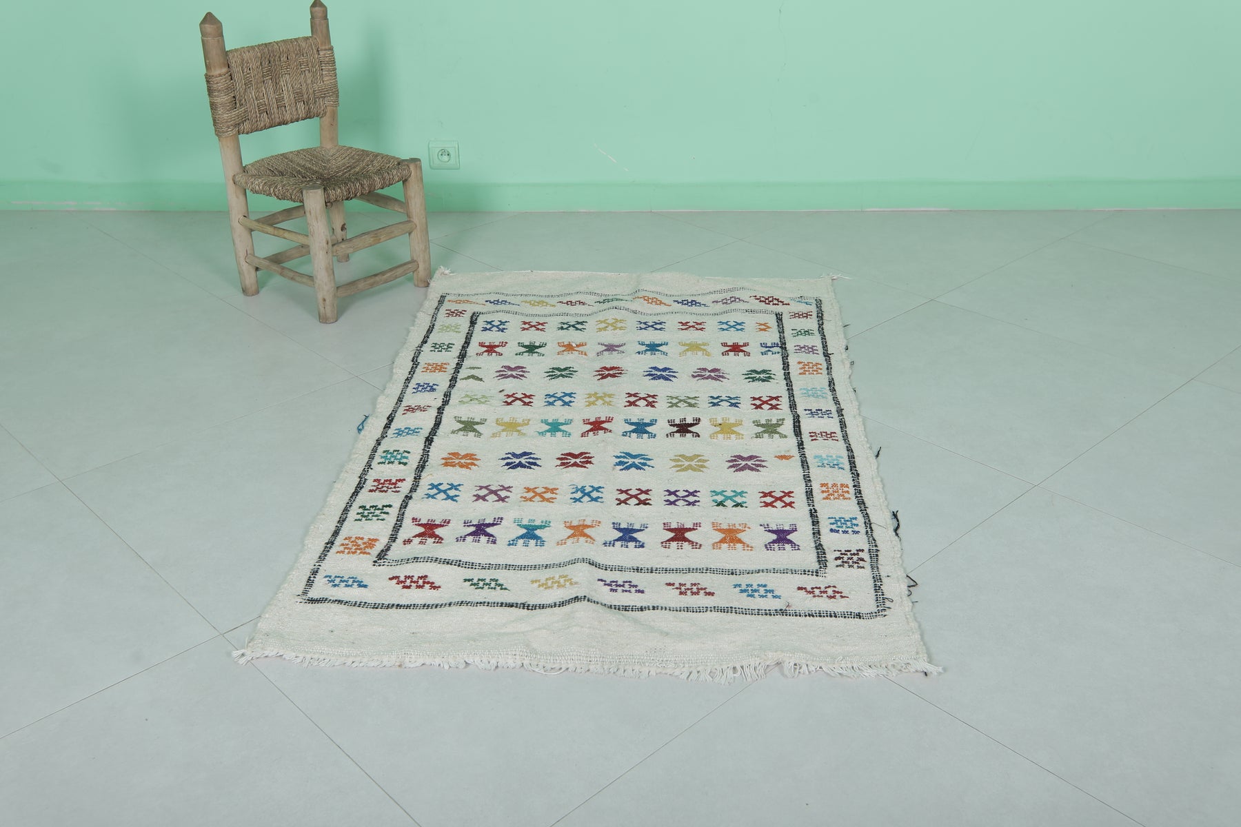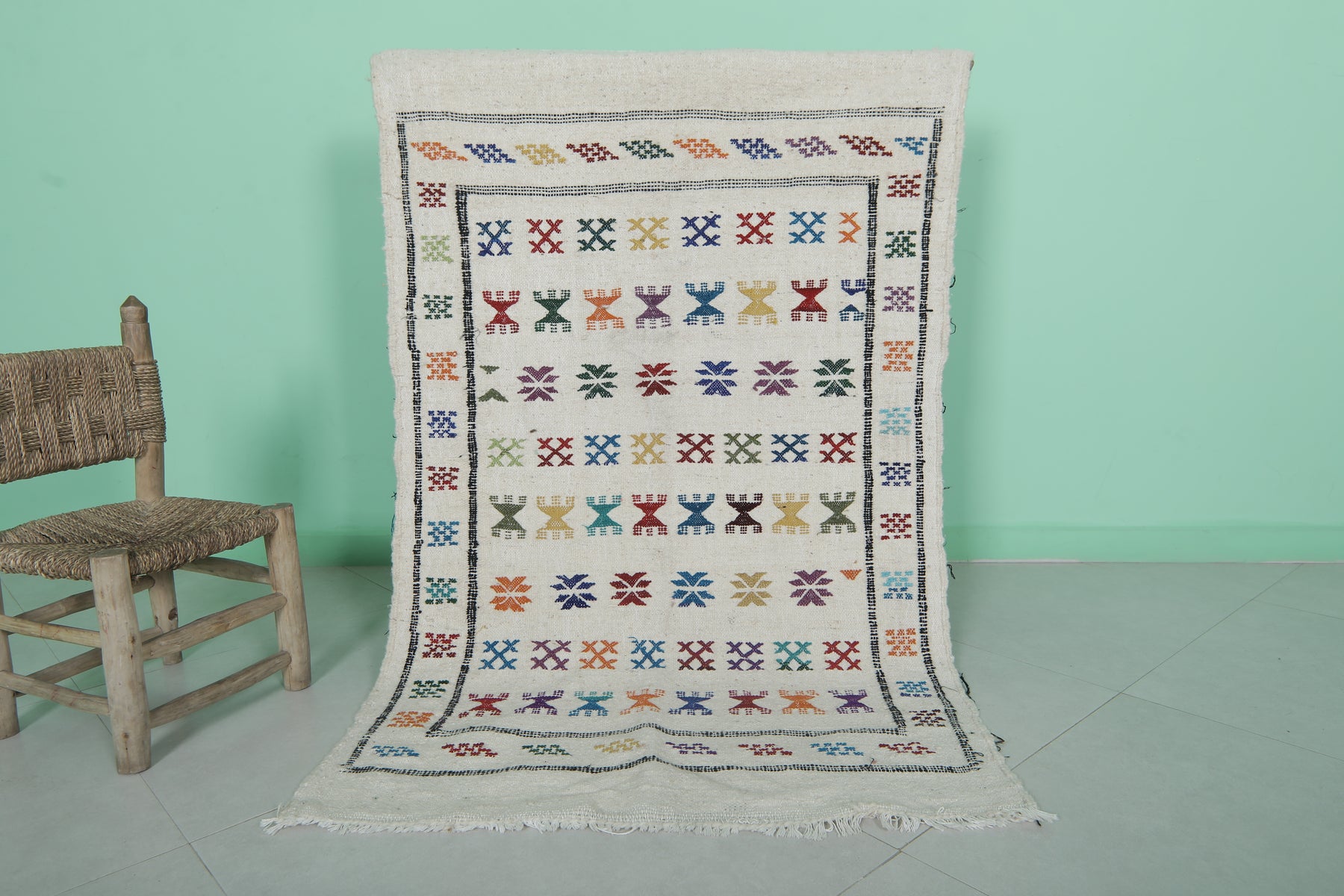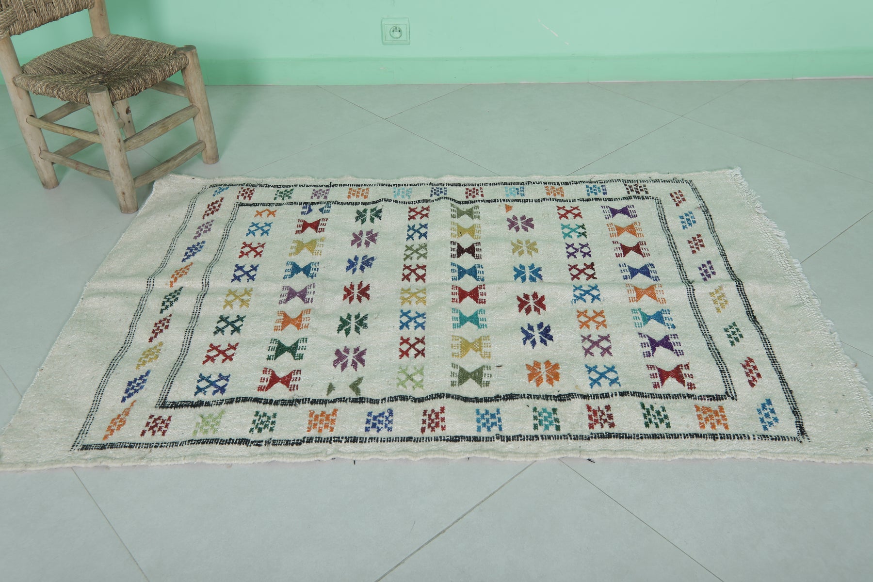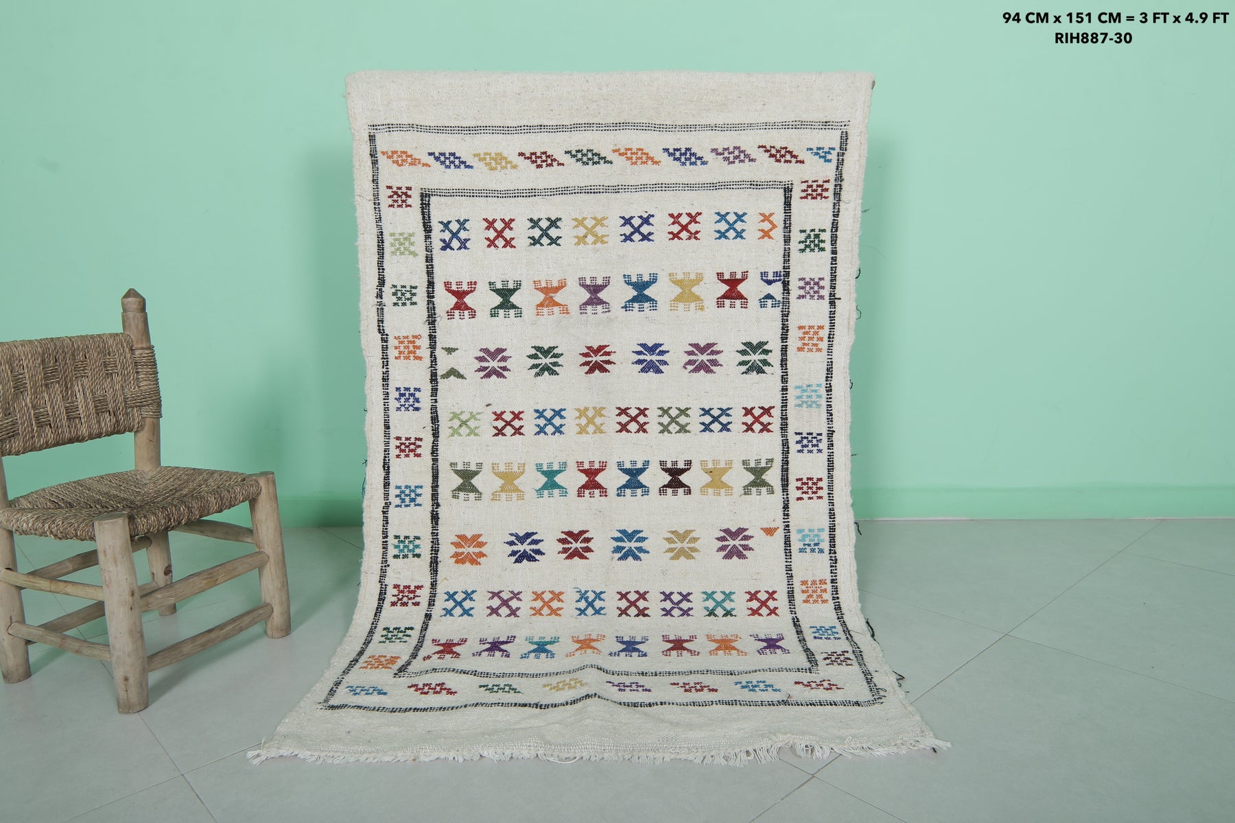 Vintage Moroccan Berber Kilim Rug 3 FT X 4.9 FT - Handwoven Heritage