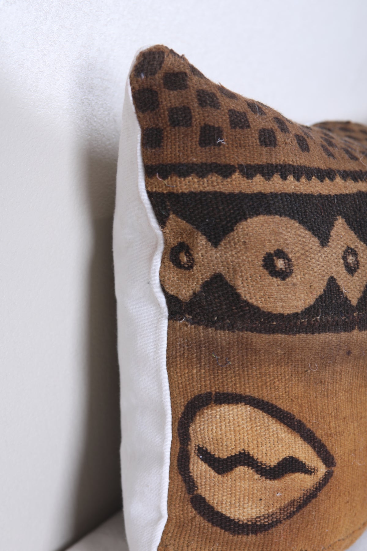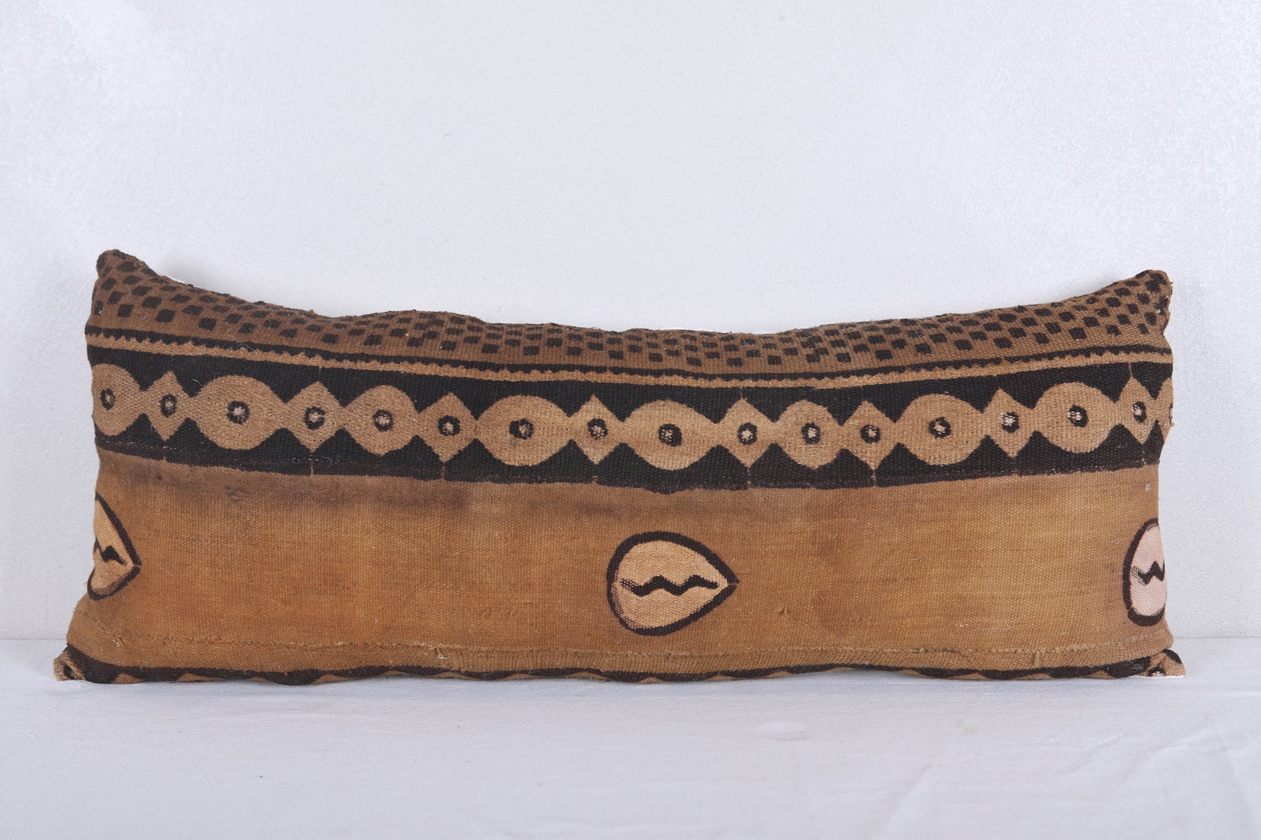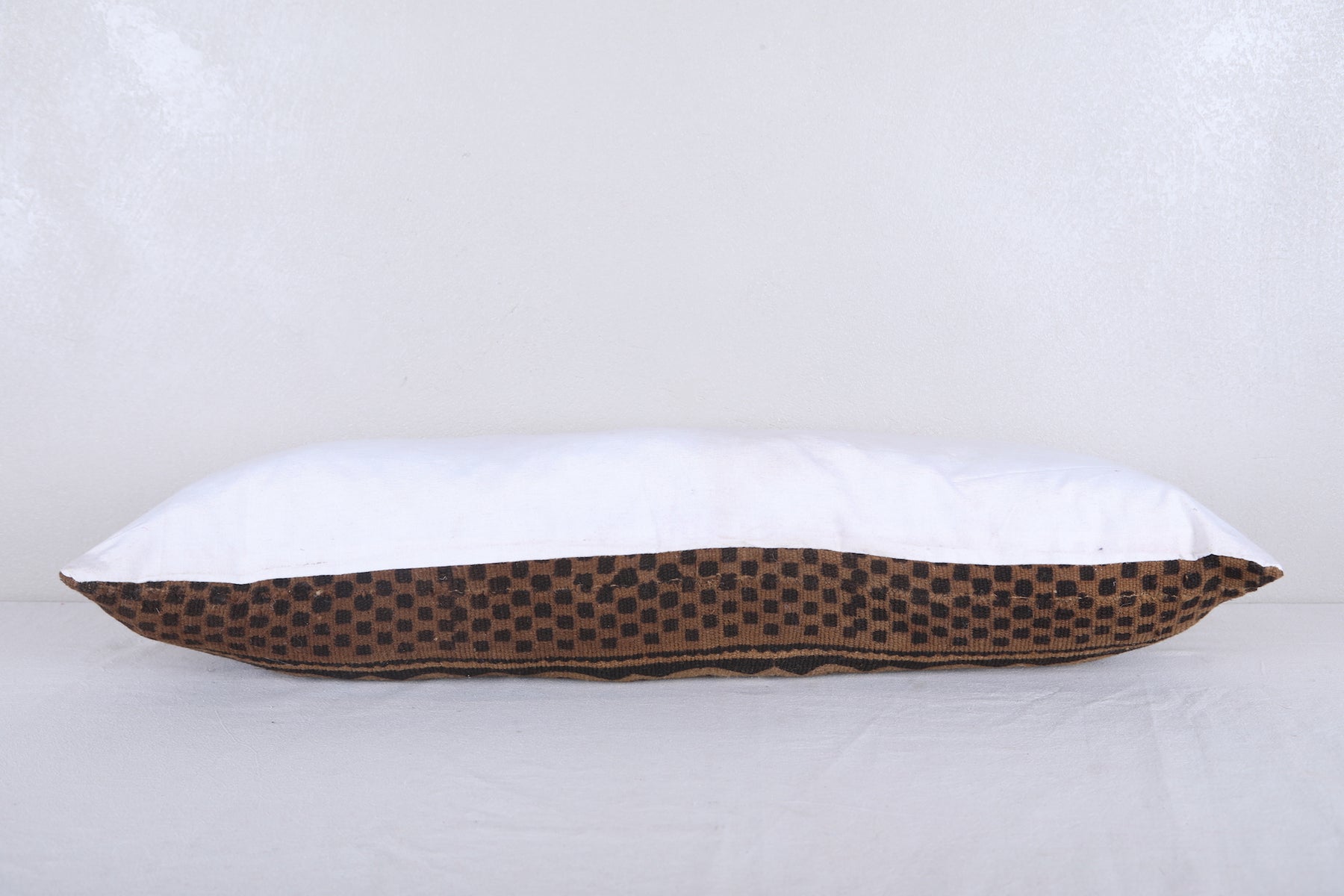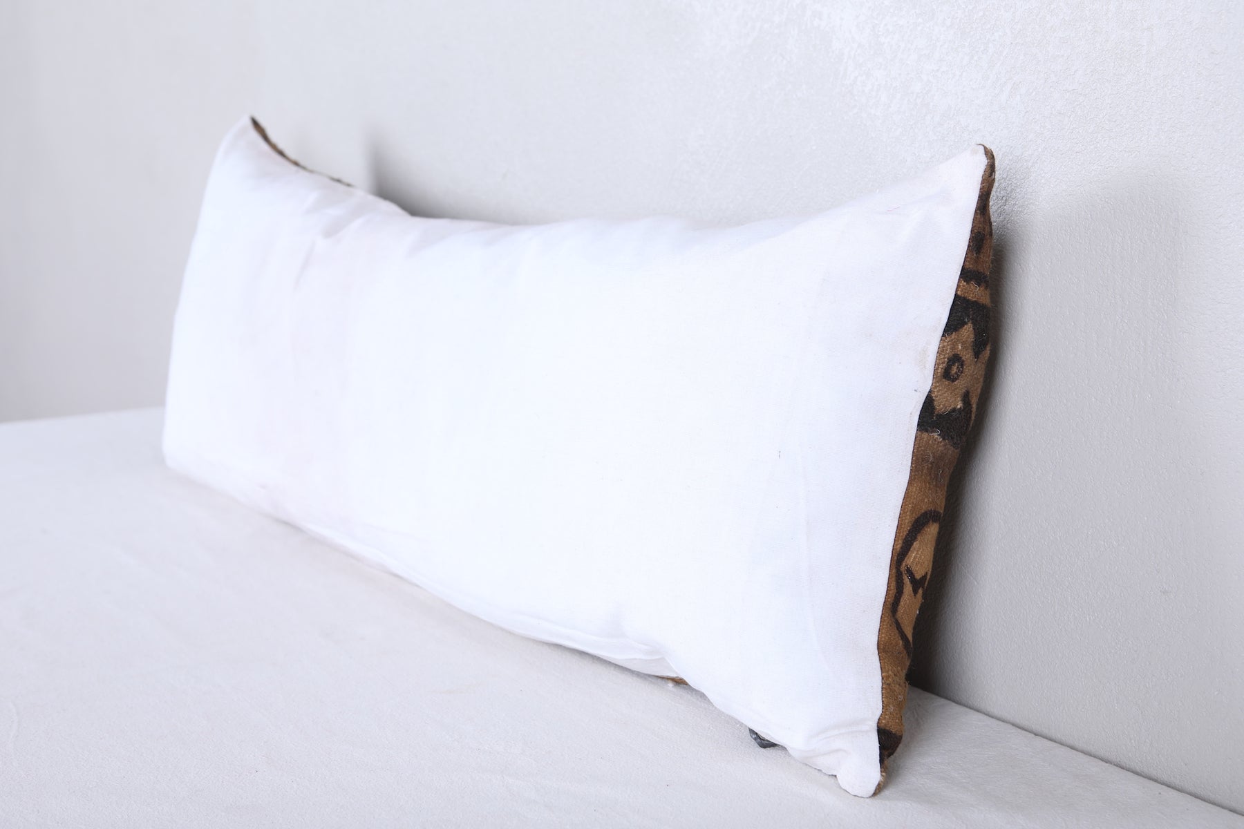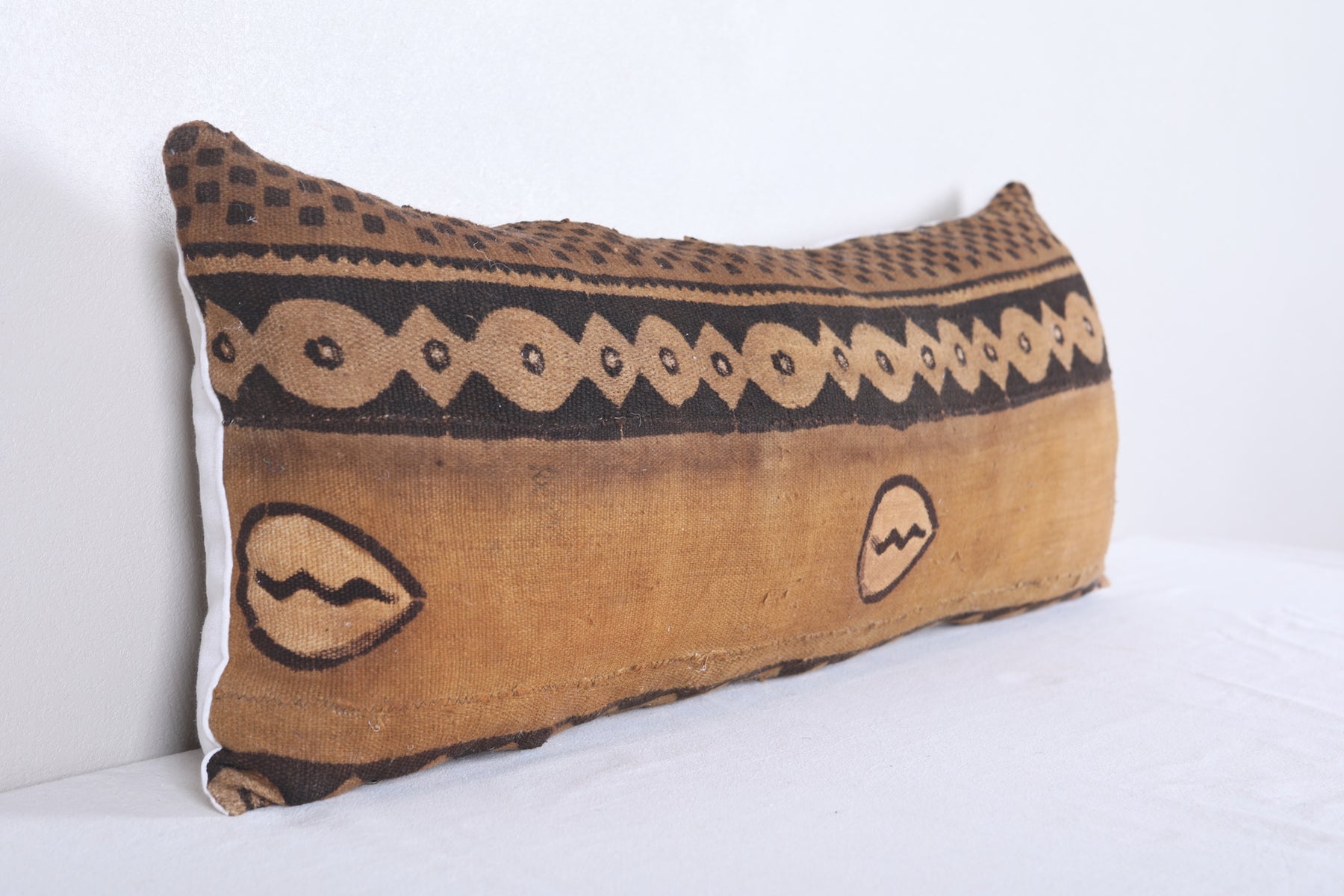 This vintage moroccan kilim pillow measures 13.7 inches by 33.8 inches and is handwoven with wool and cotton by skilled craftsmen. Its intricate patterns emphasize the beauty of traditional tannery craftsmanship, providing texture and unique character to your space. Enjoy the timeless artistry of moroccan kilim for your home décor.