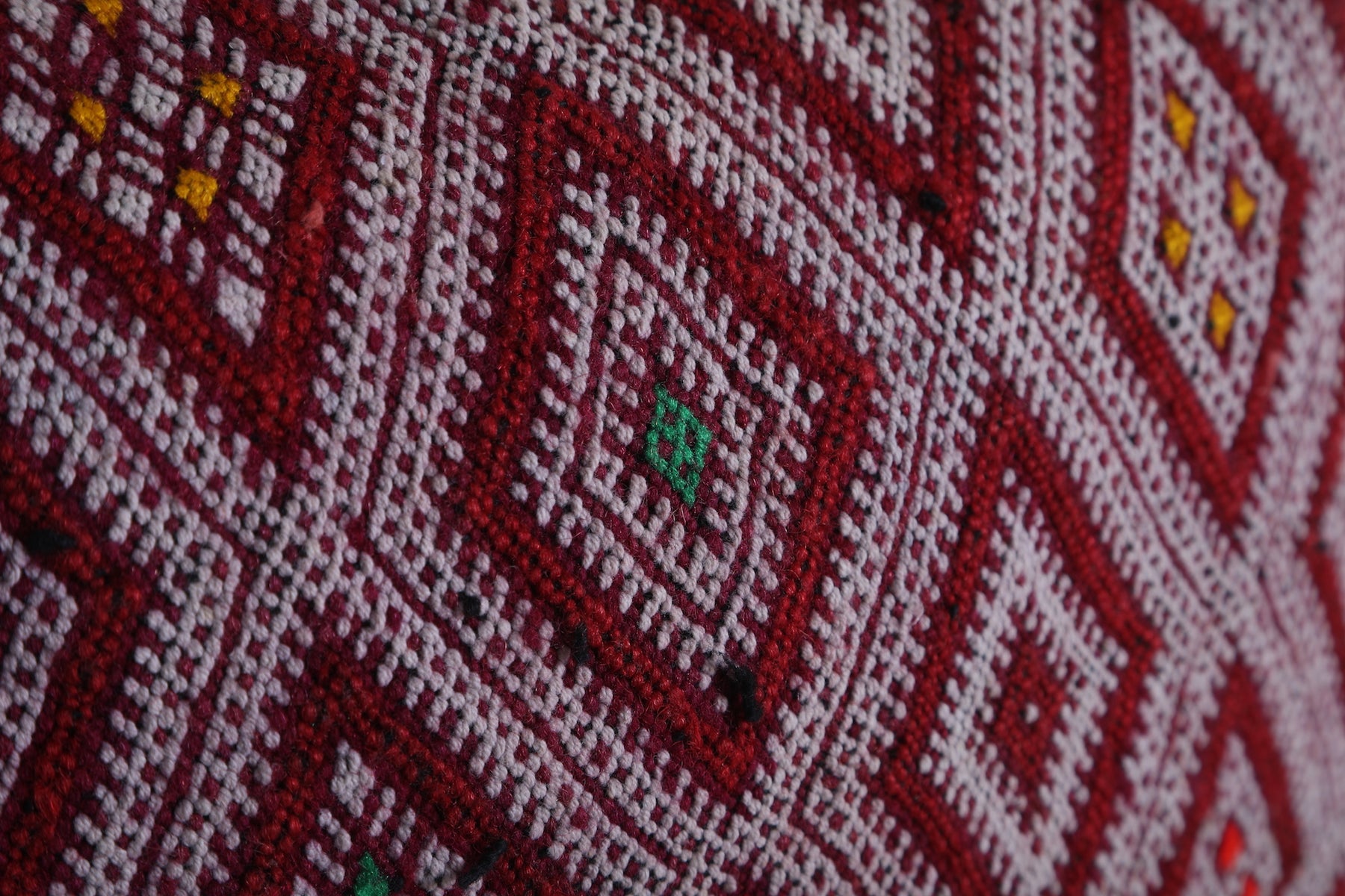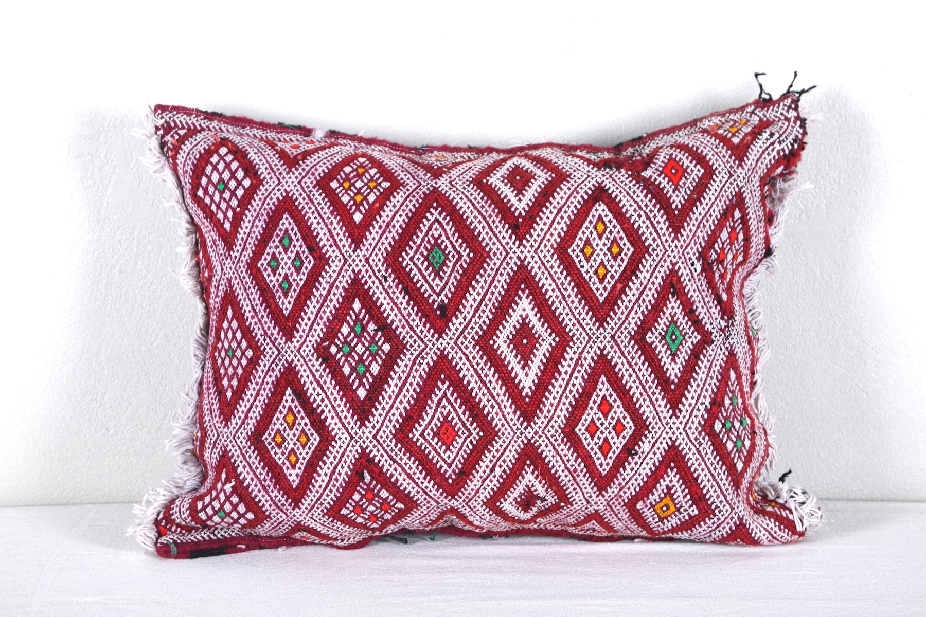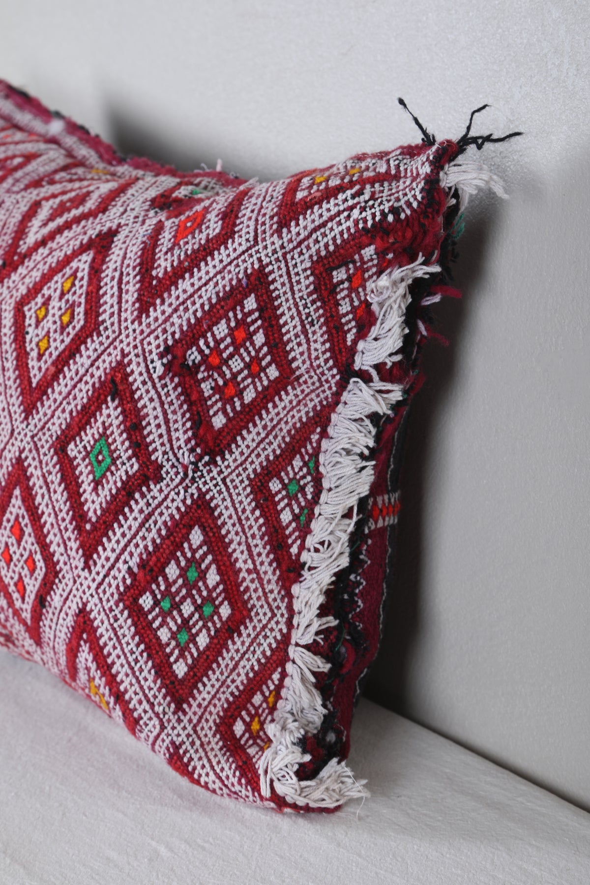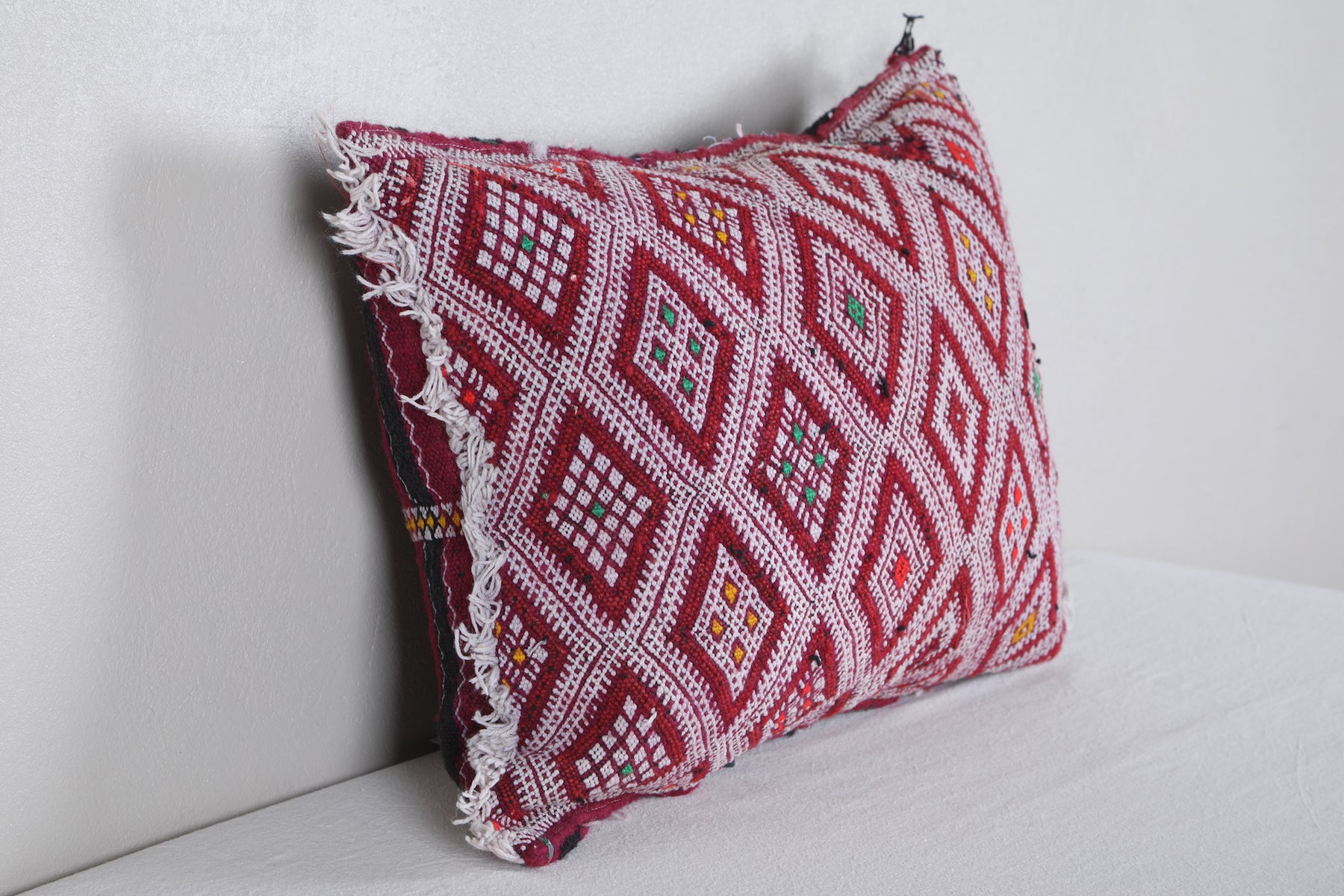 Add a bold touch of Moroccan craftsmanship to your home with this handwoven Moroccan Pillow, sized at 17.3 x 22 inches (44 CM x 56 CM). Featuring intricate red and white geometric patterns, this unique pillow blends traditional Berber artistry with timeless elegance. Perfect for layering on your sofa, bed, or favorite lounge chair, it adds authentic global charm to any space.