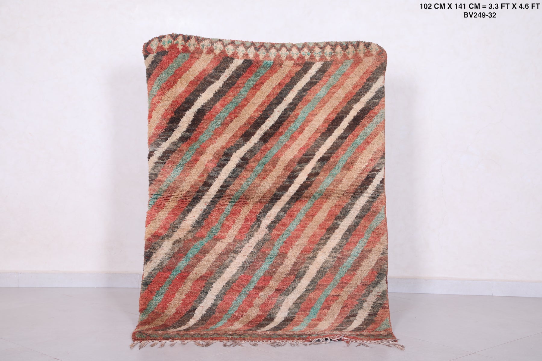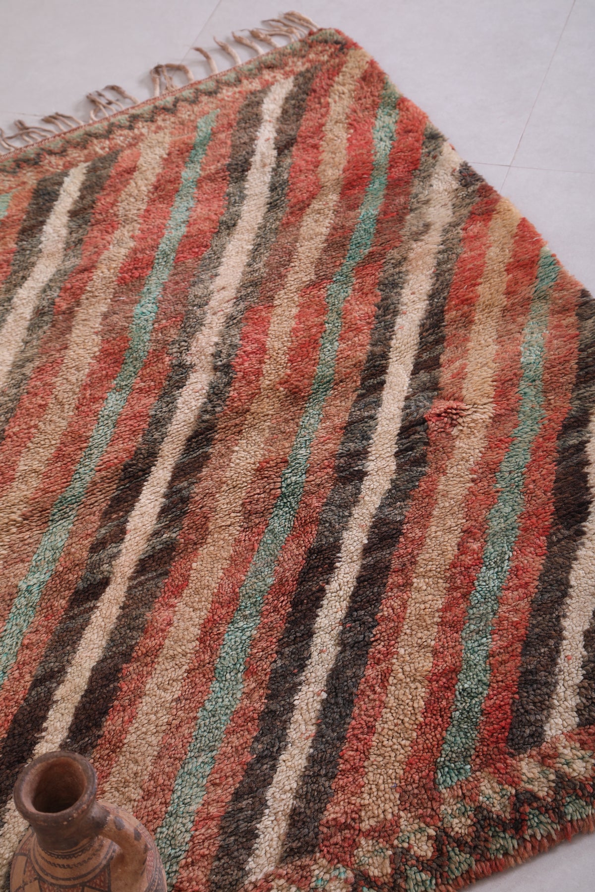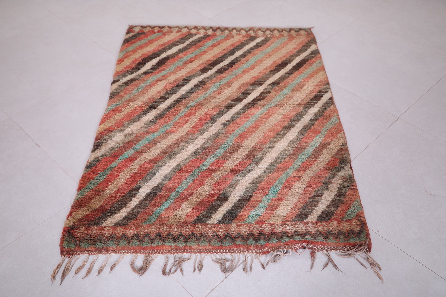 Vintage Moroccan Rug 3.3 x 4.6 ft | Diagonal Striped Design - moroccan rug