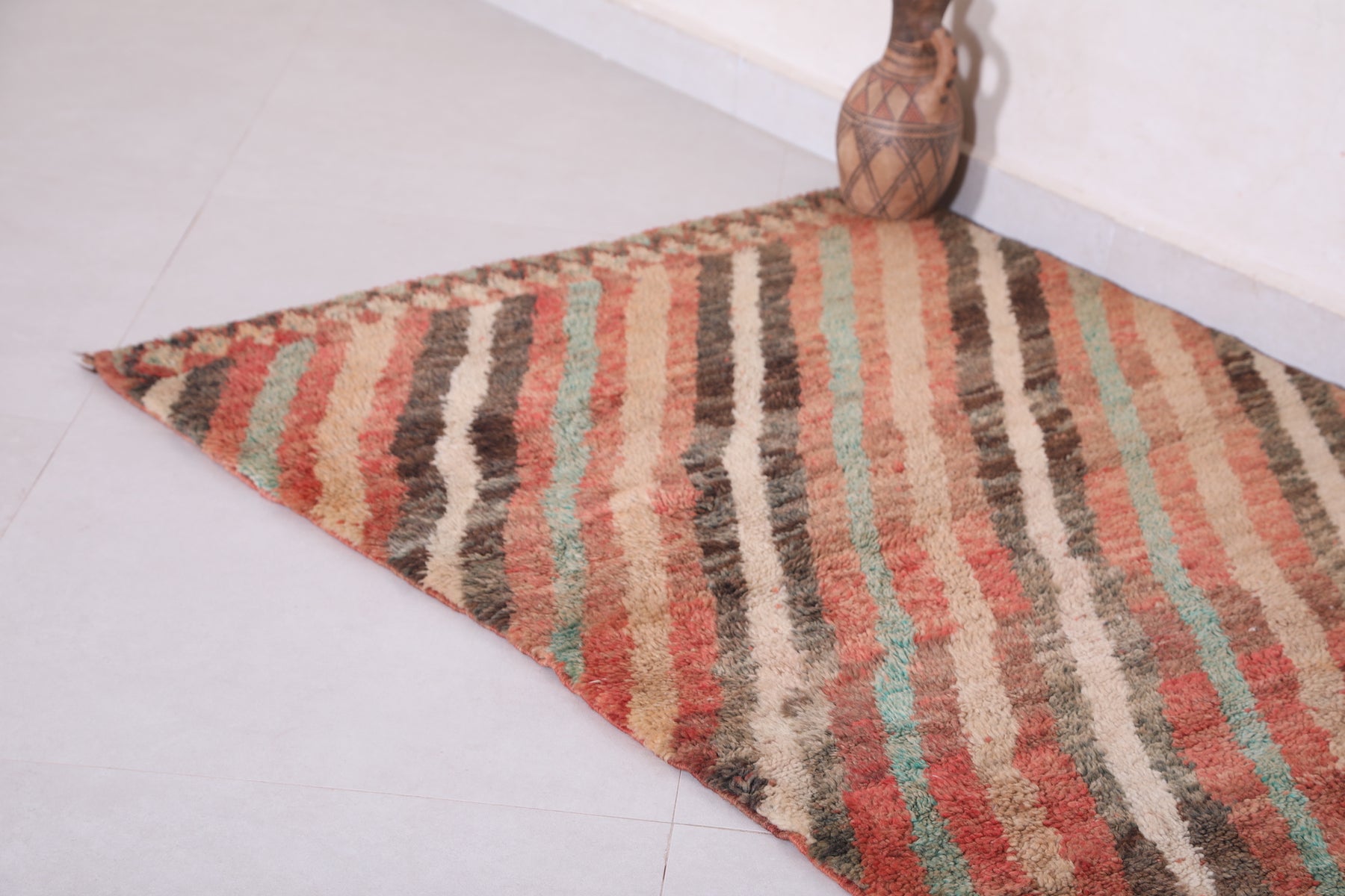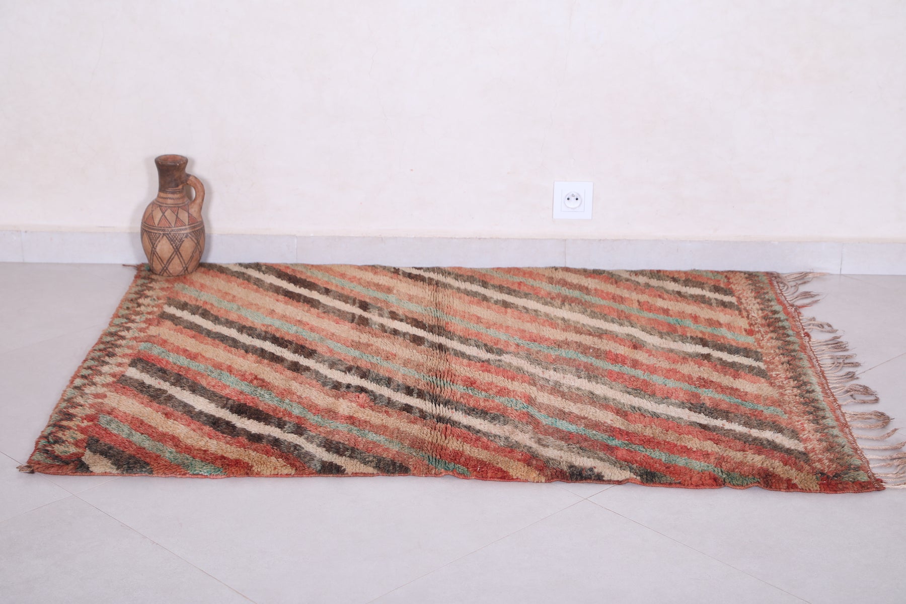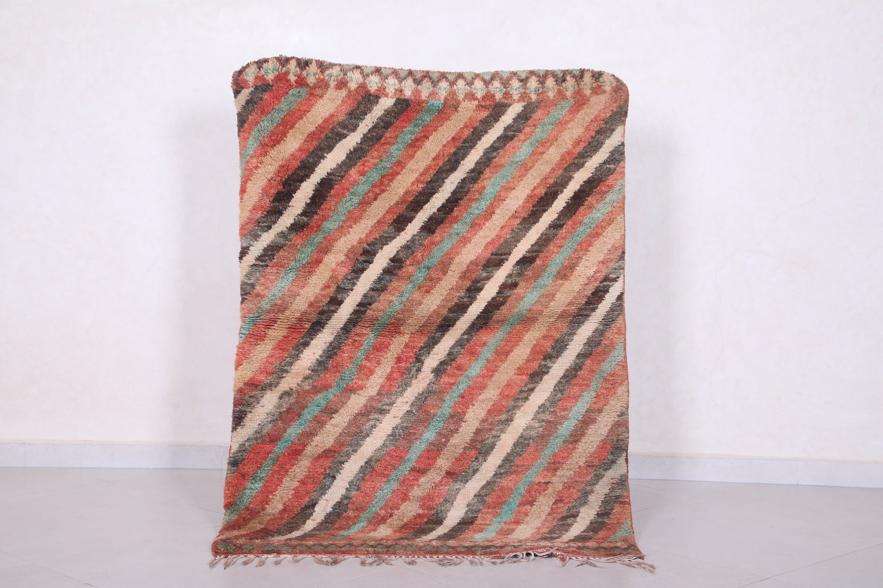 Vintage Moroccan Rug 3.3 x 4.6 ft | Diagonal Striped Design - moroccan rug