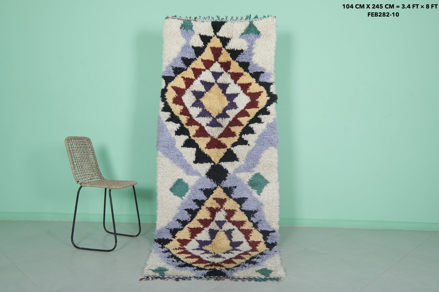 Vintage Runner Rug 3.4 X 8 Feet – Handwoven Moroccan Carpet