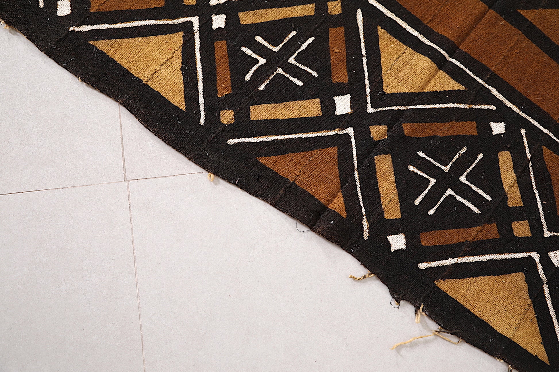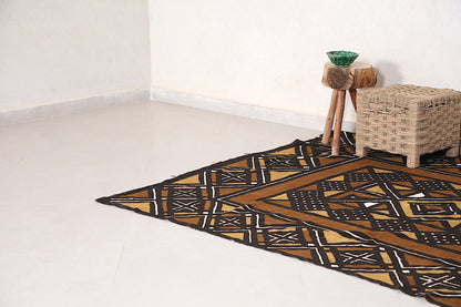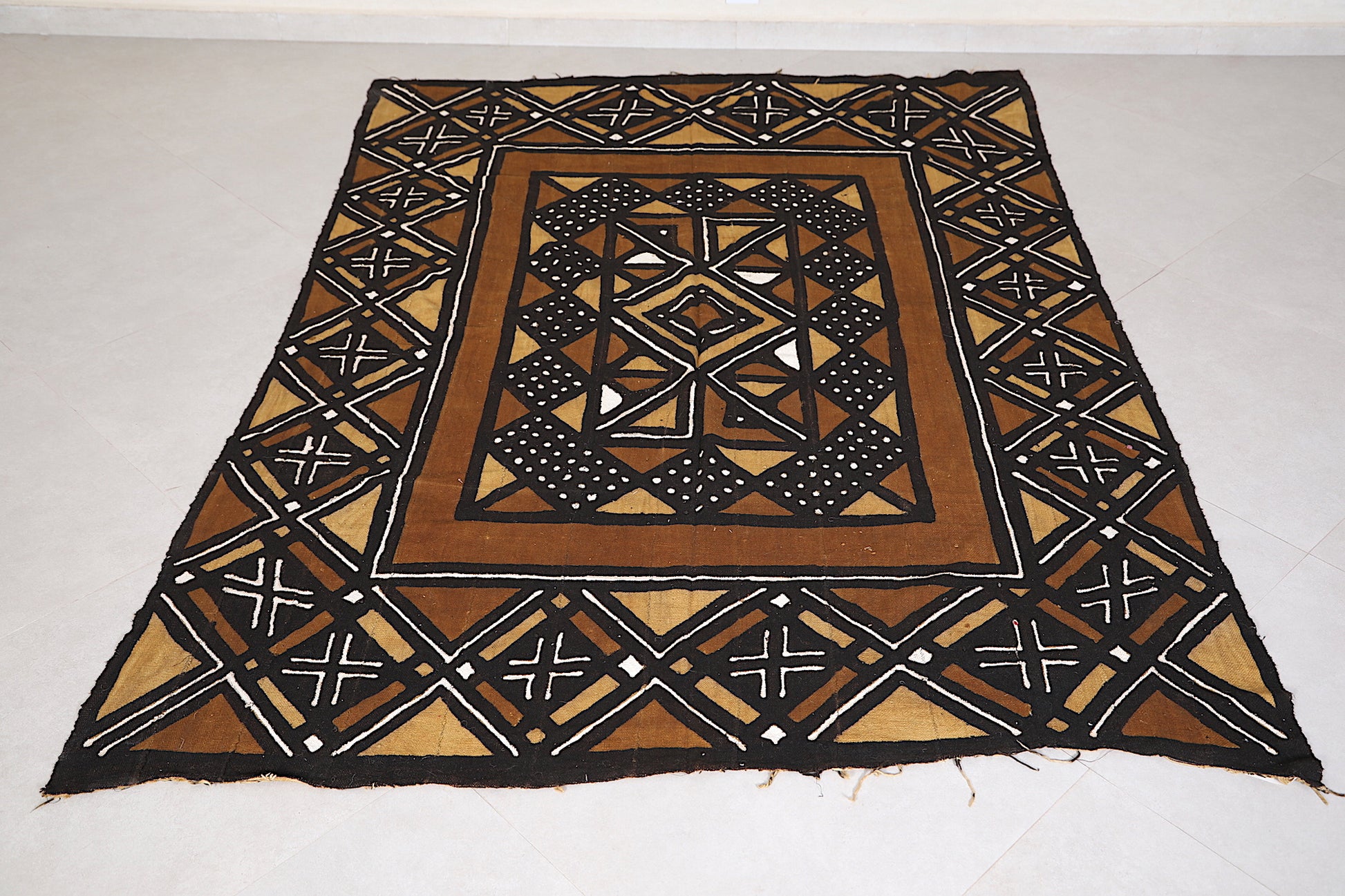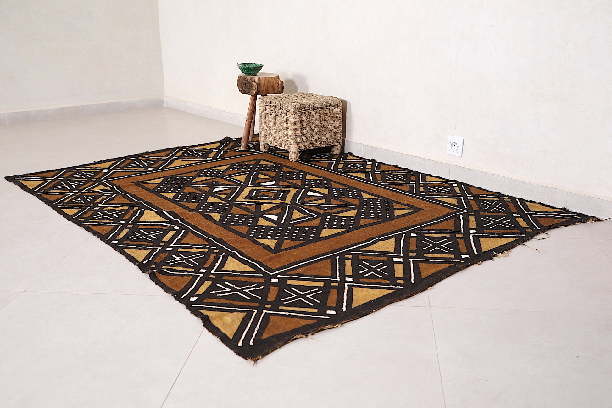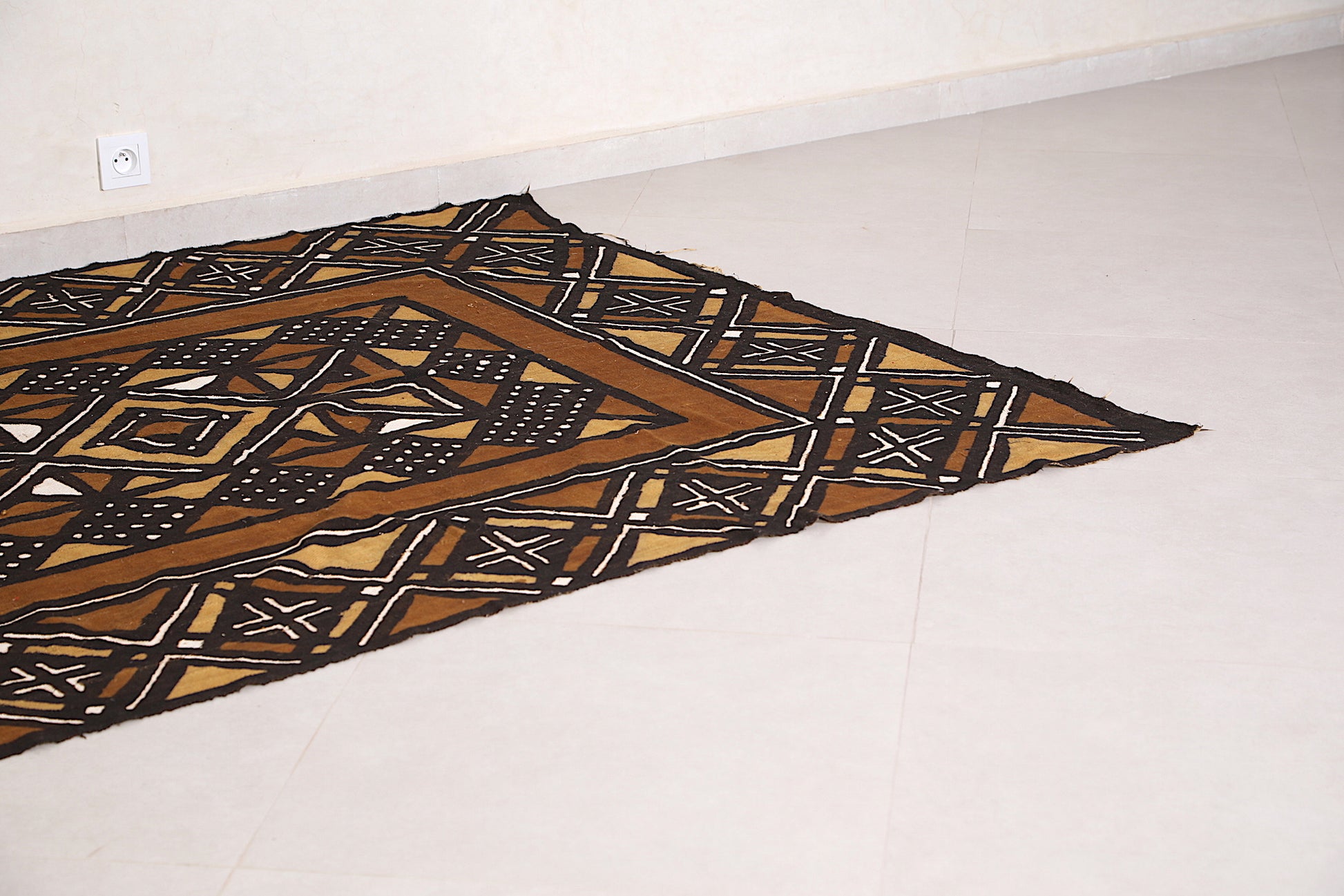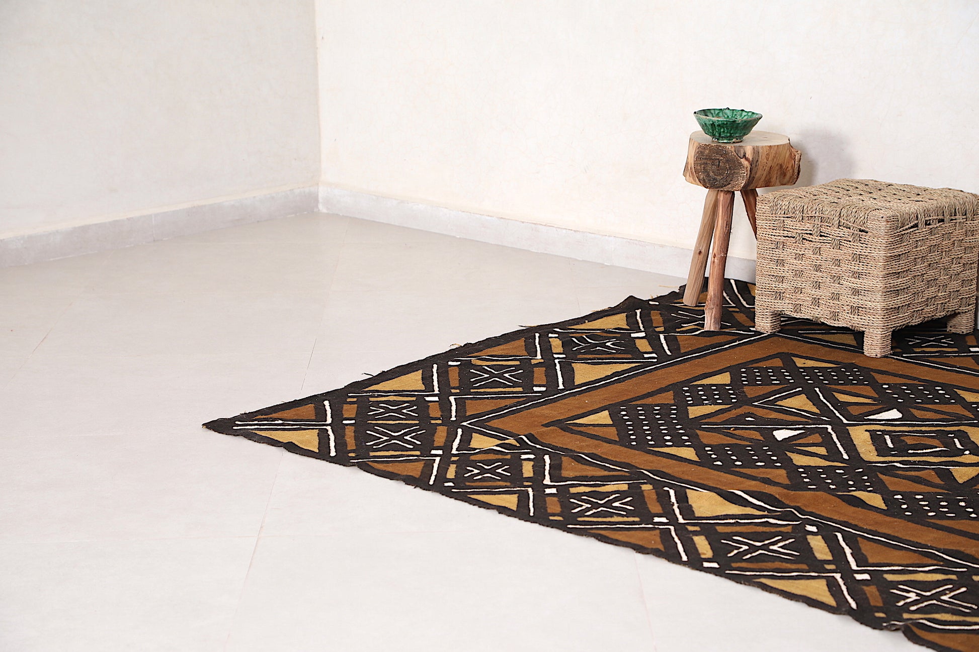 This 5.3 FT x 7.2 FT African Vintage Textile is a captivating piece of handcrafted art, showcasing bold geometric patterns and rich earthy hues. It offers both cultural richness and contemporary elegance to any room.