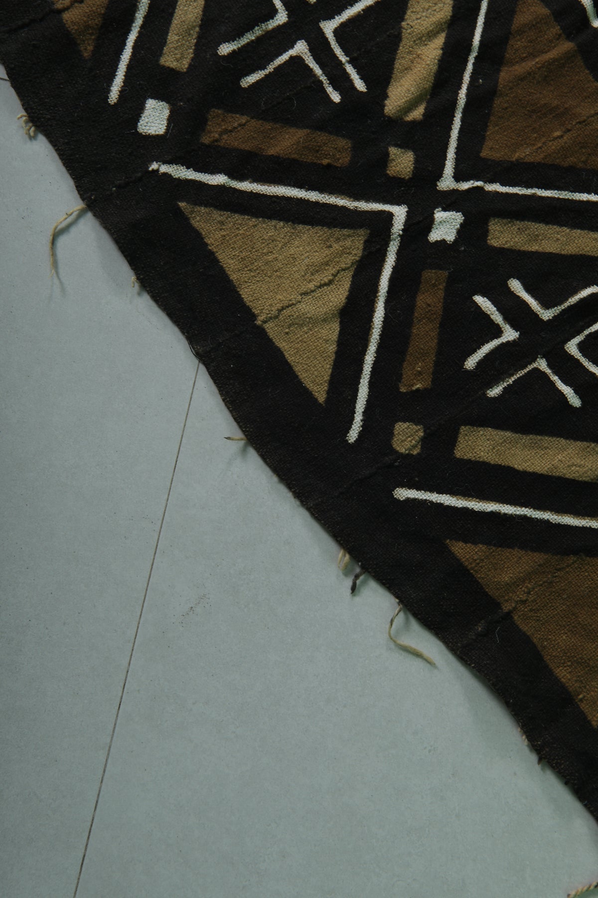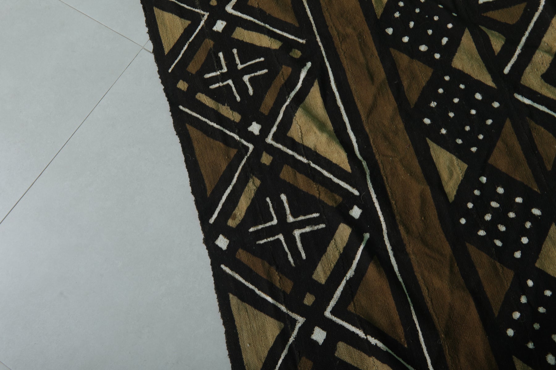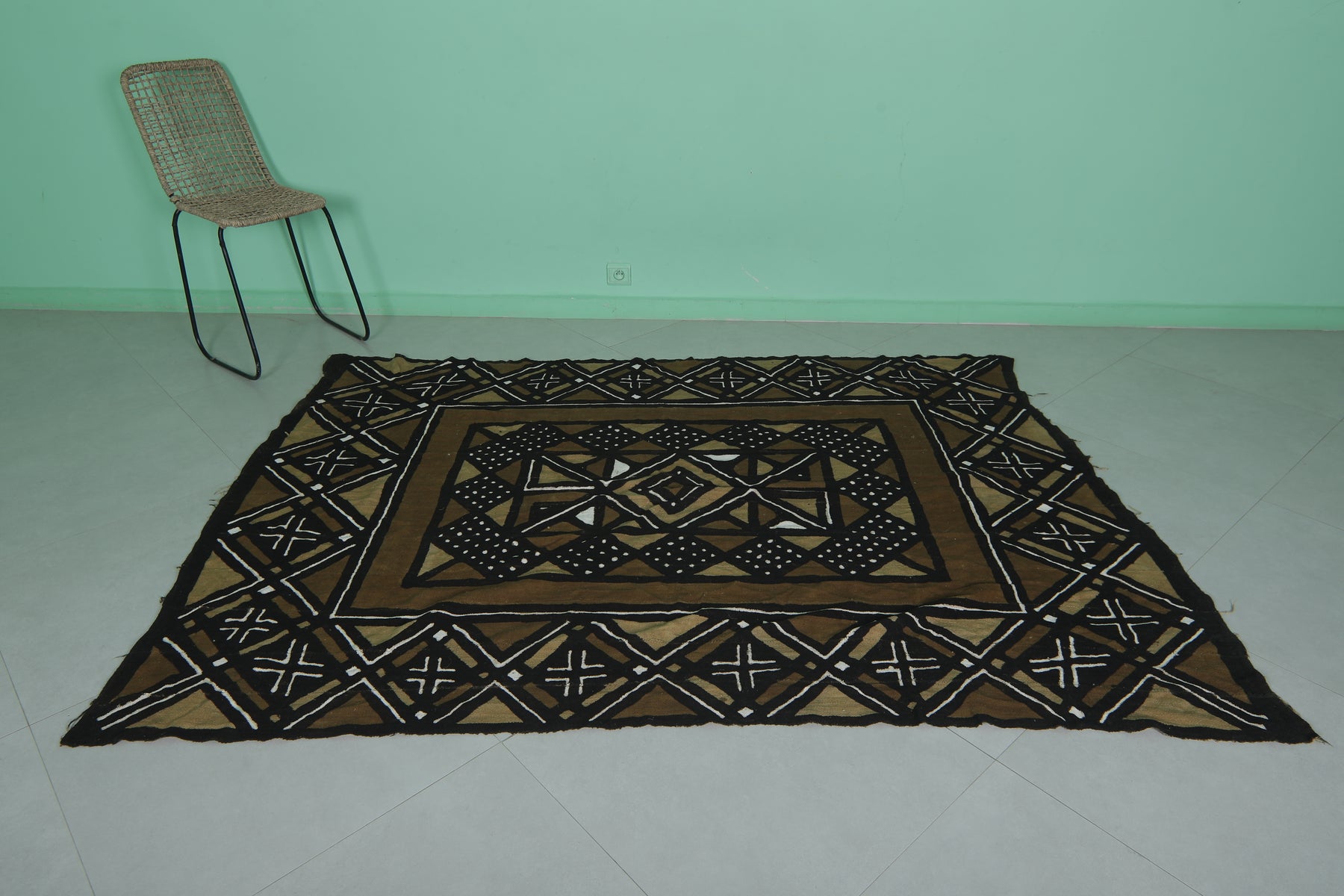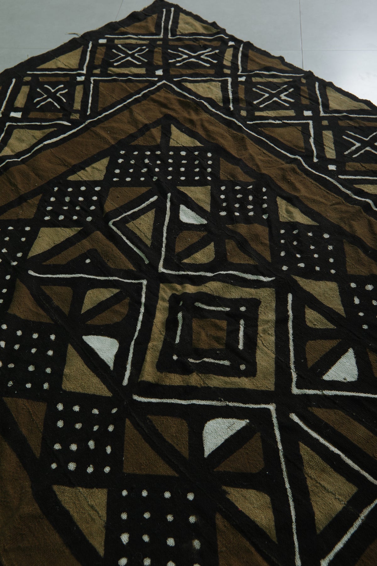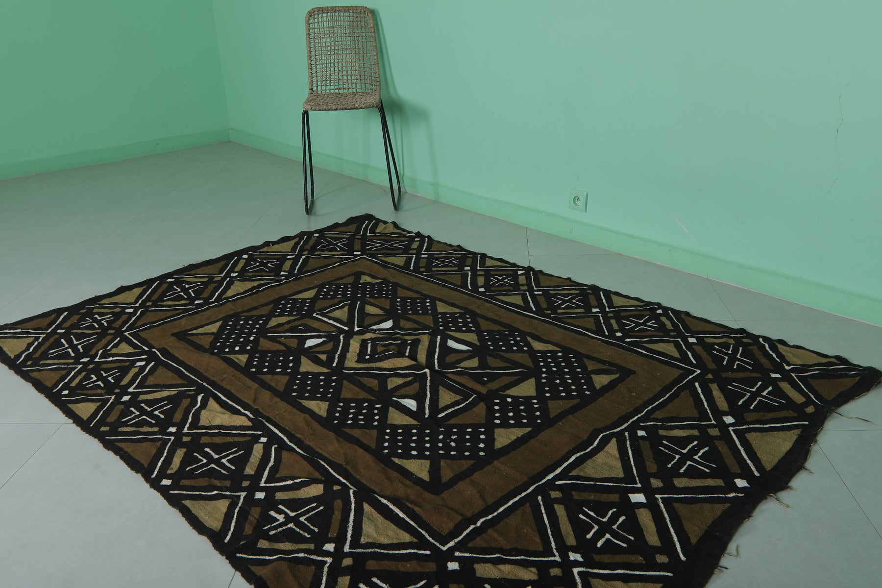 This 5.3 FT x 7.2 FT African Vintage Textile is a captivating piece of handcrafted art, showcasing bold geometric patterns and rich earthy hues. It offers both cultural richness and contemporary elegance to any room.