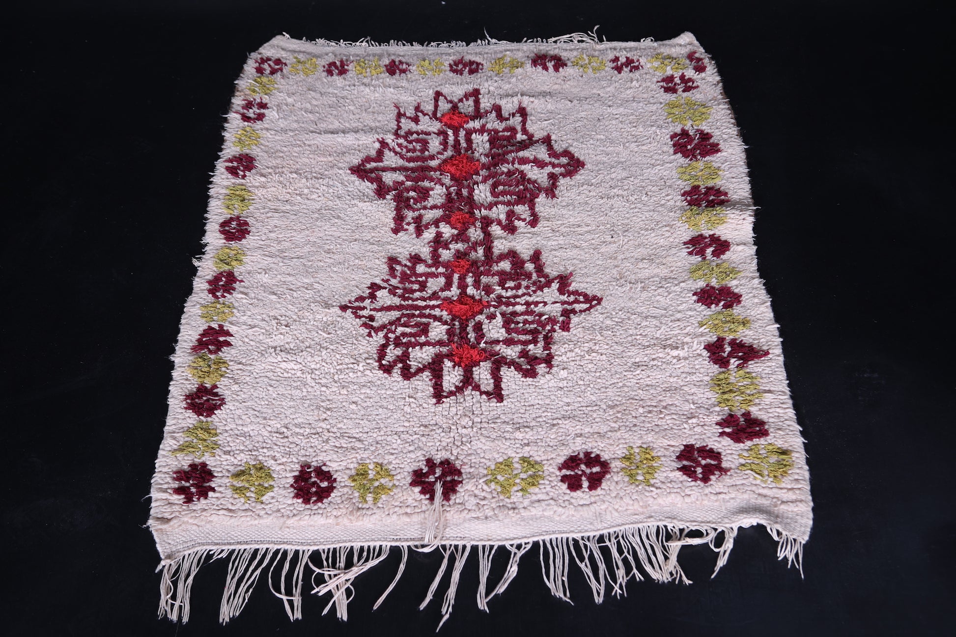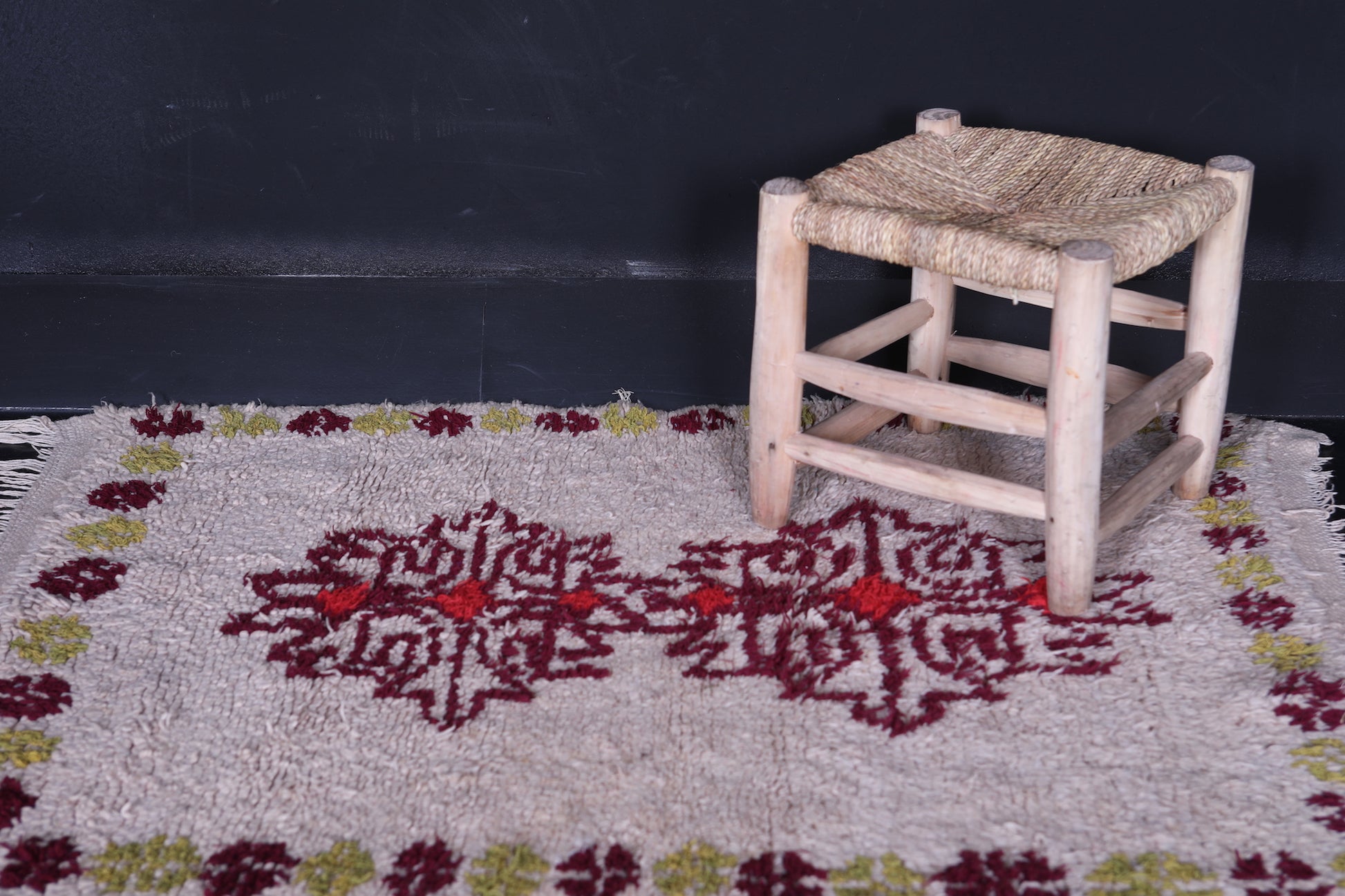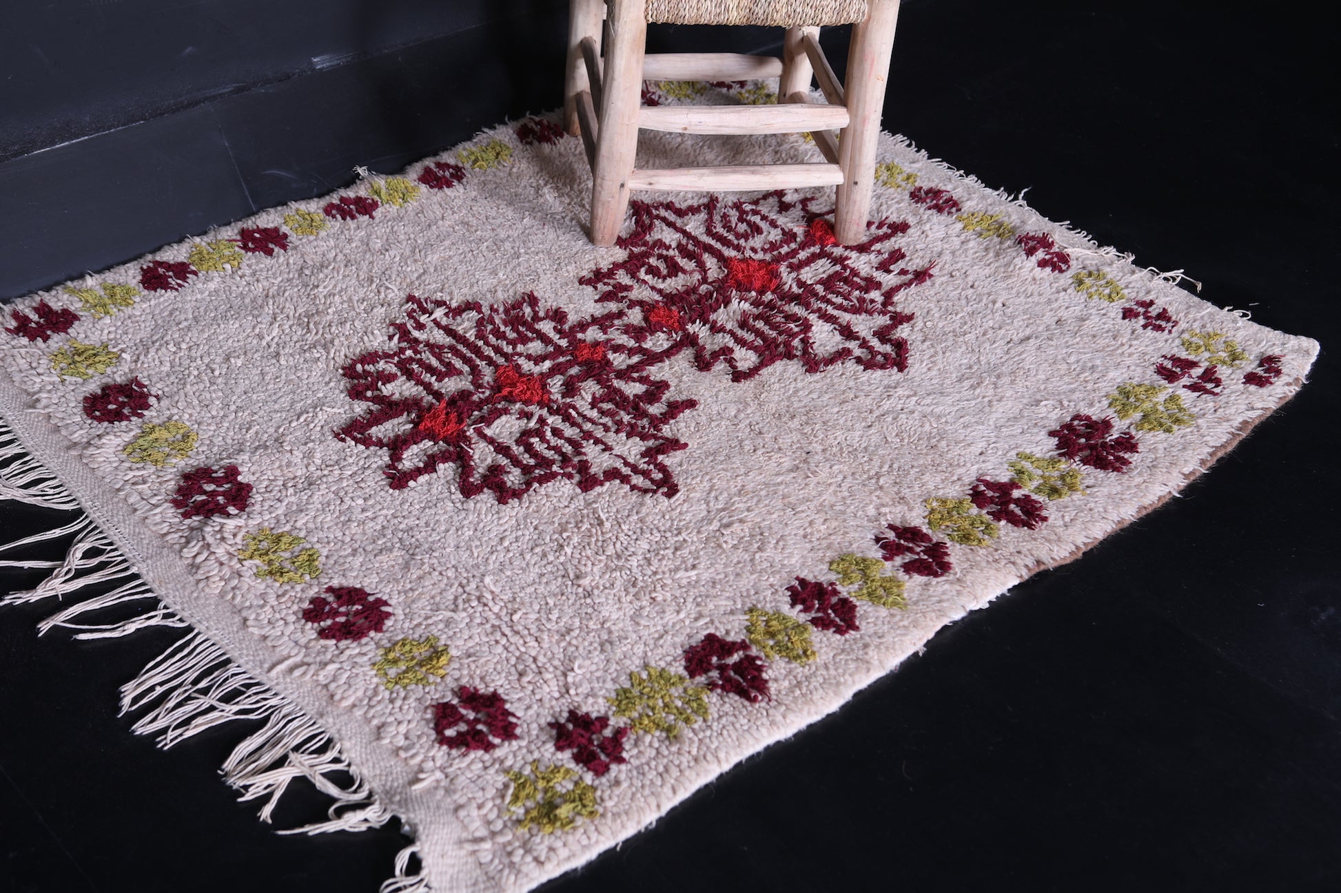 This exquisite Berber rug, measuring 3.2 x 3.9 feet, brings an authentic touch of tribal artistry to your home. Handwoven with intricate burgundy and green motifs against a neutral backdrop, it exudes both tradition and sophistication. The delicate borders and symmetrical patterns reflect the cultural heritage of Moroccan craftsmanship. Perfect for small spaces or as an accent piece, this rug adds warmth, charm, and character to your décor.