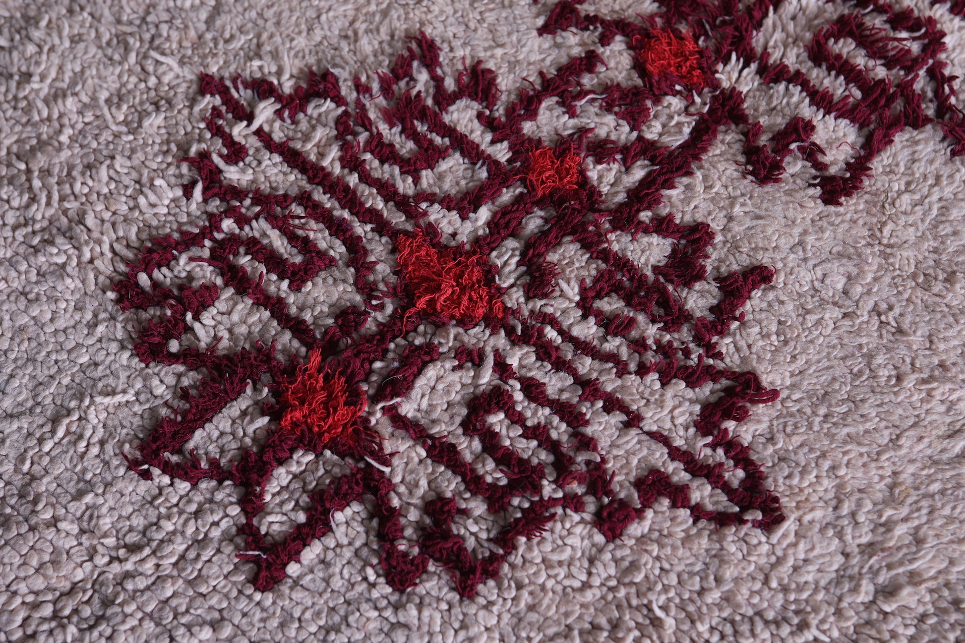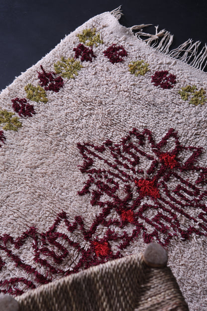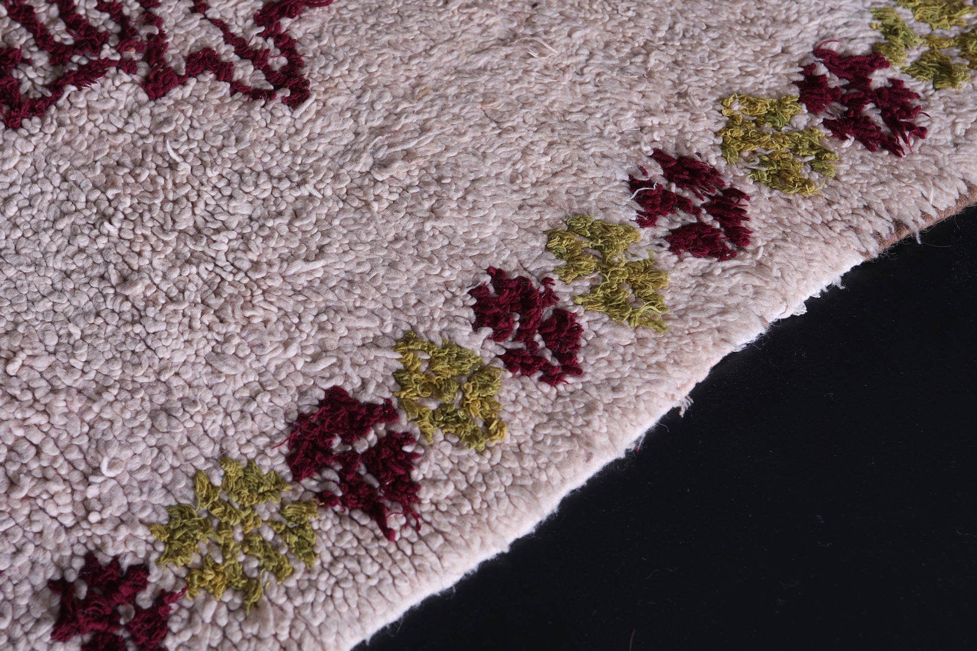 This exquisite Berber rug, measuring 3.2 x 3.9 feet, brings an authentic touch of tribal artistry to your home. Handwoven with intricate burgundy and green motifs against a neutral backdrop, it exudes both tradition and sophistication. The delicate borders and symmetrical patterns reflect the cultural heritage of Moroccan craftsmanship. Perfect for small spaces or as an accent piece, this rug adds warmth, charm, and character to your décor.
