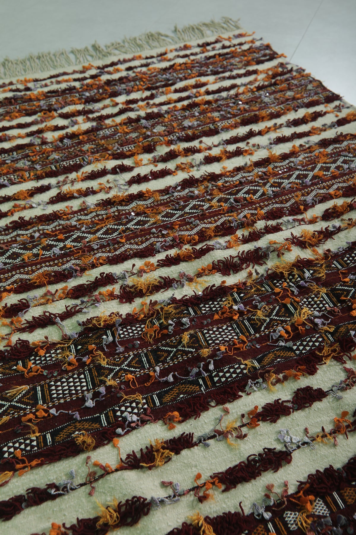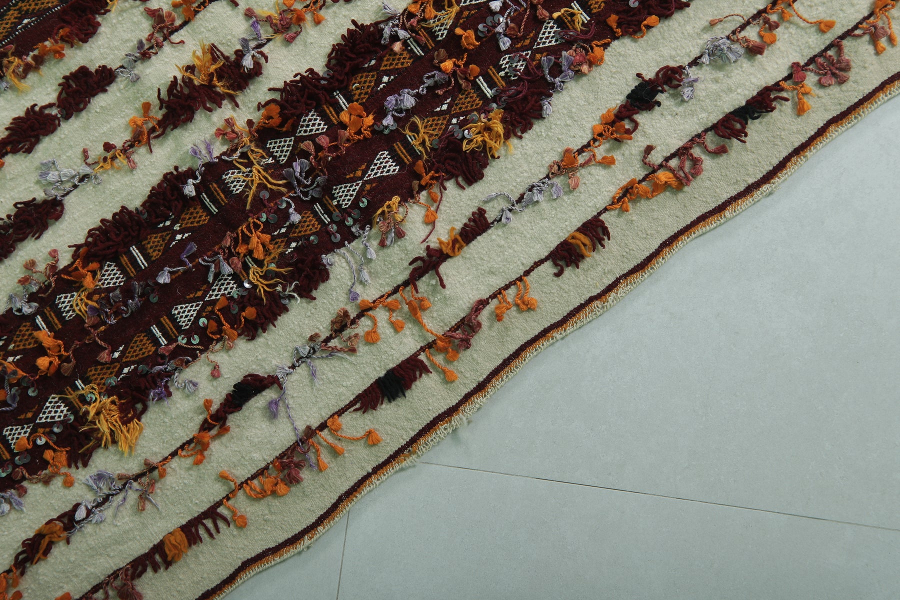 The Dimensions of this Moroccan area rug does not include tassels.