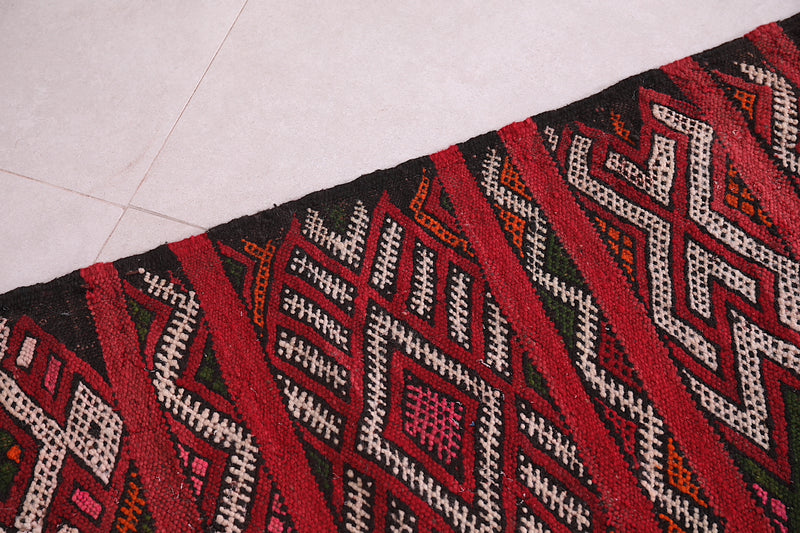 This 5.3 x 4.4 feet Antique Moroccan Kilim rug showcases bold tribal artistry with vivid red hues and intricate geometric patterns. Handwoven by skilled artisans, it’s a compact masterpiece ideal for entryways, bedrooms, or accent walls. Rich in cultural heritage, this one-of-a-kind rug adds depth and authenticity to any living space.