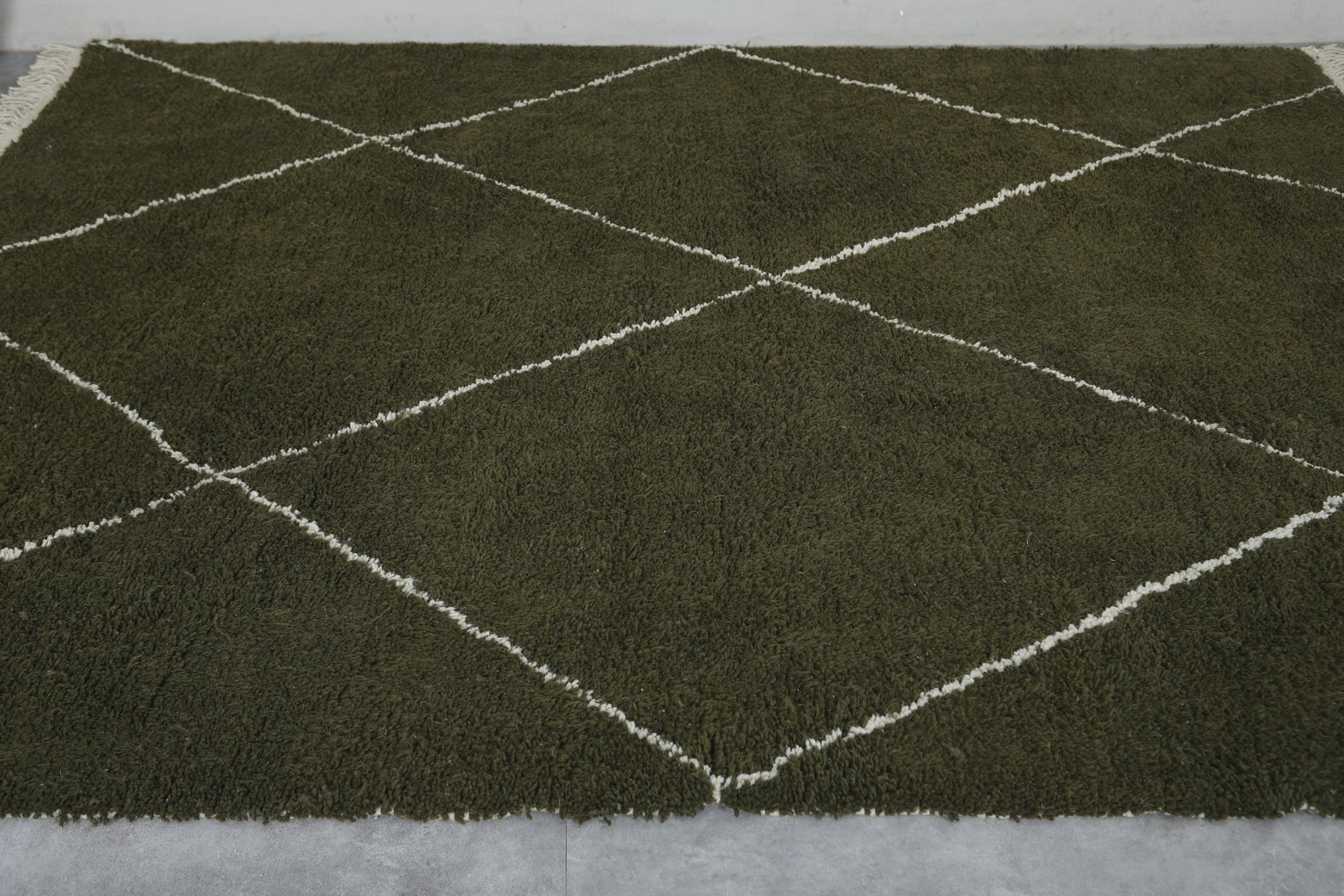Introduce natural elegance to your home with this Olive Green Moroccan Beni Ourain Rug, featuring hand-knotted white diamond lines across a rich green wool base. The soft, earthy tone and iconic geometric pattern bring balance and warmth to any space—from modern minimalism to cozy bohemian retreats.