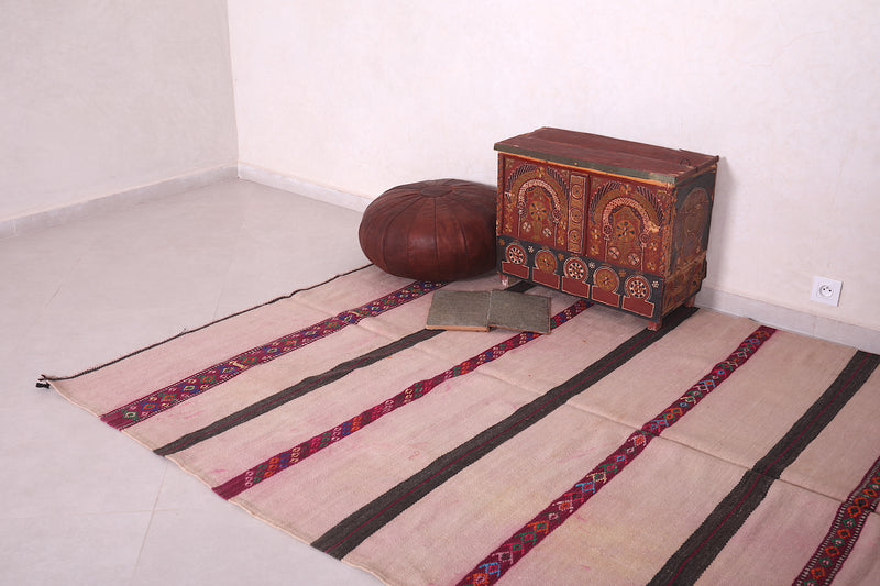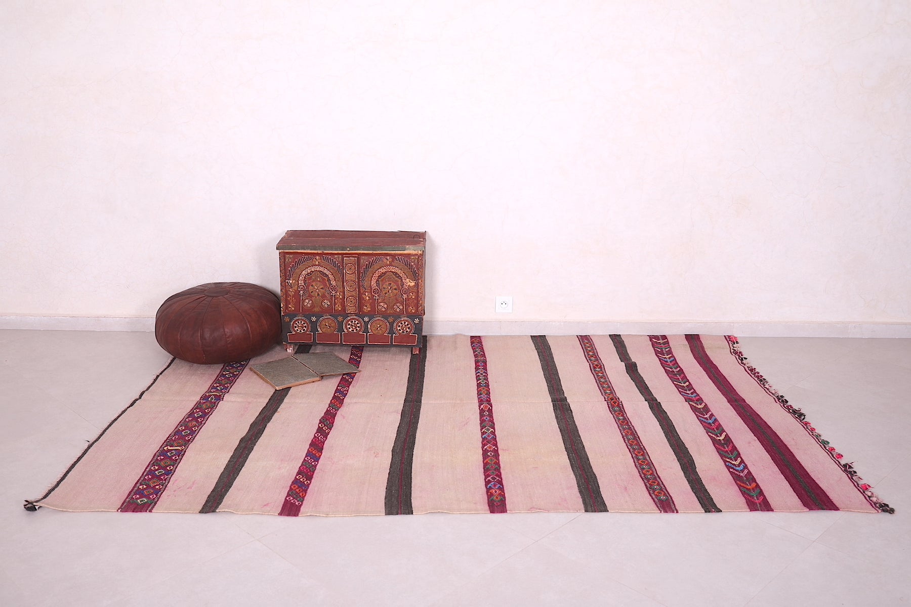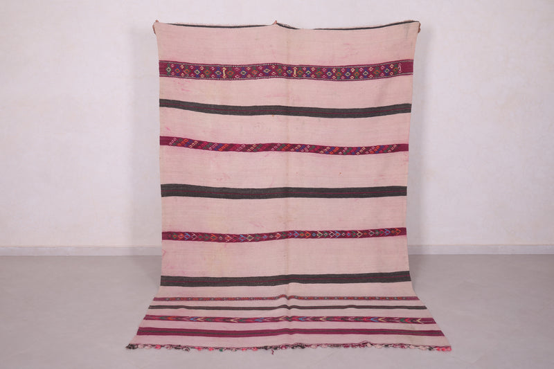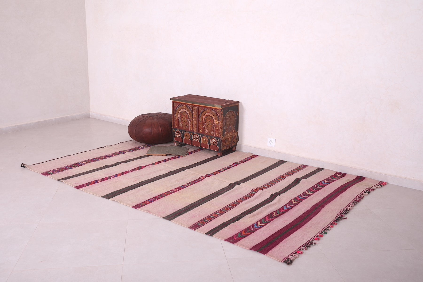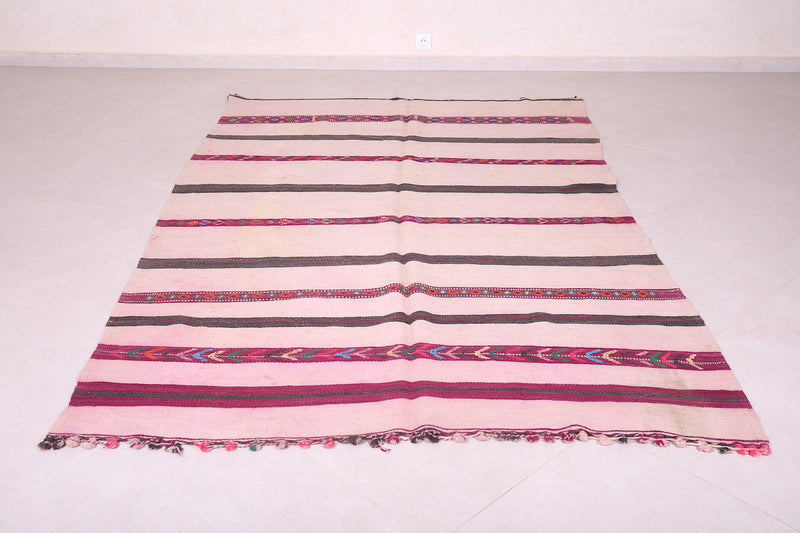 Authentic Moroccan Handwoven Rug – Pink & Striped Patterns | 5.7 FT X 8.8 FT