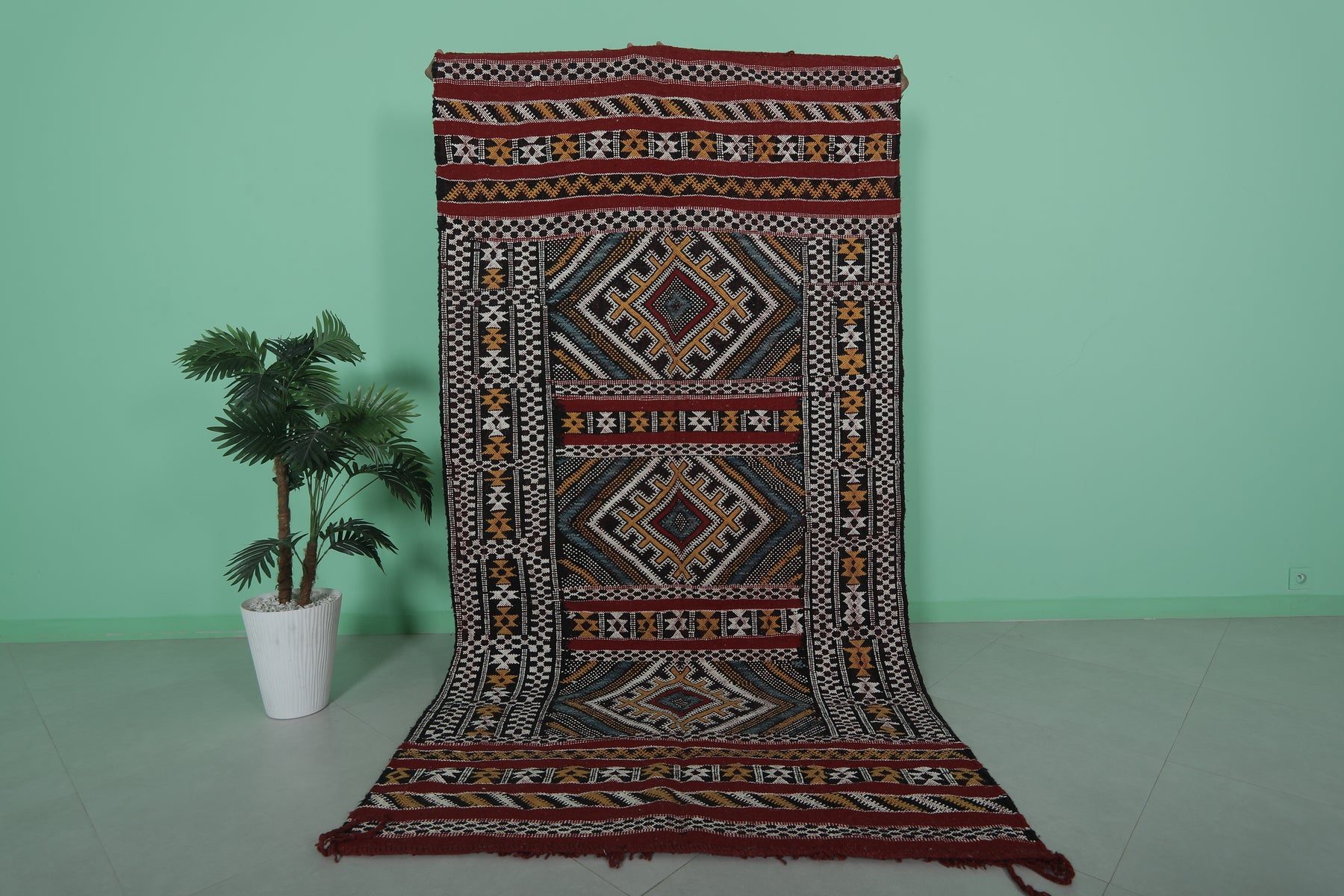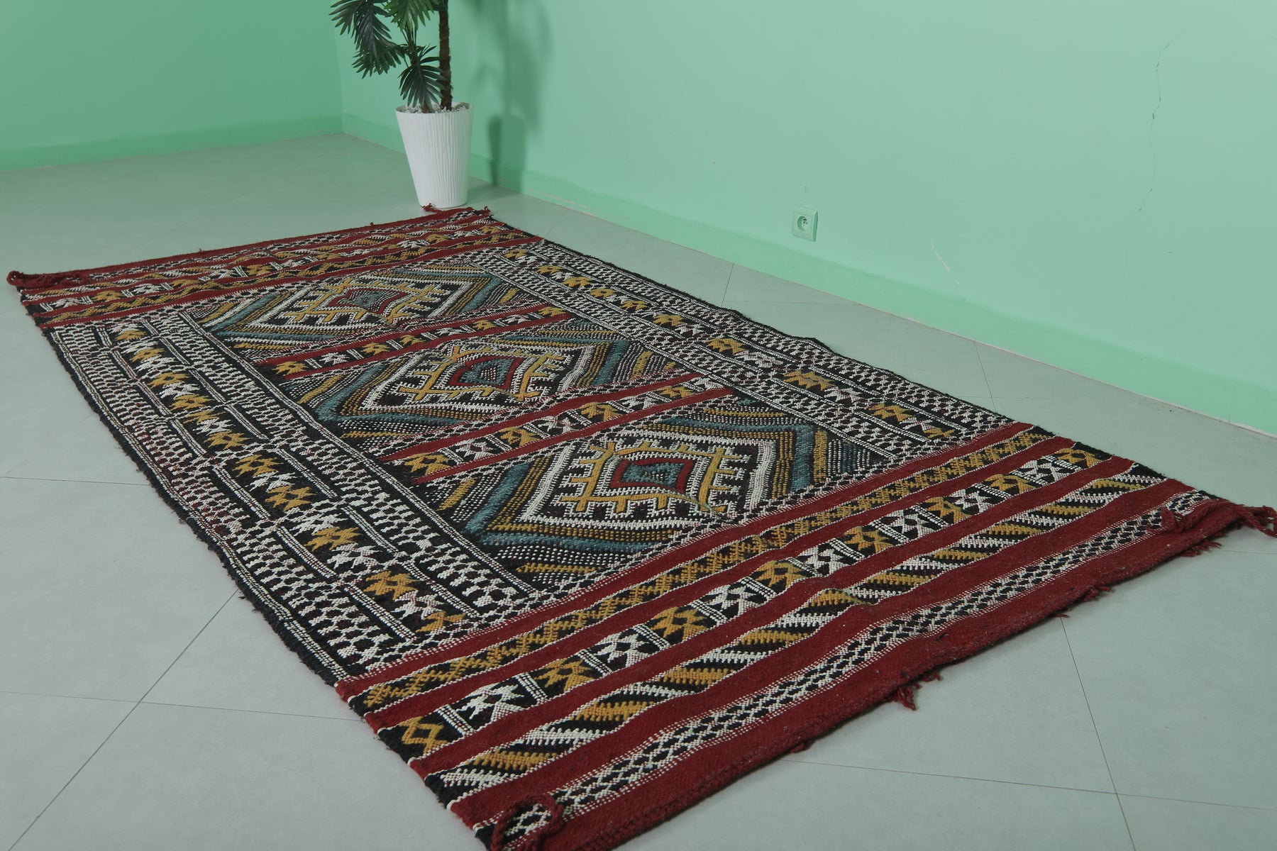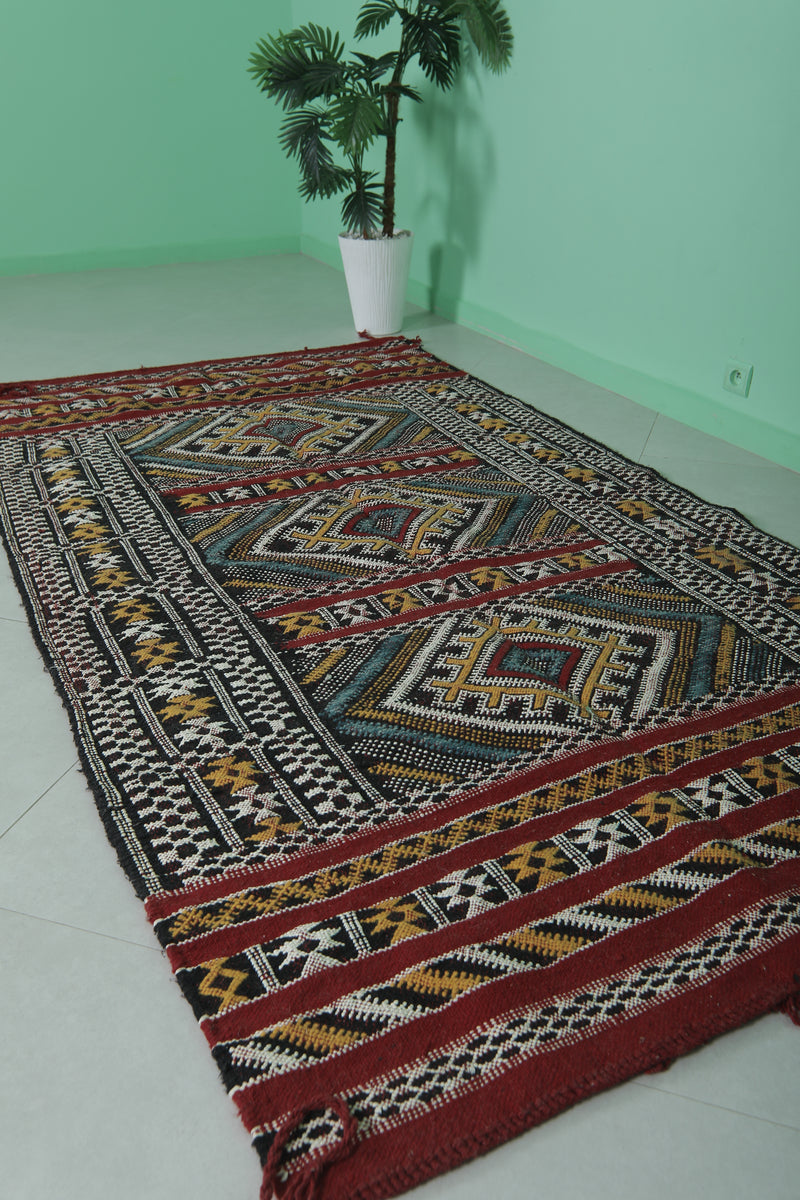 Authentic Moroccan Rug - 4.7 X 8.8 Feet | Handwoven Geometric Beauty - Handwoven Kilim