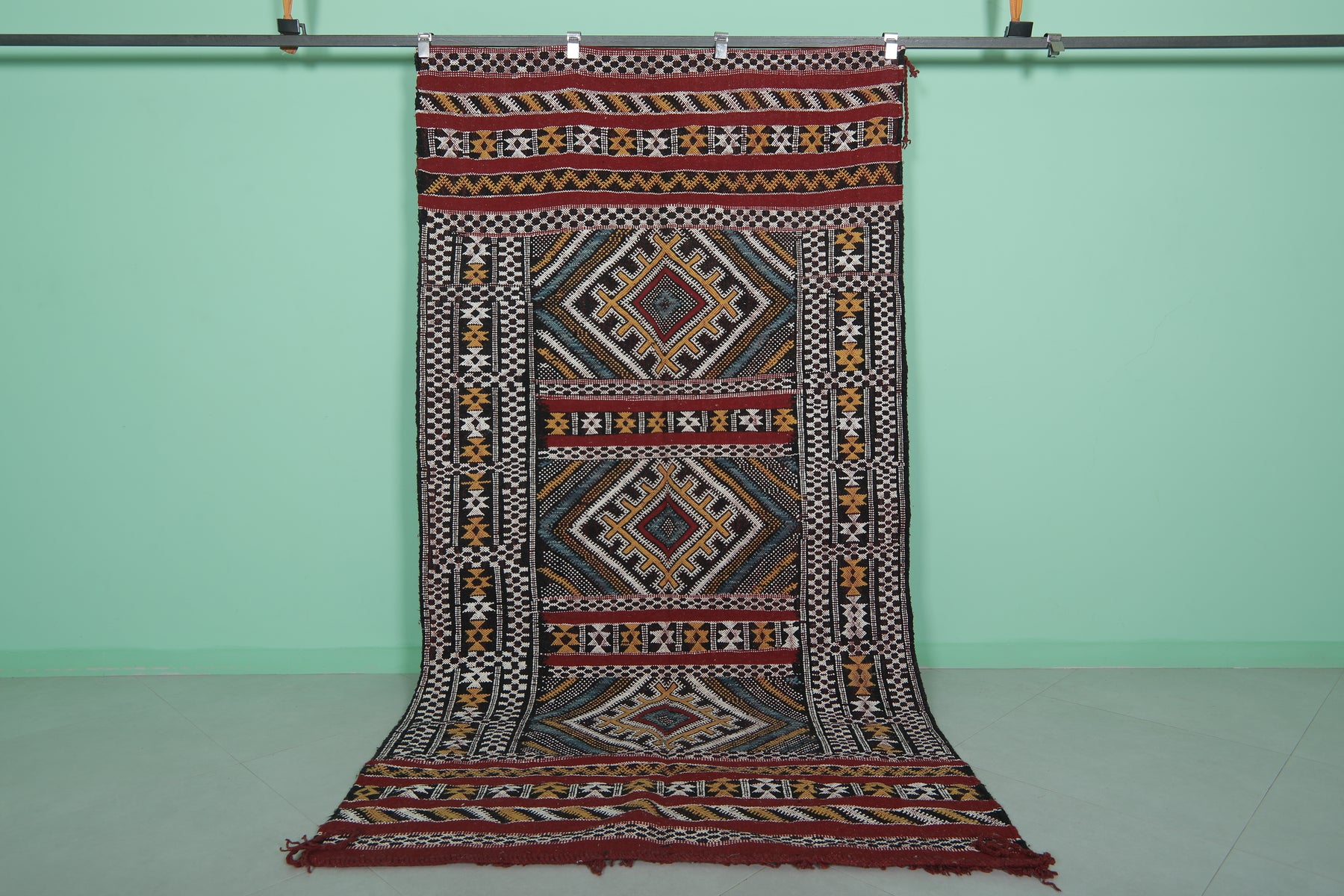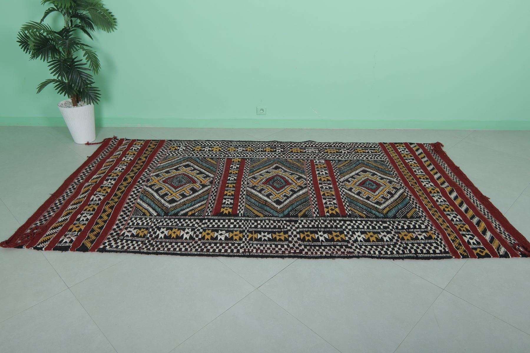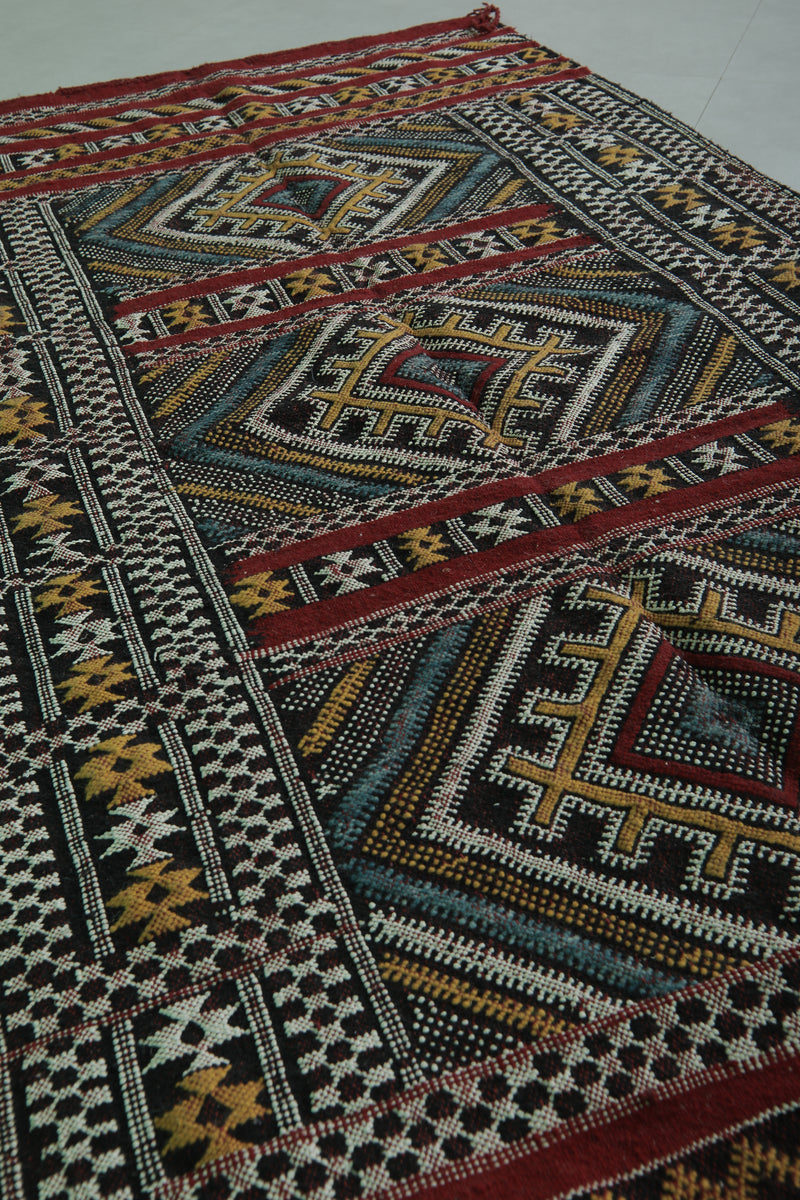 Authentic Moroccan Rug - 4.7 X 8.8 Feet | Handwoven Geometric Beauty - Handwoven Kilim