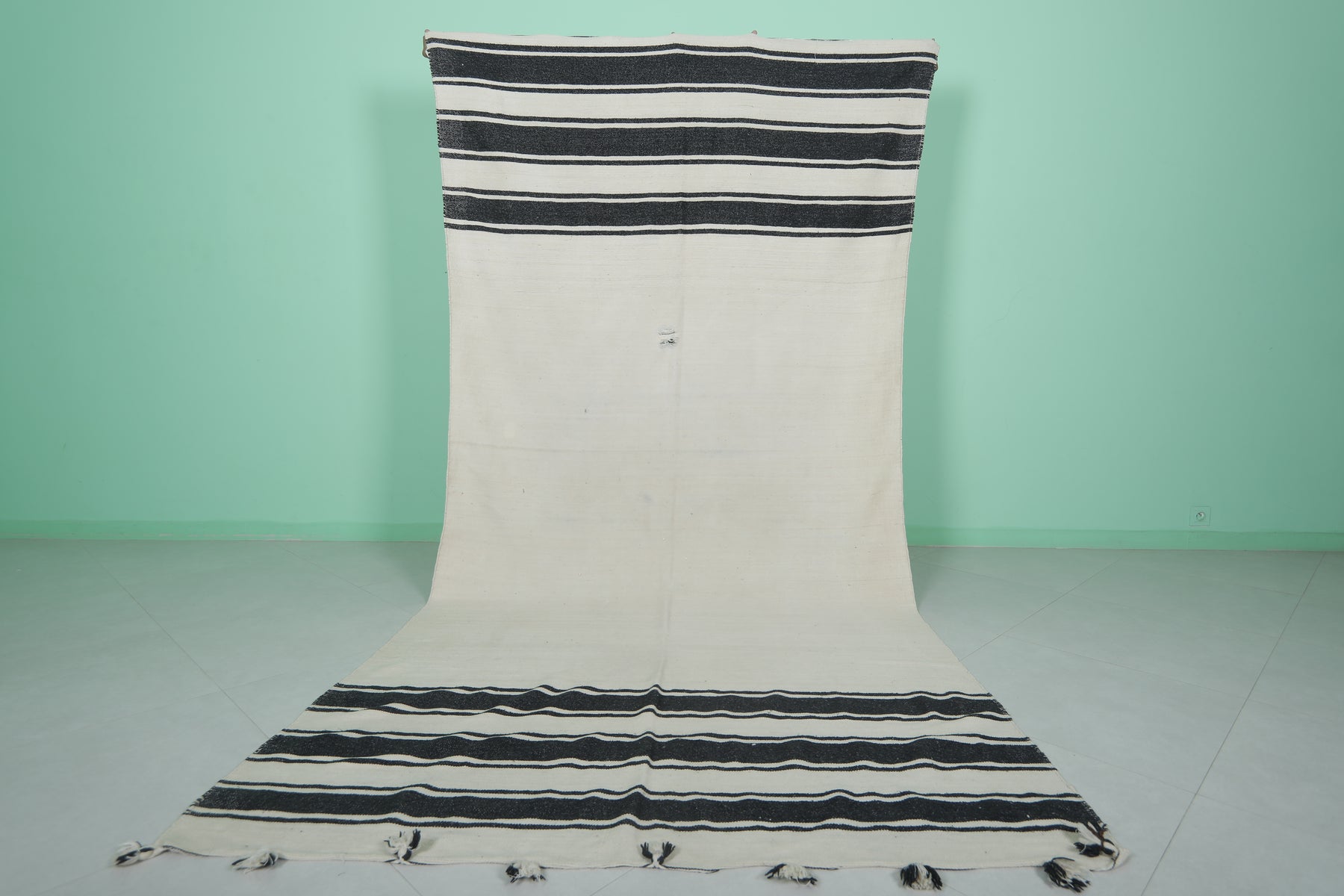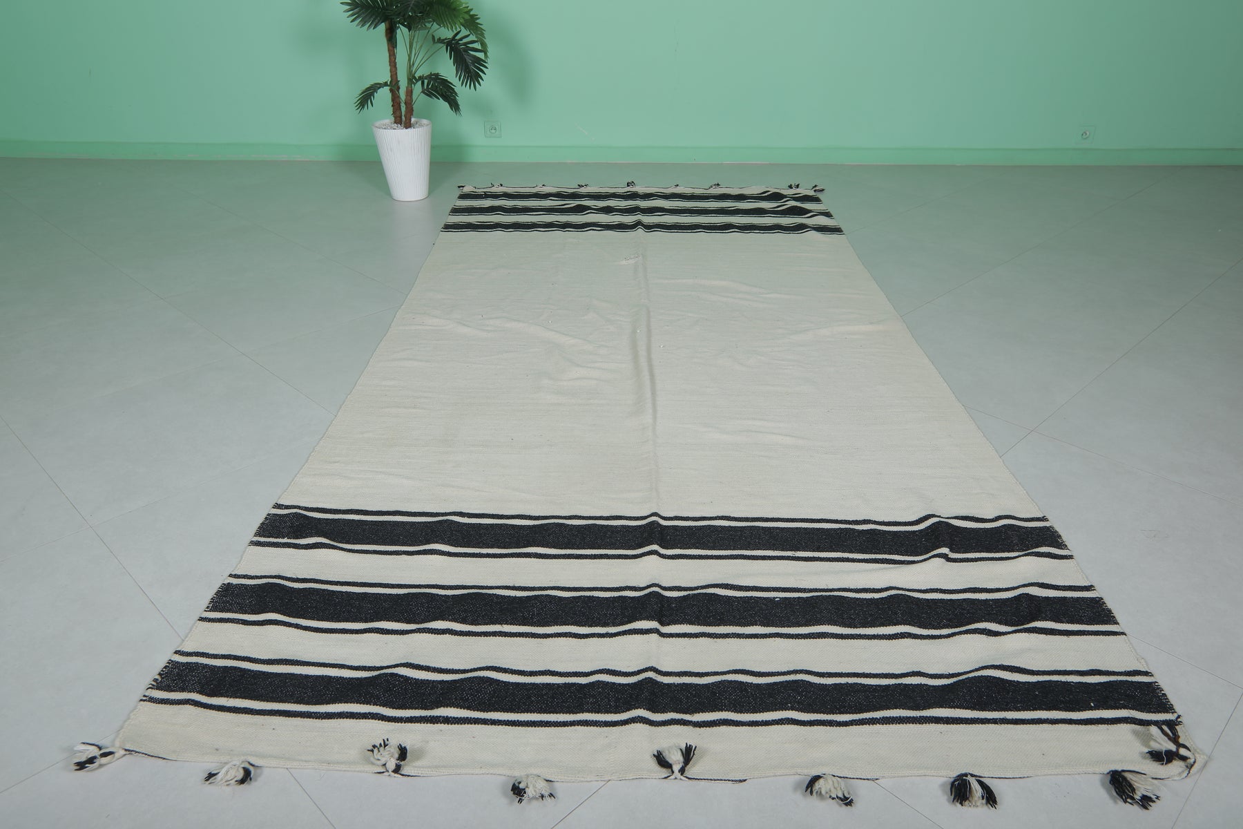 Beige and Black Runner Kilim Rug - 5.5 FT X 11 FT | Handwoven Moroccan Decor